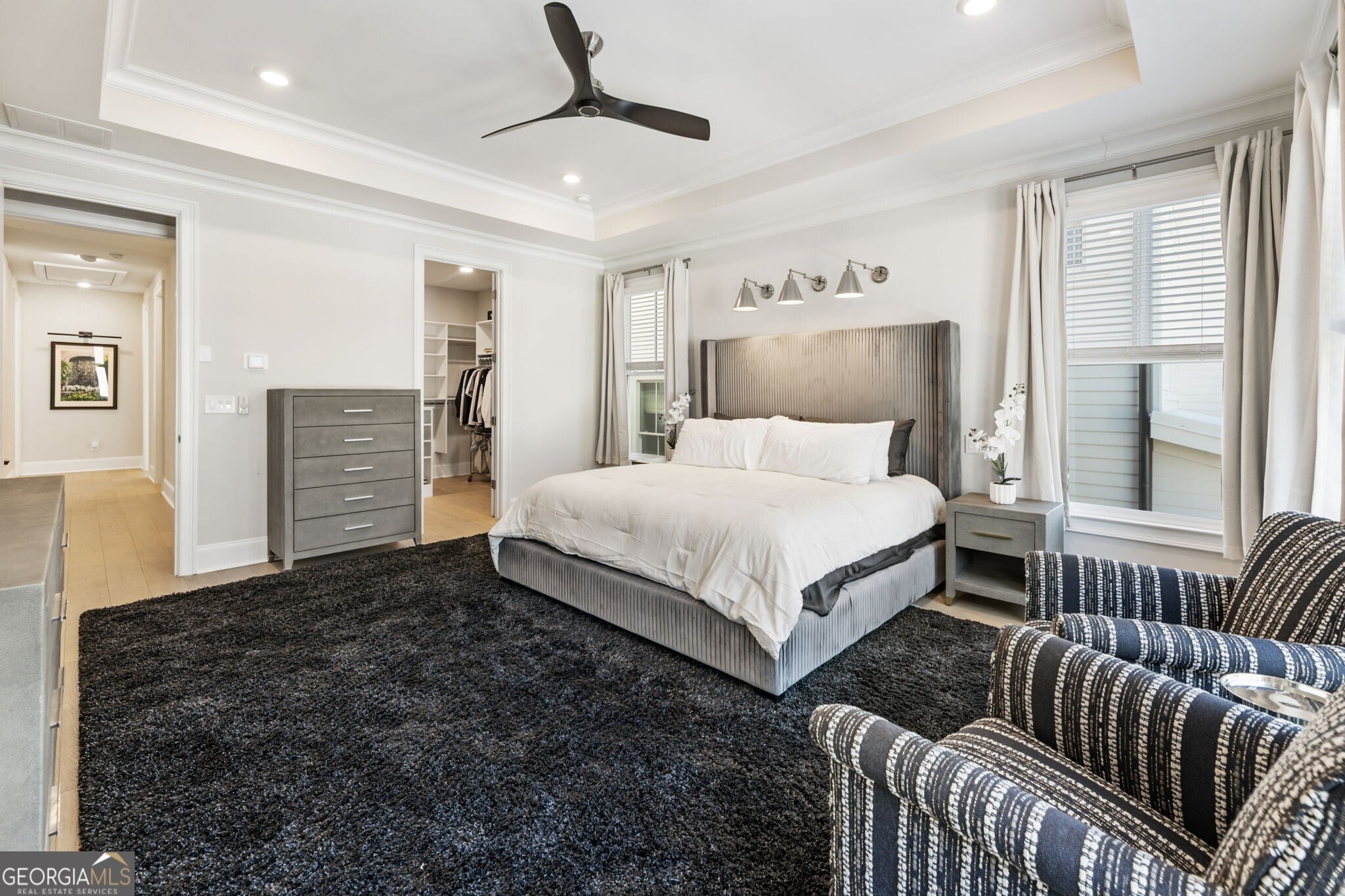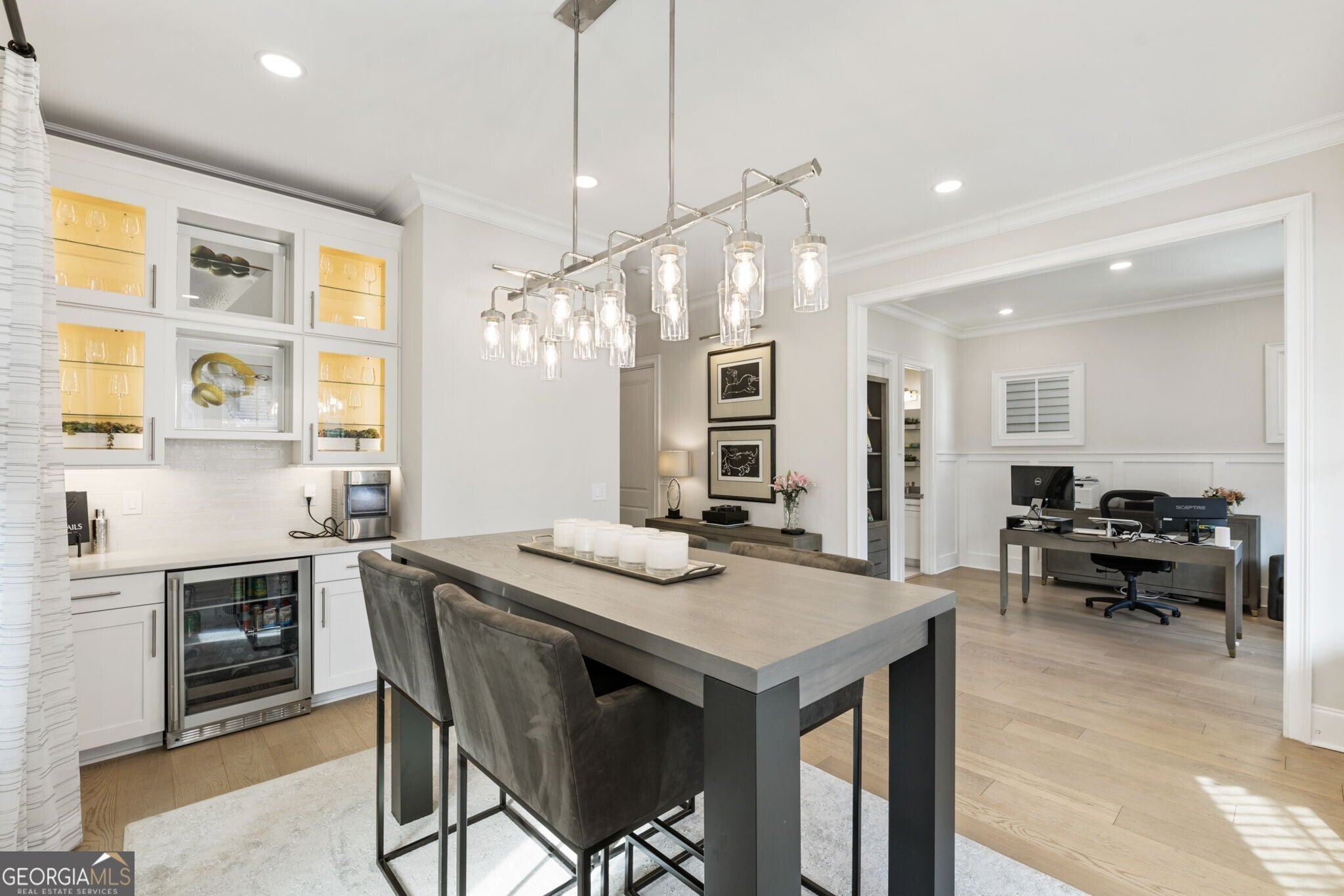 Centered around Downtown Alpharetta, where mornings begin with coffee strolls and evenings end under caf lights, Manning on the Square offers a rare opportunity to live fully immersed in one of North Fulton's most vibrant communities. Located just moments from Avalon and quick access to the Alpha Loop, this residence places dining, shopping, green space, and year round events right outside your door while still offering the comfort of a private retreat. Thoughtfully enhanced with over $100,000 in upgrades. Seven custom closet systems throughout the home provide exceptional organization and represent a significant upgrade rarely found in today's properties. A private elevator services all levels, creating effortless everyday living. Upon entry, an open foyer welcomes you inside, where a private home office or fifth bedroom suite is positioned just off the entry and includes its own ensuite bath, ideal for guests or multigenerational living. The main level is anchored by a spacious kitchen that creates an exceptionally seamless entertaining experience. Outfitted with a Sub Zero refrigerator, a 36 inch Wolf gas range, pot filler, ceramic apron front sink, and an oversized quartz island with seating and built in bookcases, the kitchen offers both functionality and refined design. Generous countertops, premium appliances, and abundant storage create a natural gathering space, while the adjacent living and dining areas provide a warm and inviting setting for everyday living and special occasions alike. Additional highlights include a large pantry, water purification system, designer LED lighting, and a custom built buffet with twelve solid wood soft close drawers. The second level features the spacious primary suite alongside two secondary bedroom suites, each with a private ensuite bath. The terrace level includes an additional bedroom with its own ensuite as well as a well appointed living space that offers flexibility for guests, recreation, or extended stays. Downtown Alpharetta continues to be one of Metro Atlanta's most sought after destinations, known for award winning restaurants, boutique shopping, beautiful parks, and a strong sense of community. This residence offers a distinctive combination of luxury, thoughtful upgrades, low maintenance living, and an iconic downtown setting designed for the way you want to live today and in the years ahead.