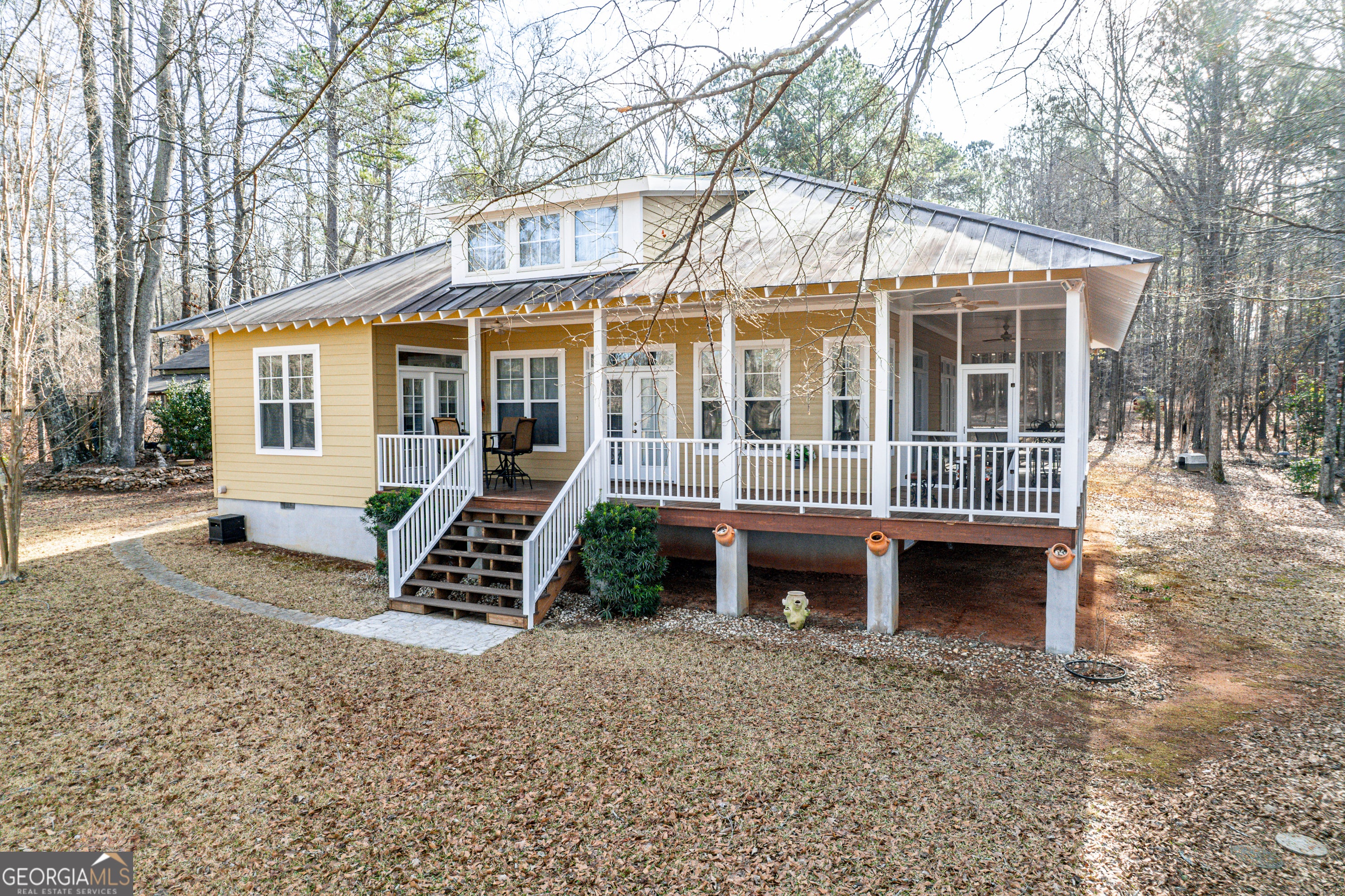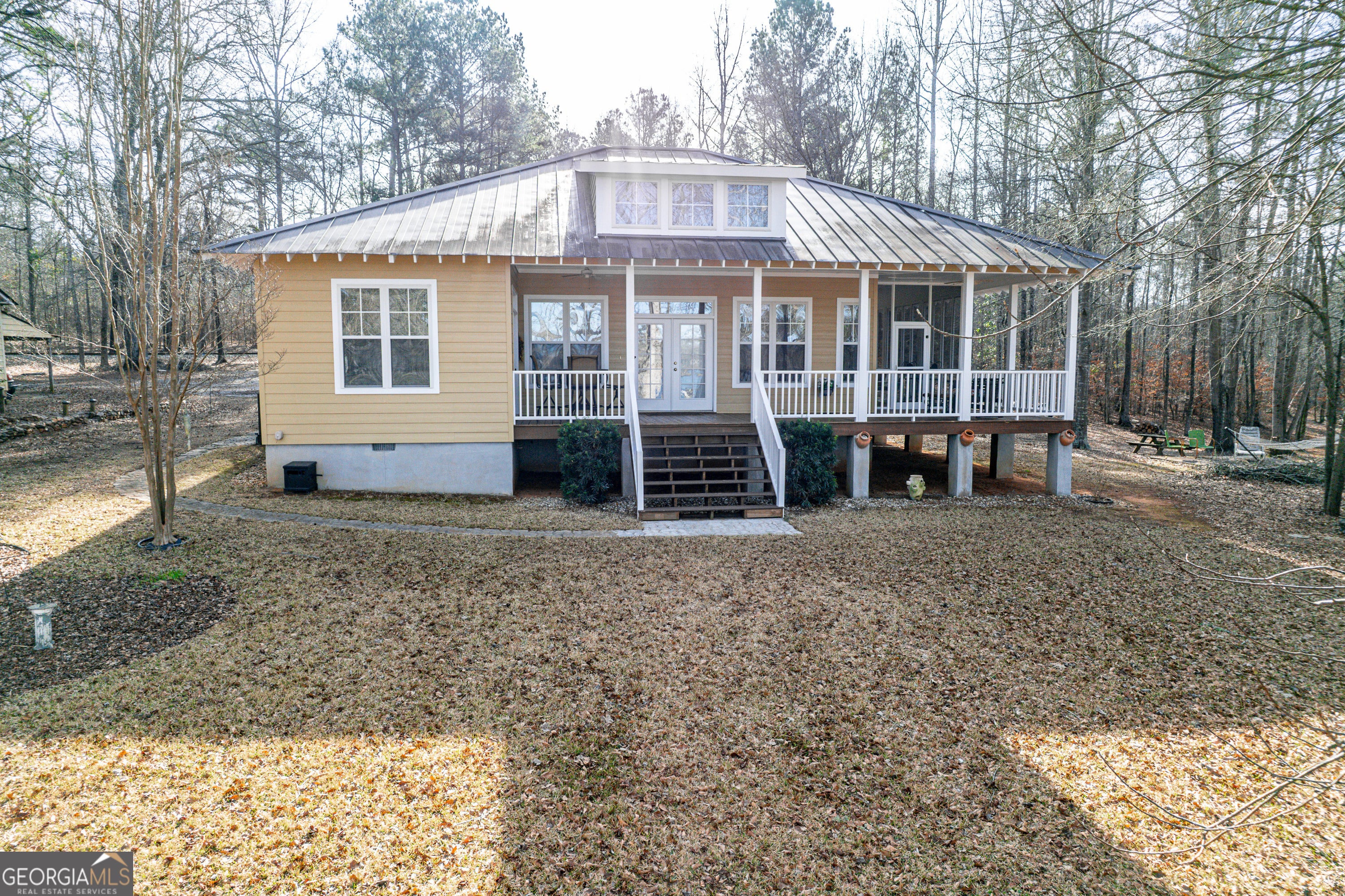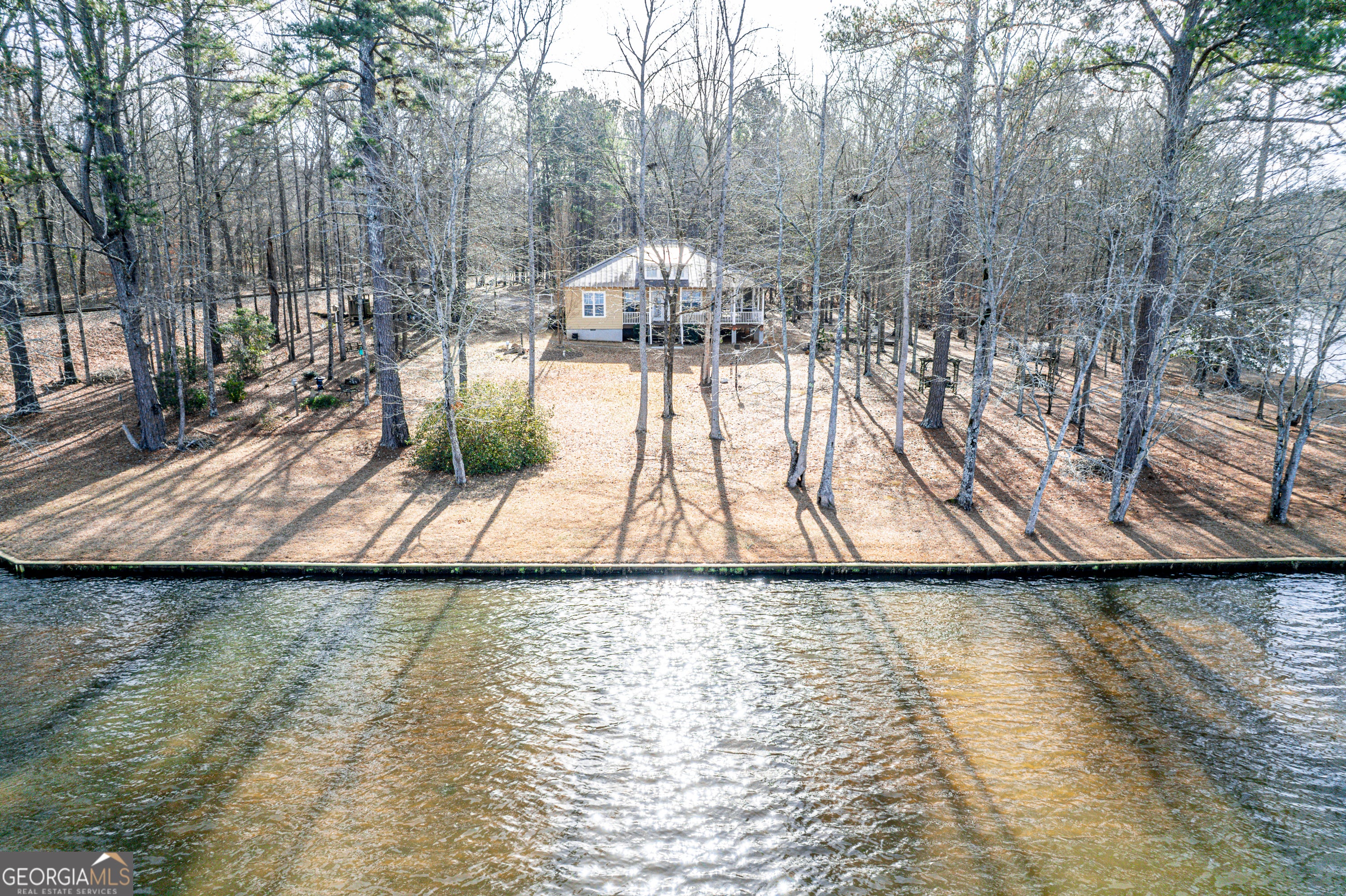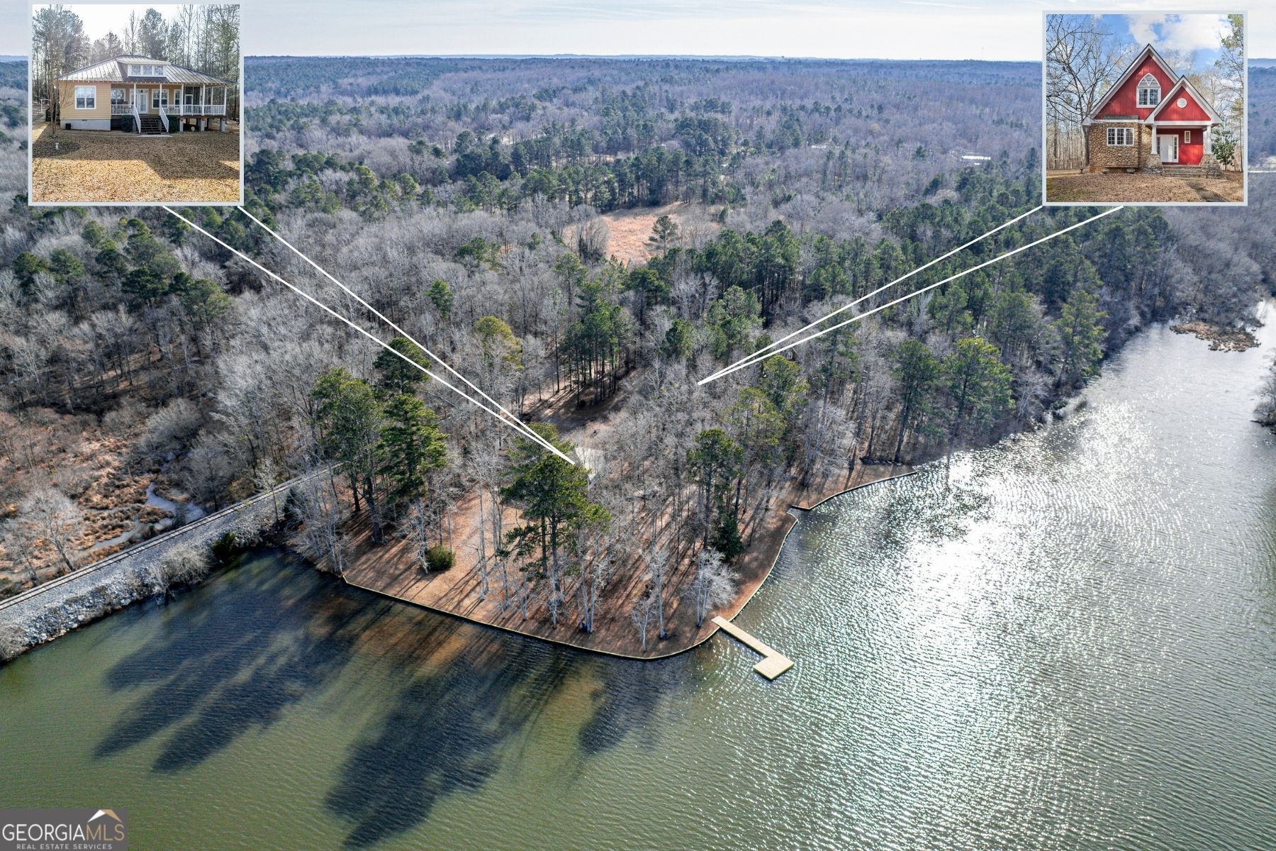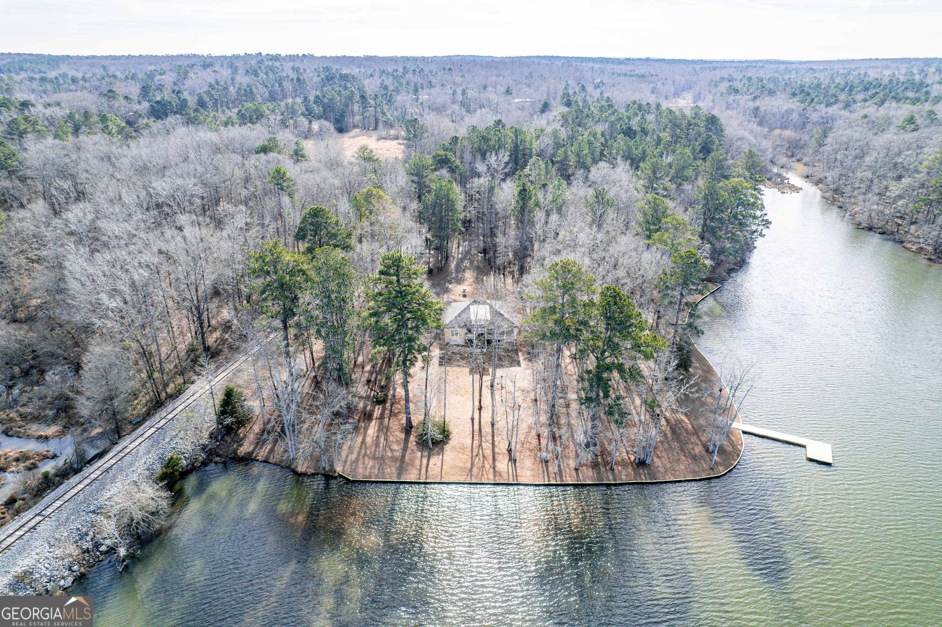 PRIVATE WATERFRONT ESTATE - TWO HOMES ON 18.34 ACRES Rare opportunity to own a private waterfront retreat on Golden Pond in Milledgeville featuring two homes on 18.34 acres with over 1,000 feet of shoreline. Properties offering this level of acreage, privacy, and water frontage are incredibly difficult to find. Golden Pond is a secluded 100-acre section of Lake Sinclair known for its peaceful setting and minimal boat traffic-ideal for kayaking, paddleboarding, fishing, and relaxed lake living. Just a short drive to Sinclair Marina for access to the main lake. The primary home is a well-maintained 2BR/2BA ranch (1,420 SF) with spacious living areas, a cozy fireplace, and a large screened porch overlooking the water. The secondary home is a charming 2BR/1.5BA two-story cabin (992 SF) featuring updated finishes, a screened porch, and hot tub-perfect for guests, extended family, or potential rental use. Outdoor features include over 1,000 feet of shoreline, approximately 550 feet of seawall, boat ramp, newly refinished dock, pole barn, and storage building, creating the perfect environment for enjoying lake life and entertaining. The adjacent rail line sees very infrequent traffic, typically about once per week. With two homes, expansive acreage, and exceptional waterfront, this property is ideal for multi-generational living, a private family retreat, or a unique investment opportunity. Plus 1% Interest Rate Buy Down for the first year with preferred lender! Come experience the peace and privacy of this one-of-a-kind Golden Pond property.