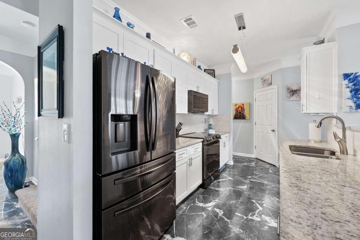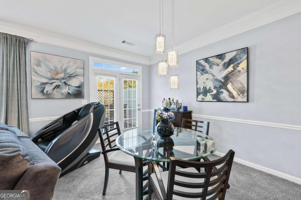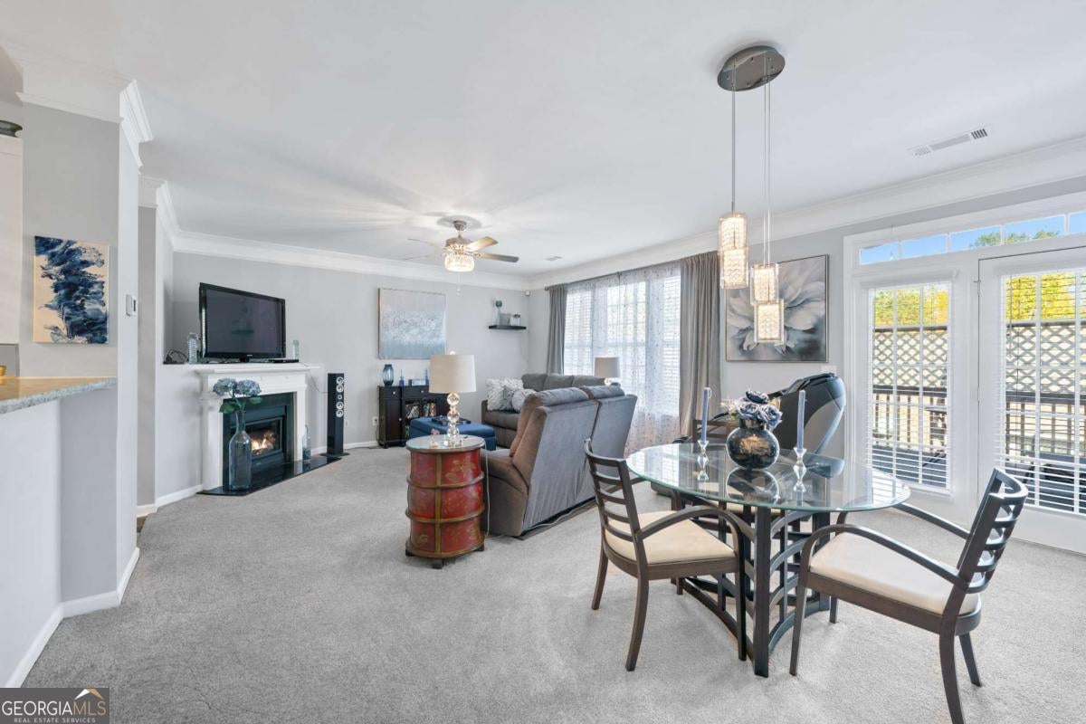SELLER OFFERING $3,000 to Buyer's Closing Cost with a reasonable offer! Fabulous location just minutes from Buford's best dining, shopping, and entertainment, located in the highly sought-after Collins Hill school district. This meticulously maintained townhome was completely renovated in 2022 with new flooring, lighting, bathrooms, kitchen, water heater, and upper-level HVAC. Roof replaced in 2020. The light-filled interior features 9' ceilings on the main level, crown molding, plush upgraded carpet, and elegant tile flooring from foyer through kitchen. The modern galley kitchen offers soft-close white cabinetry, granite countertops, a bar for entertaining, and sleek Samsung black stainless appliances. The spacious primary suite spans the width of the home and includes a sitting area, vaulted ceiling, large walk-in closet, and a beautifully tiled shower. Two additional upstairs bedrooms easily accommodate queen-size furnishings. Enjoy a large private deck-perfect for entertaining or relaxing, with views of fireworks from Coolray Field. HOA includes weekly yard service, pool, pool house, and tennis courts. RENTALS ALLOWED!