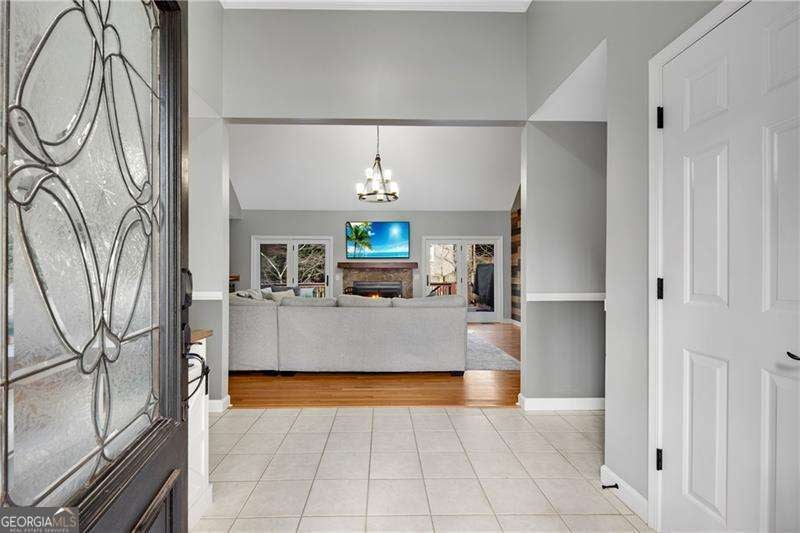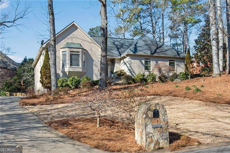 Rare Ranch in Pope High - Now offered at $780,000. Recently repositioned and move-in ready, this 4BR/3.5BA ranch with a finished daylight basement offers true main-level living in sought-after Carriage Lakes - with a Roswell address and low Cobb County taxes. Hardwood floors anchor the main level, featuring a remodeled great room with stone fireplace and an oversized kitchen with stone countertops, center island, dual pantries, and sunny bay window. Brand-new doors open to the deck for seamless indoor-outdoor flow. The spacious primary suite is conveniently located on the main floor. The finished daylight terrace level adds flexible living space with a bedroom, full bath, and media/game room with new flooring - ideal for guests, multi-generational living, or a private office. Extensive unfinished storage offers incredible potential for future expansion, workshop space, or added equity. A rare built-in dumbwaiter adds everyday convenience from the drive-under garage to the kitchen level. Enjoy a flat, fenced backyard with stone patio, fire pit, and room for a future pool - a rare find under $800K in the Pope High district. New furnace (2025), fresh interior paint, updated laundry room, swim/tennis amenities, and minutes to Historic Roswell and Canton Street. Seller includes a 1-year home warranty at closing.