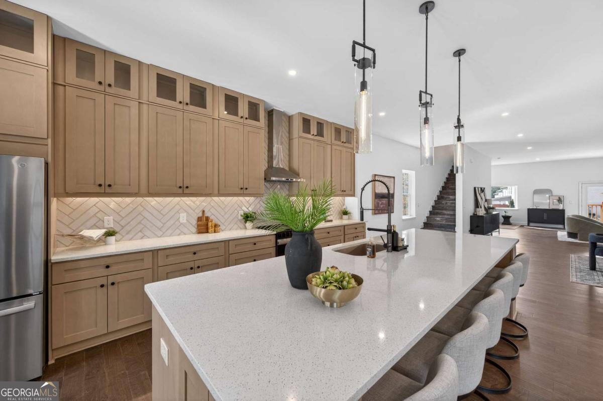 This thoughtfully designed three-story home delivers space, light, and effortless indoor-outdoor living at every turn. Each level opens to its own covered deck ideal for morning coffee, evening wind-downs, or hosting guests while overlooking the beautifully landscaped, fully privacy-fenced backyard.The main level is bright and open, featuring rich wood flooring, recessed lighting, and a spacious family room anchored by elegant double French doors that lead directly to one of the three decks. The layout flows seamlessly into a generous dining area and a chef-inspired kitchen designed for both function and style. Highlights include a large breakfast bar/island, sleek white countertops and backsplash, abundant cabinetry and prep space, plus a built-in wine rack and wine cooler perfect for entertaining or everyday living.Upstairs, the owner's suite offers a true private retreat with a dedicated sitting area, double French doors opening to its own serene deck, and a spa-like bath complete with dual vanities, a soaking tub set inside an oversized walk-in shower, and ample closet space. Secondary bedrooms are spacious and well-appointed with their own baths, while a large laundry room adds everyday convenience. With 5 bedrooms and 4.5 bathrooms, this home offers flexibility and comfort for family, guests, or work-from-home needs.Located within the highly sought-after Buford city limits, you're just moments from Historic Downtown Buford's shops, dining, festivals, and live entertainment. The Mall of Georgia and Lake Lanier are minutes away, offering endless shopping, dining, and recreation.All of this is served by the award-winning Buford City Schools, including the brand-new Philip Beard Stadium a state-of-the-art 10,000-seat venue with luxury suites that reflects the community's commitment to excellence.A rare blend of modern design, outdoor living, and an unbeatable location this home is ready to be experienced.