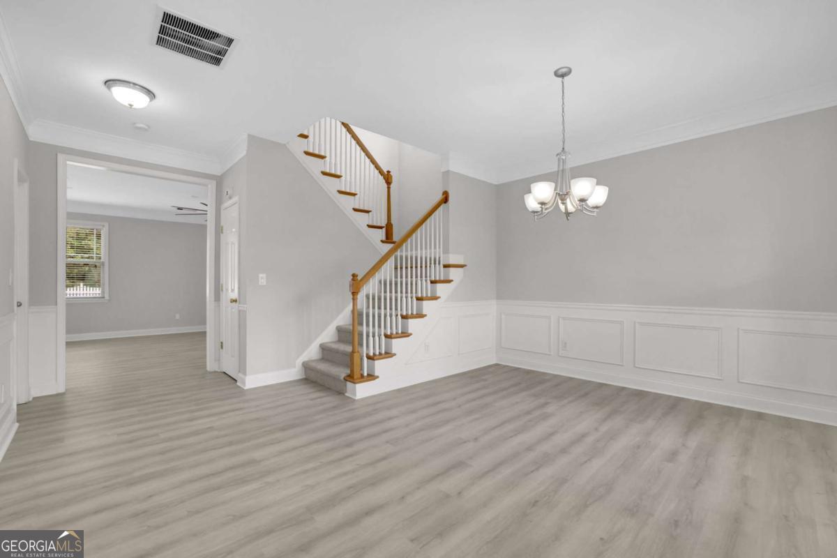 Beautiful Home - Ready to Move in a Quaint Picket Fence Neighborhood! Step into this charming 4-bedroom, 2.5-bath Craftsman-style home, bursting with character and natural light. Located in a picturesque community, this property boasts an open floor plan, perfect for entertaining. The stylish kitchen features crisp white cabinetry, sleek stainless-steel appliances, and plenty of counter space. A separate dining room offers additional space for family / friend's gatherings. Cozy up by the fireplace in the great room or unwind in the serene backyard oasis. Recent updates include a freshly painted interior, brand new exterior paint with a sleek modern look featuring crisp whites and deep blacks, new vinyl flooring, brand-new carpet, and modern lighting throughout. The spacious primary suite is a serene retreat, while the three secondary bedrooms offer comfort and flexibility. Enjoy the expansive fenced-in backyard, one of the largest in the neighborhood, perfect for relaxation or play. Please note that the lot lines extend beyond the fence. Plus, the home features a water softener system for added convenience and comfort. With convenient access to GA-400 and proximity to The Collections at Forsyth, Big Creek Greenway, and top-rated Forsyth County schools, this home offers the perfect blend of tranquility and accessibility. Schedule a showing today and make this house your home! Great for Investment too.