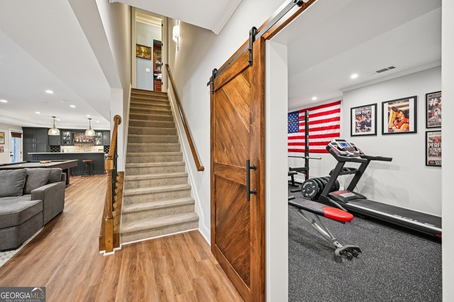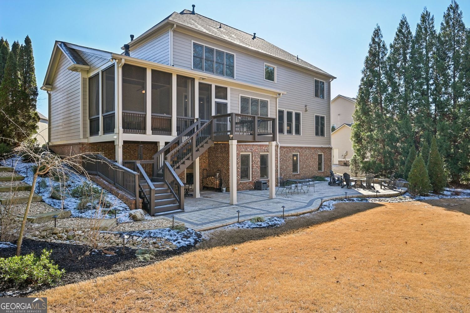 Exceptional opportunity in the highly sought-after Marseille subdivision, located in the West Forsyth High School district of Forsyth County. This beautifully appointed home offers a desirable bedroom-on-every-level floor plan and fully updated interior finishes throughout, highlighted by upgraded woodwork and custom molding, and a spectacular finished terrace level. Designed for both everyday living and entertaining, the main level features a warm and inviting family room with coffered ceiling & fireplace, an open keeping room with its own fireplace, and seamless flow to the screened porch overlooking the flat backyard. Step outside to enjoy the walk-out patio with a fire pit-perfect for outdoor gatherings and relaxed evenings at home. The spacious primary suite is a true retreat, complete with a sitting area and cozy fireplace. Additional bedrooms on each level provide flexibility for guests, home office, or multi-generational living. The high-use finished terrace level is an entertainer's dream, offering expansive recreation spaces including a bar, rec room, workout room, bedroom or office, and an additional fireplace-ideal for movie nights, game days, or hosting friends and family. Additional highlights include a 3-car garage, irrigation system, security system, landscape lighting and lifestyle features that elevate everyday living. This home blends comfort, functionality, and style in one of West Forsyth's most desirable communities-convenient to shopping, dining, and top-rated schools. A rare opportunity to own a move-in ready home with exceptional indoor and outdoor living spaces. Welcome home.