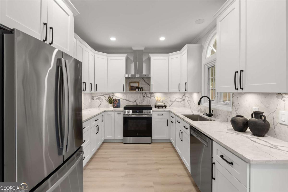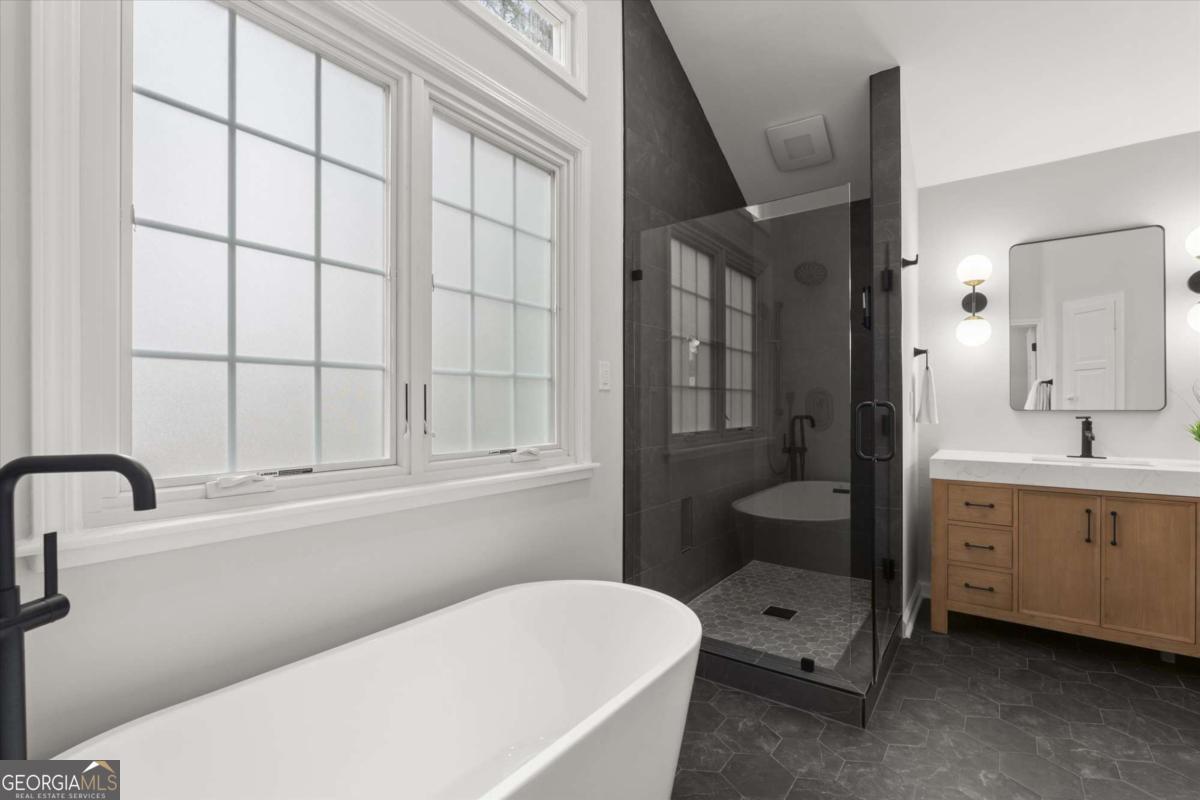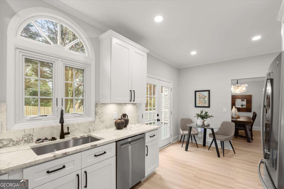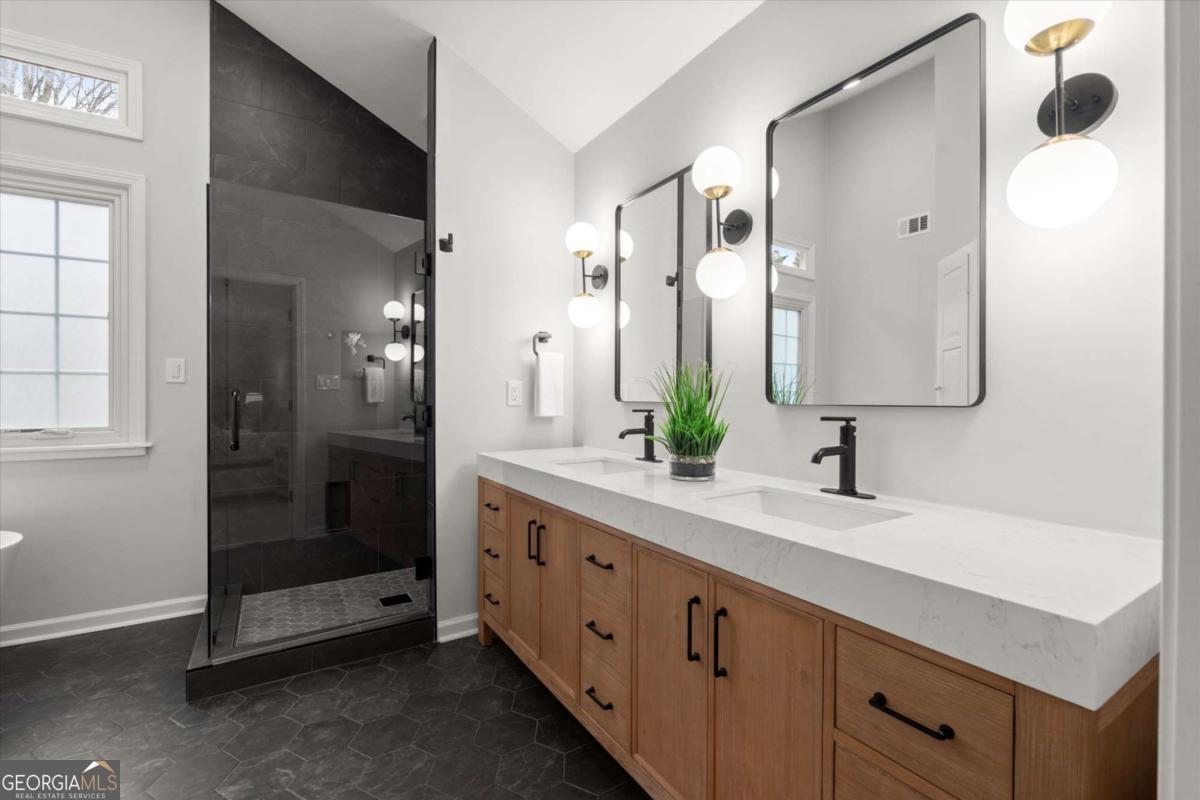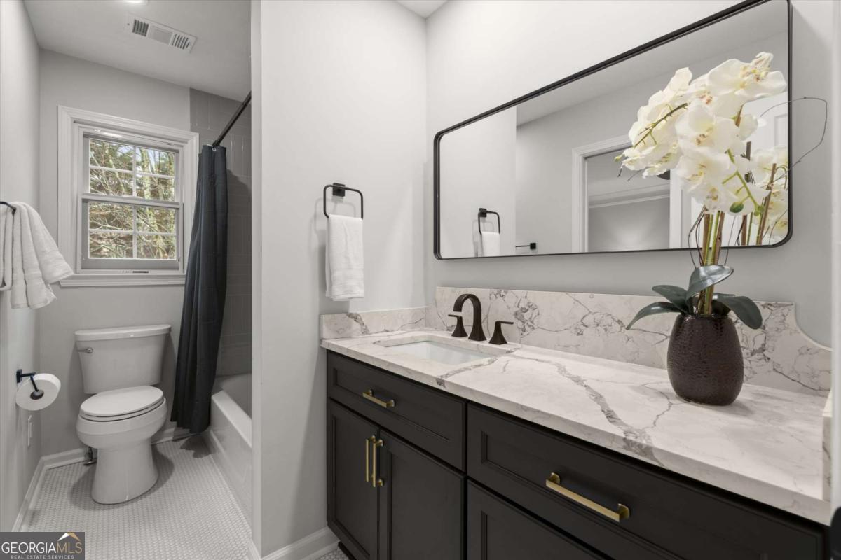 Tucked inside one of Brookhaven's most desirable areas, this home underwent a top-to-bottom designer quality renovation with modern finishes and thoughtful upgrades throughout. The kitchen has all-new white shaker cabinets, quartz countertops and backsplash, stainless steel appliances and 42-inch upper cabinets for extra storage, giving the space a bright and modern feel. Oversized rear deck exit in the kitchen provides an easy indoor-outdoor living vibe and is perfect for grilling and entertaining. The main level is open with the living room featuring a gorgeous fireplace with custom-built-ins, opening naturally to the dining space and redesigned kitchen. The spacious primary suite is a stunning retreat with vaulted ceilings, walk-in closet, and a spa-inspired bath featuring dual vanities, soaking tub, oversized shower, and elevated finishes. Two additional bedrooms are well-proportioned and share a fully updated bath with new vanities, fixtures, lighting and custom tile for a clean design. What also makes this home special is the scope of investment beyond cosmetics. Recent improvements include two new Lennox HVAC systems, a new electrical panel, new hot water heater, encapsulated crawl space, and extensive exterior landscape upgrades. The property has been fully resodded, fenced with a new front fence, and enhanced with a stone walking path along the side yard. The backyard is private, level, and ideal for entertaining, pets, or quiet evenings at home. Located toward the end of the neighborhood cul-de-sac, the home offers a sense of privacy that buyers value, especially near Brookhaven's amenities. Minutes from Brookhaven's city center where restaurants, shops, recreation, parks and everyday errands to Costco and Publix are made easy (and a short stroll). This neighborhood feels like a hidden gem inside the city. Quick access to major routes like I-I-85, GA-400 so Buckhead, Midtown, and Dunwoody are close by, while the neighborhood itself remains calm, established, and highly livable. Within one of the area's most sought-after school zones including Ashford Park Elementary, Chamblee Middle and Chamblee Charter High.