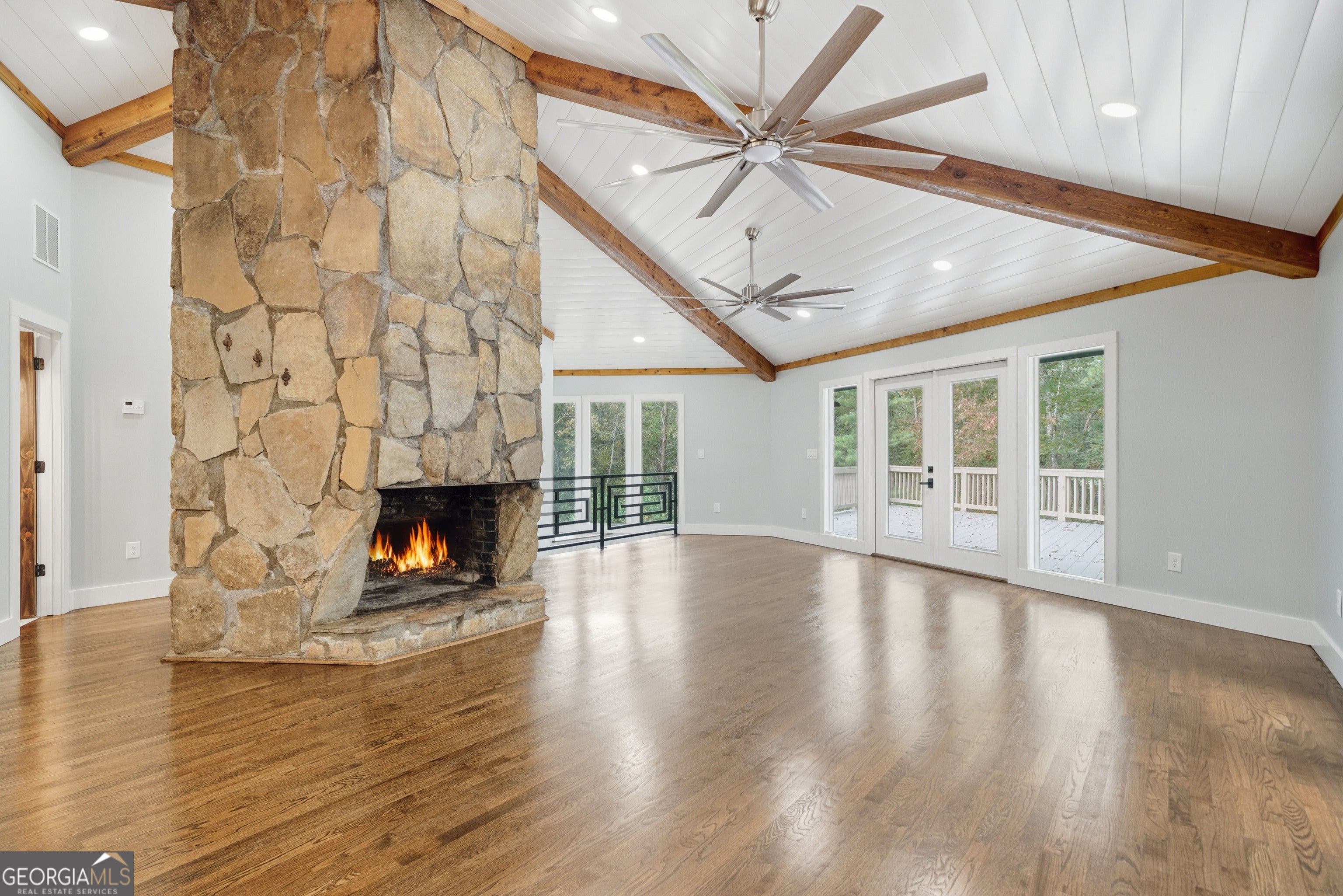 Welcome to your perfect mountain retreat, a beautifully renovated modern rustic cabin style home nestled on 1.87 acres of pure tranquility. Surrounded by nature with no nearby neighbors, this property offers total privacy, peace, and charm, the ideal getaway from the city or a serene full time residence. With over 2,200 SQFT of thoughtfully redesigned space, this home blends timeless rustic touches with modern upgrades and high end finishes throughout. From the moment you arrive, the long driveway, beautifully landscaped front yard, and towering trees (freshly cut back for a more open feel) welcome you into your own private escape. The metal roof is in excellent condition, and the exterior features fresh paint, new gutters, modern lighting, and new exterior doors for a crisp, updated look. Enjoy relaxing or entertaining on the huge back deck that wraps around home with new stepping wood, surrounded by a beautiful garden and lush green views. There's also a massive carport, new barn doors on the storage area, and ample parking space, perfect for large gatherings or weekend getaways with friends and family. Inside, the home offers a gigantic open concept layout with new windows and larger trims designed to let in an abundance of natural light. The living room exudes rustic elegance with cedar posts on the ceiling, a stunning stone fireplace, and a new 72 inch ceiling fan that completes the airy, cozy vibe. The completely renovated kitchen features L shaped granite countertops, new stainless steel appliances, modern cabinets and drawers, a natural brick backsplash, and contemporary light fixtures, creating a perfect balance of function and beauty. All three oversized bedrooms serve as private master suites, each with its own luxurious bathroom and huge walk in closet. The bathrooms have been fully redesigned with ceramic showers, quartz vanities, ceramic flooring, and wood paneled ceilings, giving each space a warm, inviting cabin feel. Every corner reflects quality craftsmanship, from the custom metal stair railings to the new ceiling fans, recessed lights, and beautiful new trim and interior doors. This home is as solid as it is stunning, with all new subfloors and joists, new sheetrock and insulation, new plumbing throughout, mostly new electrical, and a strong foundation in great condition. You'll also find two brand new A/C units and furnaces with new air ducts, plus a new water heater, ensuring long term comfort and peace of mind. The property's huge front and backyard provide endless possibilities! From peaceful mornings surrounded by nature to lively outdoor gatherings with loved ones. Located just minutes from River Falls, Tallulah Falls, Rocky Mountain, Tallulah Mountain, and Terrora Beach, you'll be near some of the most scenic and relaxing destinations around. With the cool mountain weather approaching, there's no better time to enjoy everything this home and area have to offer. Don't wait to schedule your showing; Come experience the peace, privacy, and perfection of this one of a kind mountain retreat today!
