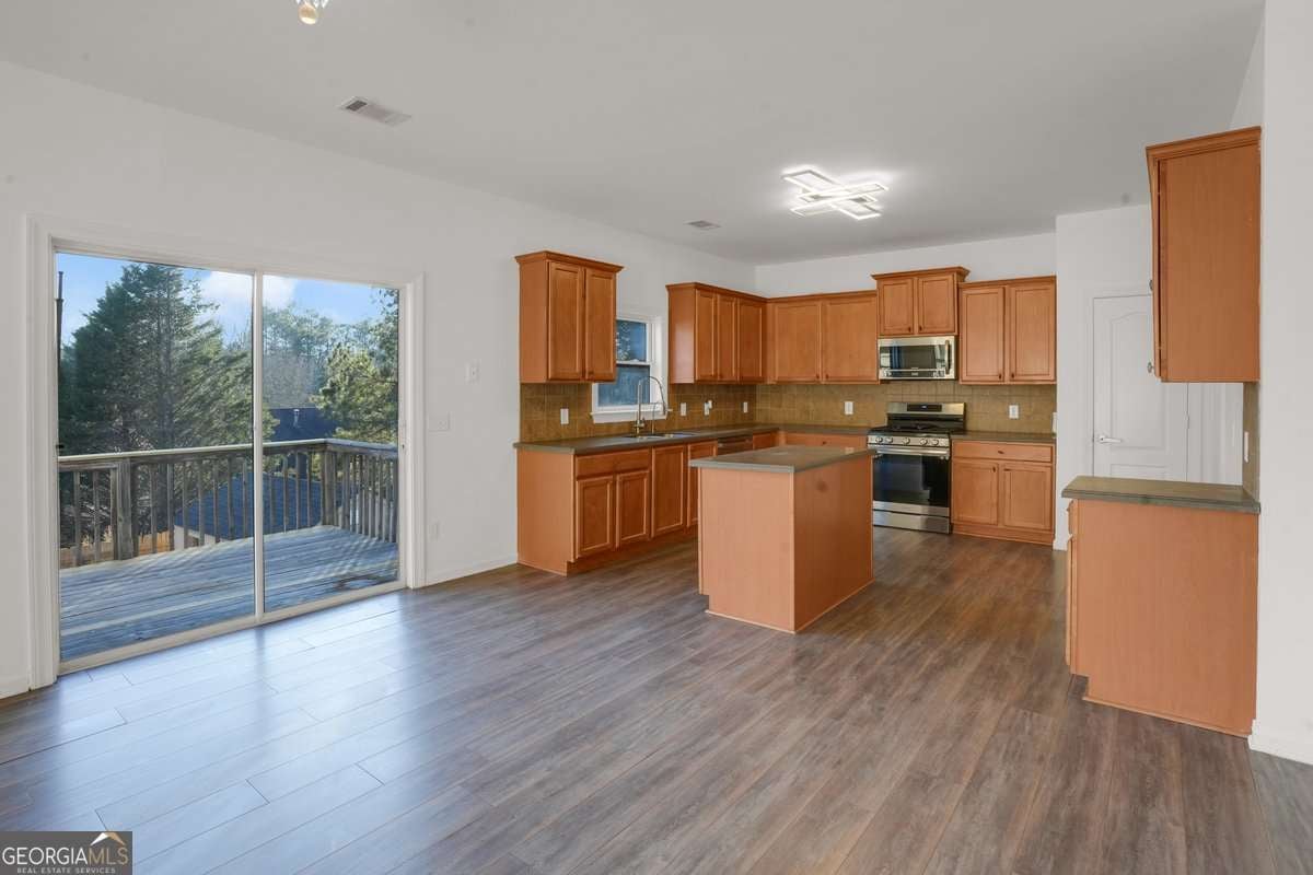 Welcome to 5280 Lakerock Way SW, nestled in the highly desirable Summit at Sandtown community. This impressive brick-front residence offers 5 bedrooms, 4 full bathrooms, and three additional bonus rooms, spanning over 5,500 square feet of thoughtfully designed living space-ideal for both everyday comfort and effortless entertaining. The main level showcases formal living and dining rooms, a dramatic two-story great room with a fireplace, and a spacious, well-appointed kitchen featuring granite countertops, stainless steel appliances, abundant cabinetry, and a breakfast bar. A main-level bedroom with a full bath provides flexibility for guests, a home office, or multigenerational living. Upstairs, the oversized primary suite serves as a private retreat with a walk-in closet and a spa-inspired en-suite bath complete with dual vanities, a soaking tub, and a separate shower. Secondary bedrooms are generously sized and offer ample closet space. The fully finished basement significantly expands your living options, featuring a second living area with a fireplace, a full bathroom, and three bonus rooms-perfect for a media room, home gym, guest suite, or additional living quarters. Outdoor living is equally inviting with a fenced backyard, private patio, and storage shed. Residents enjoy access to community amenities including a swimming pool, tennis courts, and clubhouse, all conveniently located near schools, shopping, and major highways. This exceptional home combines space, functionality, and community living-an opportunity not to be missed.