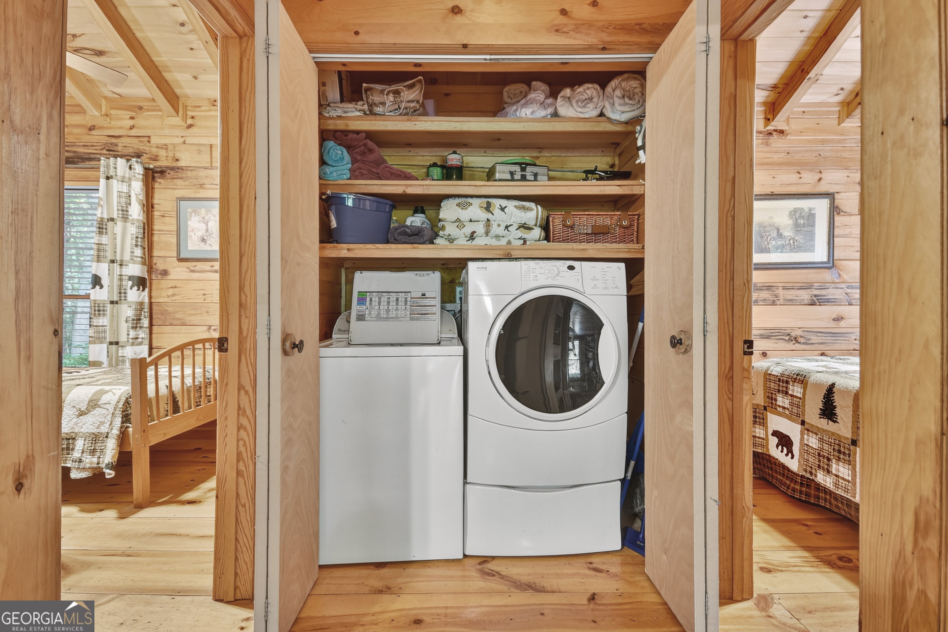Tucked away in the rolling hills of popular Cherry Log Mountain, log cabin community, this charming "real" log cabin combines authentic craftsmanship w/ modern comforts. This D-style log home features an open floor plan design w/ 2BR, 1BA + "mini. Lots of windows throughout allows you to enjoy the outdoors from within on this private wooded lot located w/ end of the road privacy for ultimate seclusion. This cabin has tons of outdoor living for you to relax & unwind - large covered porch on main entry of home + lower level outdoor living deck features sitting area, outdoor dining & grilling station w/ walkway to leads to a firepit nestled below towering hardwoods of lush forest & native flora. Interior of home features stone wood burning fireplace in Great Rm, cathedral ceilings, exposed beams, wood floors, custom wood cabinetry & more. Enjoy common access in the community to privately stocked lakes great for fishing, kayaking & canoeing or access the Benton MacKaye Trail right outside your back door and adventure on until it meets up with the Appalachian Trail. Centrally located between the towns of Blue Ridge and Ellijay, GA. Whether you're cozying up by the fireplace or soaking up nature in the great outdoors, this retreat is a peaceful haven for relaxation & adventure. This cabin can be purchased turn key w/ all furniture, decor & accessories separately via a Bill of Sale.