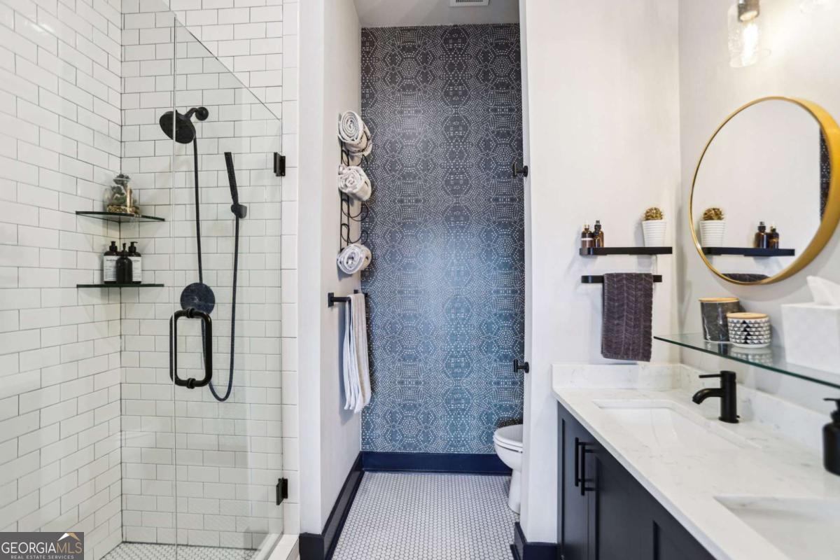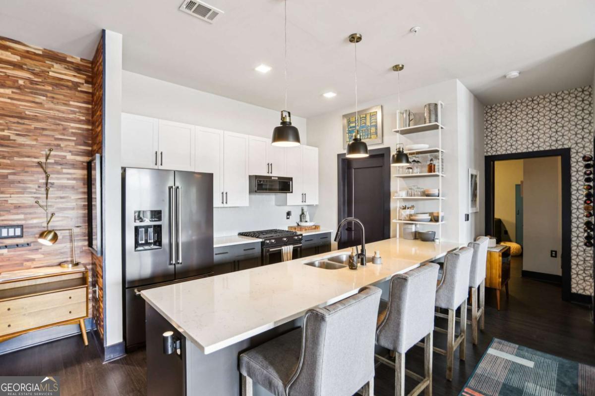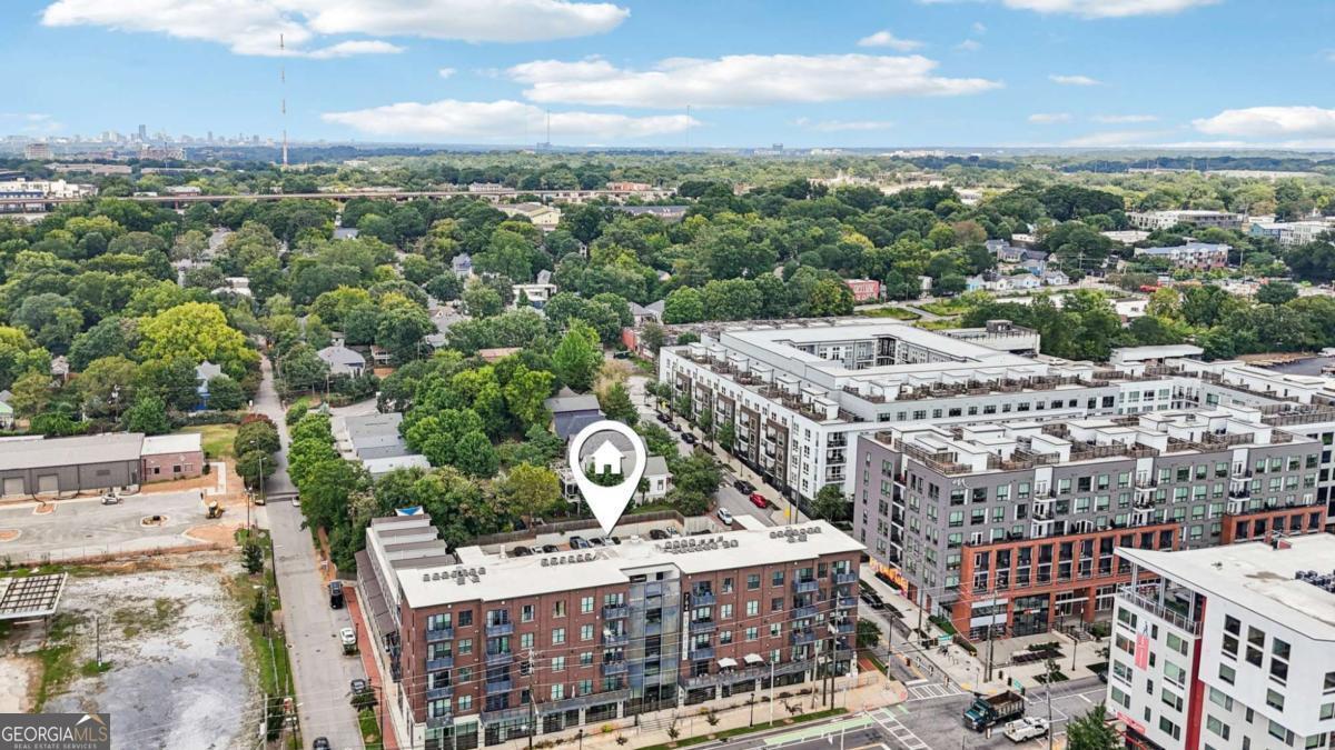 Upgraded to the 9's and perfectly placed in the heart of it all-this condo has it all going on! Walkable to Madison Yards, Glenwood Park, the Beltline, Southern Dairies, and everything Cabbagetown has to offer, this home is nestled in one of the most vibrant yet charming pockets of the city. With off and on street parking, direct street access, and quick I-20 convenience, getting around is effortless-but honestly, you may never want to leave. Inside, you'll find a truly one-of-a-kind space. The open floor plan is warm and inviting, centered around a 30-foot-wide wood slat feature wall in the living room with big south-facing windows overlooking Glenwood Park and an 85" 4K mounted TV (which is included in the sale of the home). Custom details are everywhere-deep grey water-resistant LVP floors, rich blue doors and trim, matte black fixtures, and updated LED lighting. The kitchen features black stainless KitchenAid appliances, open shelving at the peninsula, and fresh pendant lighting. The primary suite offers a boutique feel with geometric wallpaper, a double vanity (the only one in the building!), and a deep glass shelf above the sinks. Beyond the walls, this home comes with a lifestyle that's hard to beat. The sellers-the sole owners since new-have loved the friendly, tight-knit community, where neighbors are welcoming and quick to lend a hand. Cabbagetown and Reynoldstown are known for being calm, creative, and full of character-perfect for families, pets, and weekend exploring. With fantastic local restaurants, grocery stores, parks, and events like Chomp-N-Stomp, Summer Shade Festival, and the Grant Park Farmers Market, there's always something to do close to home. Walkability, warmth, and wonderful neighbors-this home truly has it all, right in the middle of one of Atlanta's most beloved neighborhoods.