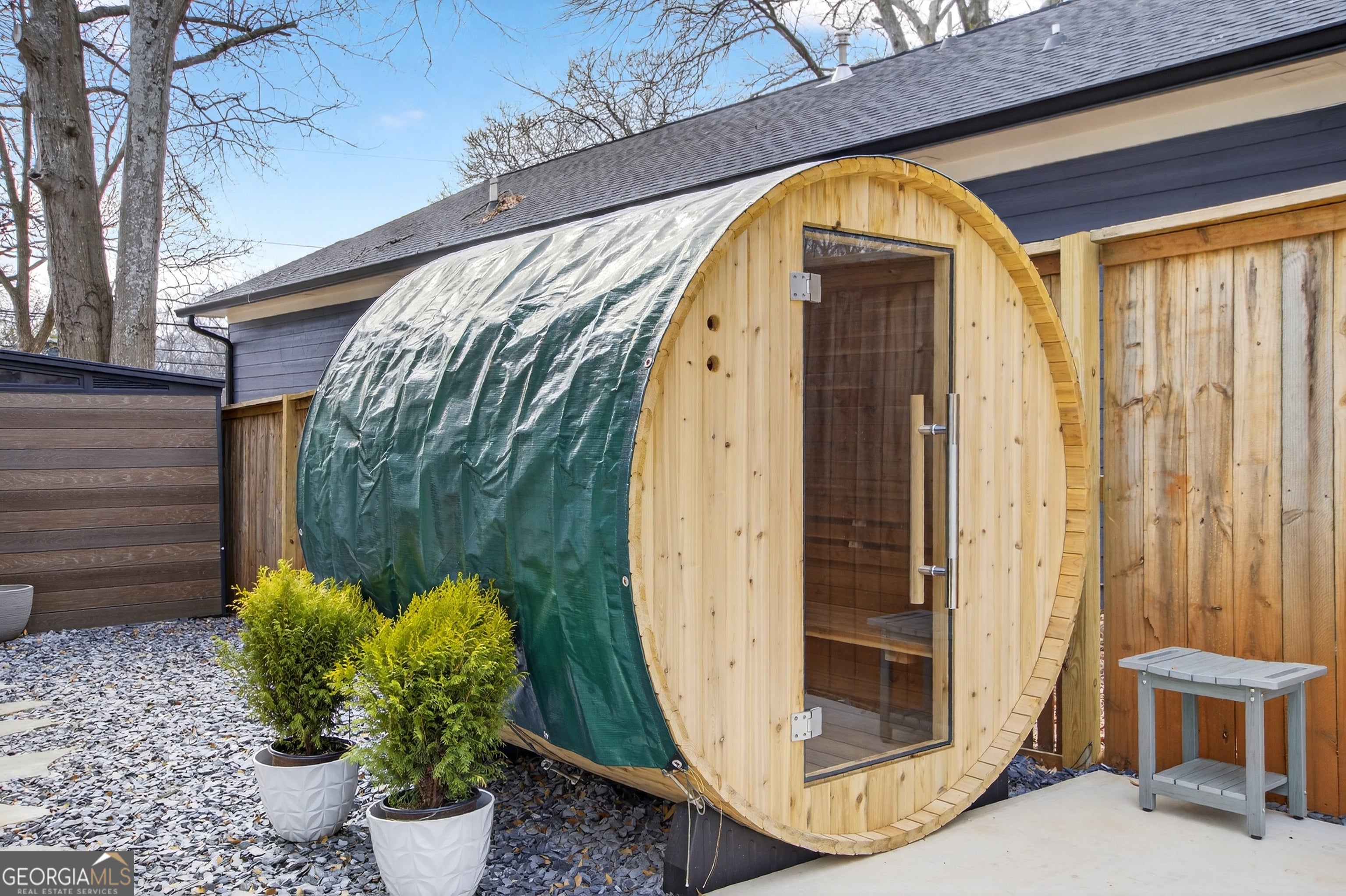 Gorgeous modern Craftsman in the heart of Edgewood-just steps from the new Trolley Line Trail connecting directly to the Atlanta BeltLine! Ideally located minutes from the shops and restaurants of Pullman Yards and the Kirkwood Business District, as well as Coan Park and the MARTA station. This home features a thoughtful design with a welcoming front porch, open floor plan, hardwood floors, and custom blinds throughout. The gourmet kitchen is complete with custom cabinetry, quartz countertops, stainless steel appliances with gas cooking, a large island, and a butler's pantry with butcher-block countertop and adjoining mudroom. The sun-filled living room boasts a wall of windows overlooking the backyard, a beamed ceiling, and a gas-log fireplace. Upstairs you'll find the owner's suite with French doors leading to a Juliet balcony, a large custom walk-in closet, and a spa-like ensuite bath with dual vanity, soaking tub, and separate shower. Two additional bedrooms are adjoined by a Jack/Jill bathroom. An upstairs laundry room with abundant storage completes the second level. Don't miss the crown jewel of this home-a private backyard retreat with gated driveway entry, fully fenced grounds & a spacious deck perfect for dining al fresco. This exceptional outdoor oasis also features a newly installed patio, an Almost Heaven four-person barrel sauna, outdoor shower, and storage shed. With plenty of room for a pickleball court or custom garden, the space is designed for both entertaining and serene everyday living.