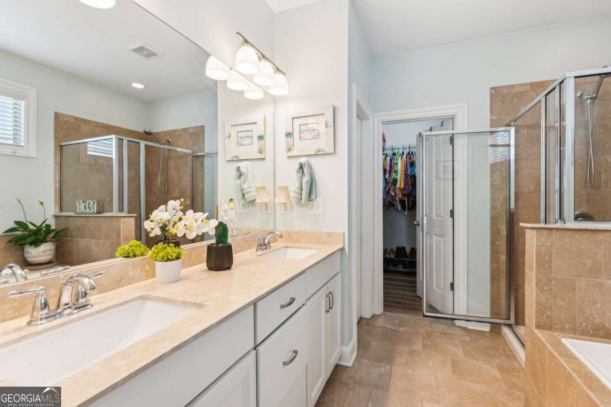 LOCATION and LUXURY LIVING AT ITS FINEST! This stunning, OPEN CONCEPT, MASTER ON MAIN with STORAGE GALORE, an OPTIONAL 4th BEDROOM and 47K in recent upgrades is located in the sought-after Jamestown subdivision, an active swim/tennis/pickleball community. This fantastic, gated community is located less than a mile from Halcyon, offering top local restaurants, shopping, live entertainment, cornhole leagues, easy access to the Big Creek Greenway walking and biking trails, and much more. As you step inside, you are welcomed by a BRIGHT and INVITING, open main level floor plan with numerous windows and an abundance of natural light. This floor plan features an inviting foyer, a large open dining room, and a family room that seamlessly connects to a gorgeous white kitchen with deluxe cabinetry, a large island, and makes it a fantastic space for entertaining. Enjoy the serene views out to the lovely landscaped custom patio with paving stones and lush aromatic shrubs, where you can unwind year-round. The main-level, generously sized primary bedroom boasts a luxurious bathroom with a separate tub and shower, along with a large walk-in closet to meet all your storage needs. Upstairs, you will find two additional spacious bedrooms that offer ample space for everyone. Additionally, there is an oversized LOFT area that serves perfectly as a home office and an OVERSIZED flexible bonus room which can be used for additional living space, MEDIA ROOM, 4th BEDROOM, gym, playroom - get as creative as you wish! Fresh paint and LVP throughout, gorgeous fenced and landscaped patio, and remodeled kitchen are just a few of the recent upgrades to this house. There's nothing left to do but move in and start enjoying the vibrant and active community of Jamestown. Get in now before property values soar. With easy access to GA 400 and top-rated schools, this property is a perfect 10! SCHEDULE YOUR SHOWING TODAY!