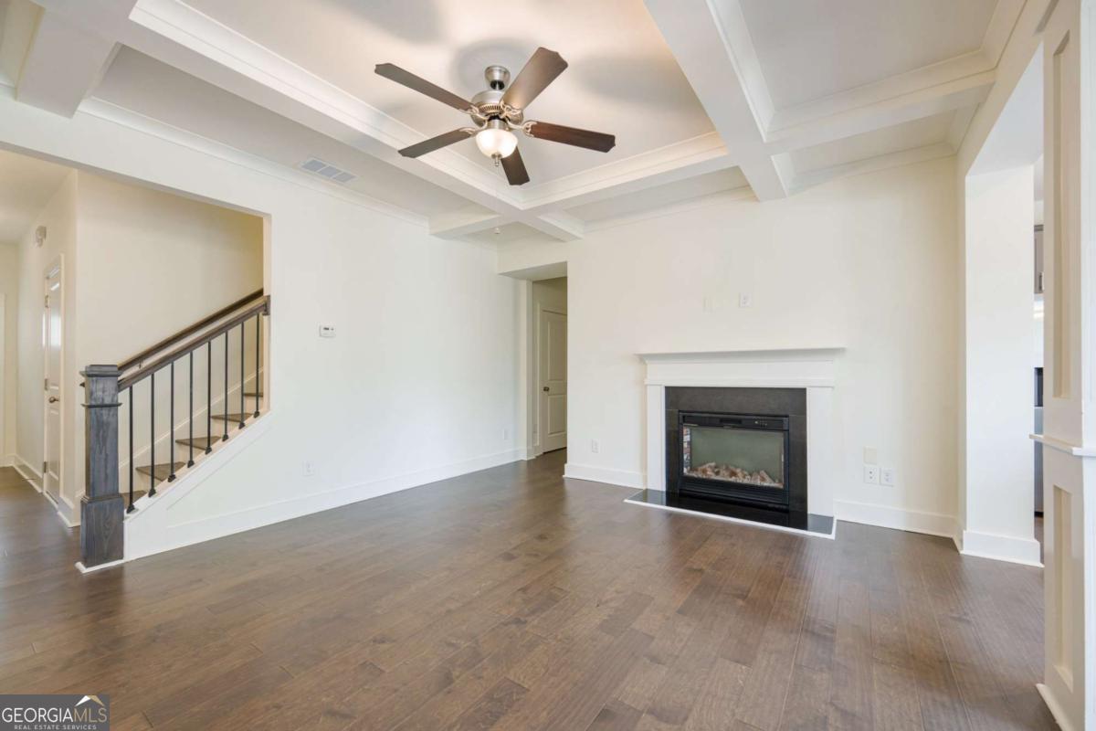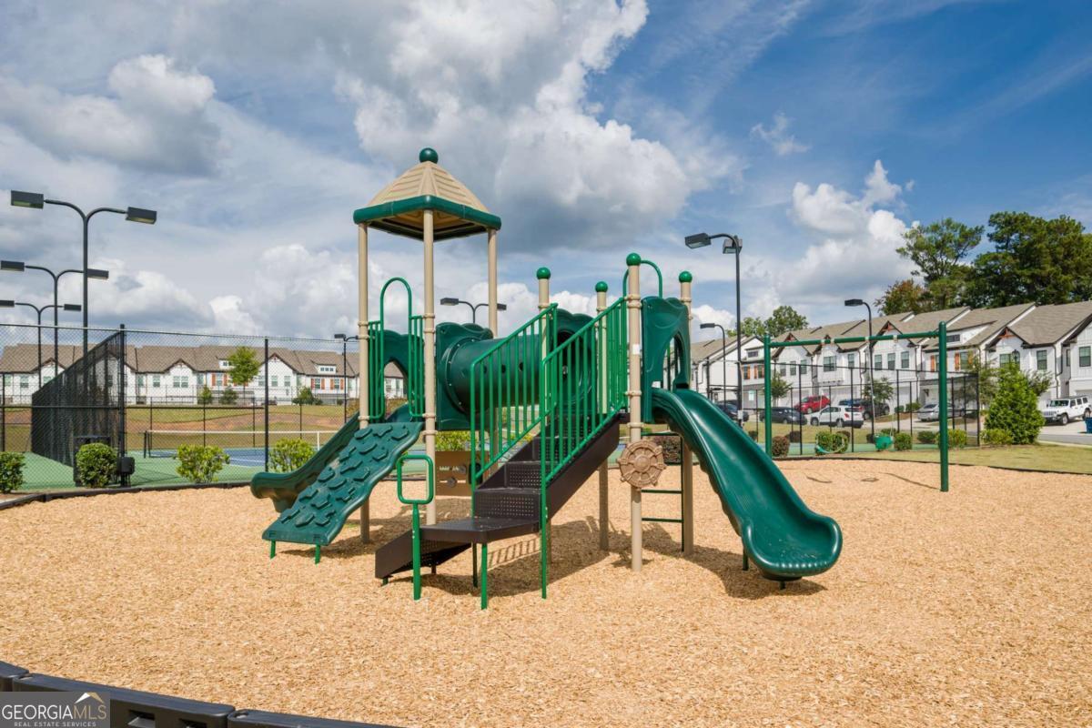 This like-new, upgraded townhouse in Towns of Auburn. The open floor plan features a cozy living room with a fireplace, ceiling fan, recessed lighting, and a dining area with a glass door leading to the patio and fenced yard. The gourmet kitchen boasts quartz countertops, a tiled backsplash, stainless steel appliances, white cabinetry, a breakfast bar and a spacious pantry. Hardwood floors flow throughout the main level and stairs, complemented by elegant faux wood blinds for privacy and style. The primary suite includes a sitting area, tray ceiling, wooded backyard views, a walk-in closet, and a spa-like bath with a soaking tub, separate shower, and double vanities. Secondary bedrooms are spacious with park views. Bathrooms and the laundry room feature tiled floors. Enjoy amenities like a pool, tennis & pickleball courts, and a playground. Low HOA fees cover exterior maintenance, pest control, and lawn care. Includes a two-car garage. Convenient to highways, shopping, and schools