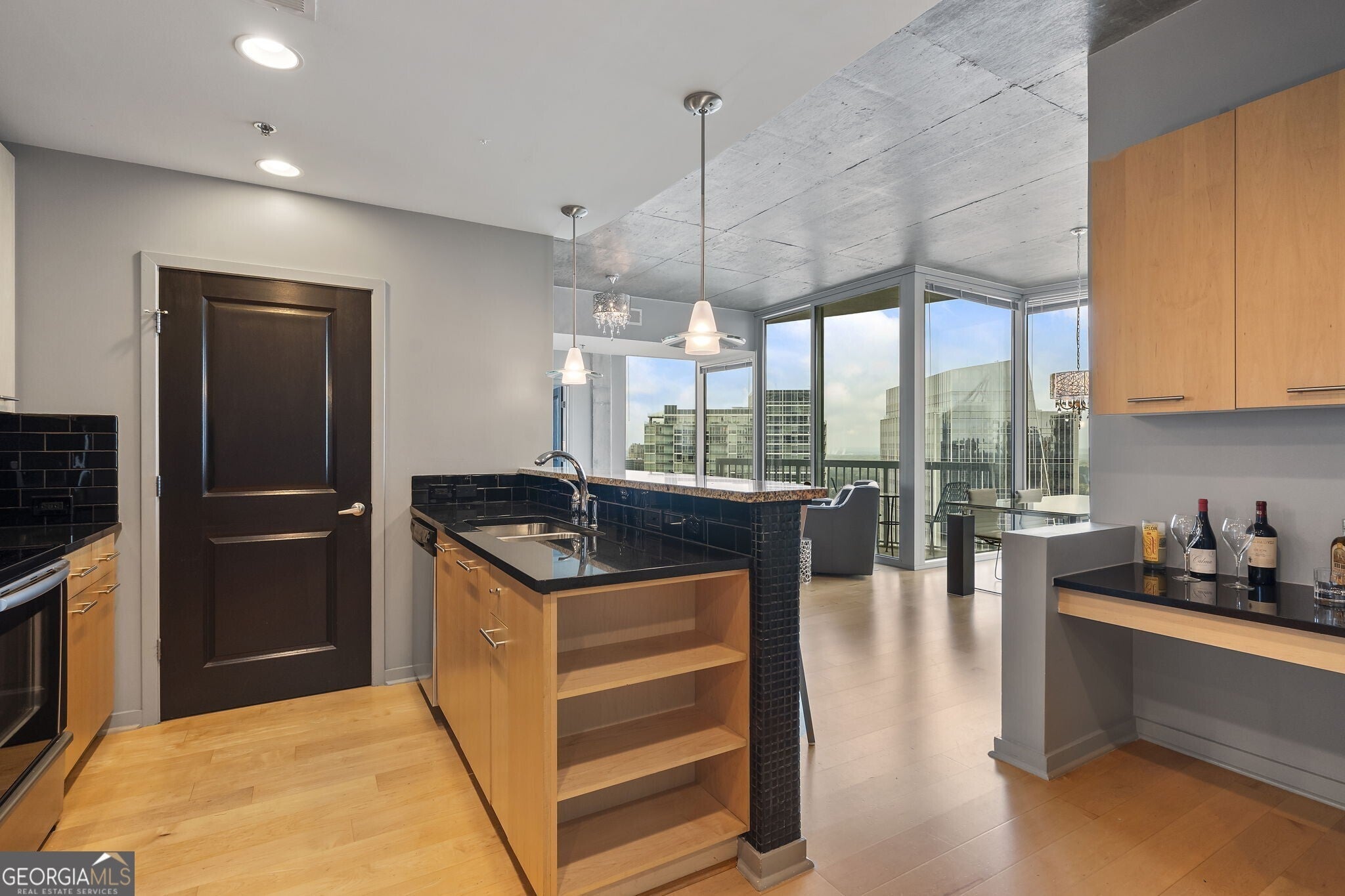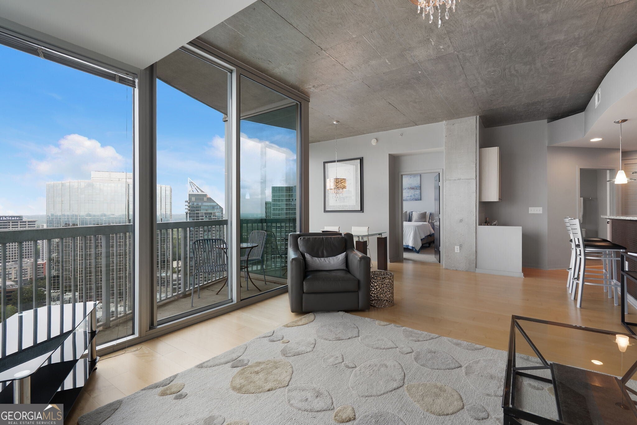 Experience upscale city living in this stunningly maintained two-bedroom, two-bathroom condo at the Realm Condominiums, nestled in the heart of Buckhead. Upon entry, you're greeted by bright and airy interiors with floor-to-ceiling windows that frame sweeping city skyline views, flooding the space with natural light. The expansive open concept design features elegant hardwood flooring that flows seamlessly through the main living areas, providing warmth and sophistication. The contemporary kitchen stands out with its luxurious granite countertops, sleek stainless steel appliances, and a generously-sized center island, which serves as the perfect spot for intimate gatherings or casual dining. The seamless flow from the kitchen to the spacious living and dining areas creates a cozy environment, ideal for both entertaining guests and enjoying quiet nights at home. Adjacent to the kitchen, a stylishly appointed built-in bar enhances the space's functionality and charm, serving as an inviting spot for your morning coffee or cocktails with friends in the evening. The primary bedroom is generously proportioned and boasts an oversized closet along with a private en-suite bathroom, featuring a tub/shower combo that balances comfort with practicality. The second bedroom is equally flexible, great for guests, a home office, or shared living, and enjoys easy access to a full secondary bathroom. Moving outside onto your private balcony, an inviting space to take in the skyline views or relax after a busy day. Additional perks include an in-unit laundry closet and two assigned parking spaces in a secure garage. Living at The Realm means you'll benefit from an impressive array of premium amenities, including a 24-hour concierge service, a resort-style pool with a sun deck, a state-of-the-art fitness center, a rooftop terrace with grilling stations, a welcoming clubroom, a business center, and a pet-friendly community. Located in one of Atlanta's most dynamic neighborhoods, you're just moments away from top-notch dining, luxury shopping, entertainment, and major highways.