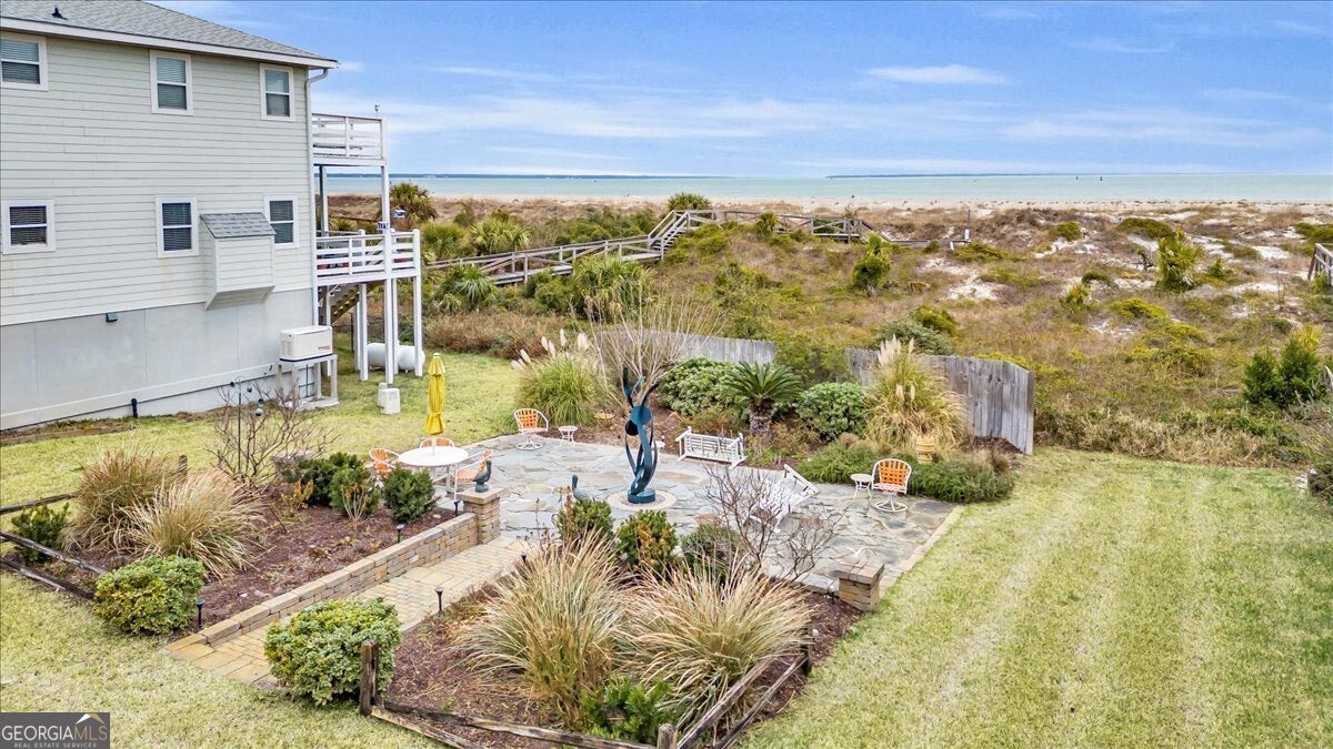 Undeveloped oceanfront property rarely presents itself on Tybee Island, the tiny coveted Atlantic Coast shoreline of Savannah. The opportunity to own a spacious home, in a gated community with four bedrooms, four bathrooms, garage, and boardwalk access to the beach is unheard of. Not to mention, you get to own the oceanfront lot across the cul-de-sac currently being used as a relaxing meditation garden. This three story home comes fully equipped with elevator access, each floor featuring its own bedroom with oceanfront view, and full bathroom. The primary suite, on the top floor, has a private balcony with views of the lighthouse, as well as a Birds Eye view of the lot that comes with the home and the Atlantic beyond. The entertaining floor has an open plan, with several living and dining space options. A fully enclosed sunroom and large screened-in porch provides the exterior space and ocean views that will keep your gaze complete this dreamy beach house. Walkable Fort Screven area features the Tybee Lighthouse, Marine Science Center, Jaycee Park, the TI Dog Park.