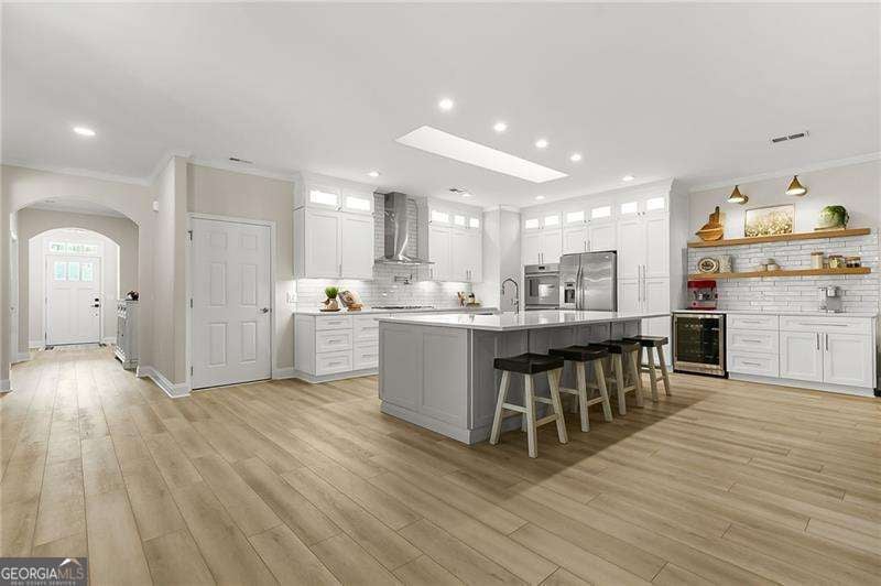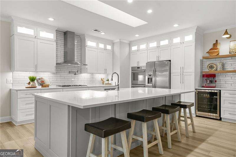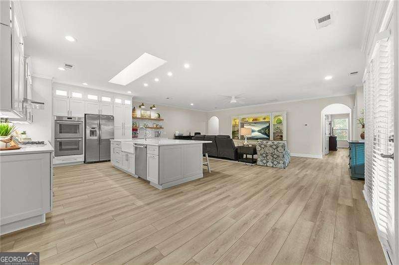 Reimagined from the inside out. This stunning Seven Hills ranch features a complete interior remodel with high-end designer finishes throughout that you would otherwise spend well over one hundred thousand dollars and months of construction to achieve. At the center of the home, the fully redesigned kitchen features premium Thermador appliances, quartz countertops, ceiling-height cabinetry with upper and under-cabinet lighting, a pot filler over the range, and an oversized island with additional full-size cabinetry for exceptional storage. The open-concept layout flows seamlessly into the main living space, where skylights and abundant recessed lighting highlight the high-end COREtec waterproof LVP flooring that runs throughout the entire home. You'll also love the oversized coffee bar with mini refrigerator included that offers even more storage. The primary suite feels like a luxury retreat, showcasing a beautifully renovated bath with quartz countertops, double shower heads, designer tile with an inset niche, lighted mirrors, and elegant wall sconces. Every detail of the remodel was designed for both style and functionality, including crown molding, fresh interior paint, a dedicated laundry room with cabinetry and sink, and custom Container Store ELFA closet systems that maximize organization. For buyers seeking a truly move-in-ready home with a level of renovation rarely available in this price range, this property offers the opportunity to enjoy designer upgrades from day one without the cost, time, and uncertainty of remodeling. Outdoor living is just as inviting, with both a screen-covered porch and a second covered patio, offering ideal spaces for morning coffee or relaxing evenings. Located within the highly desirable Seven Hills community, residents enjoy resort-style amenities including a water park, tennis, pickleball, basketball courts, and miles of walking and biking trails. All within one of the area's most vibrant and active neighborhoods.
