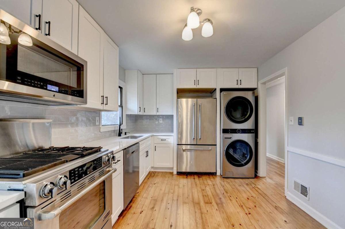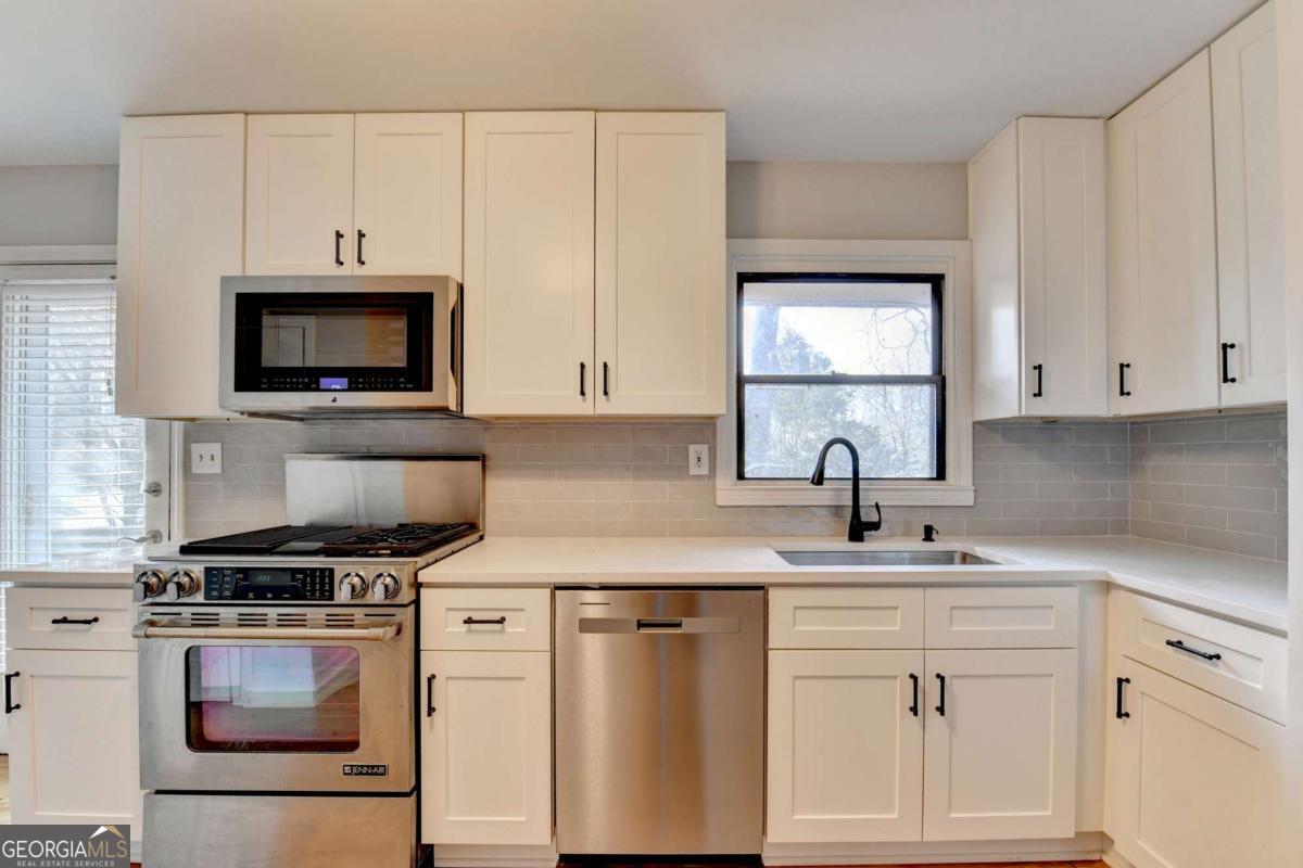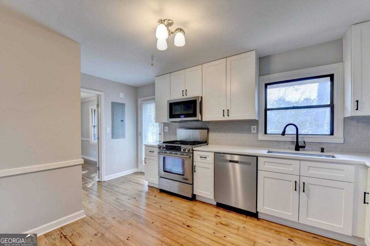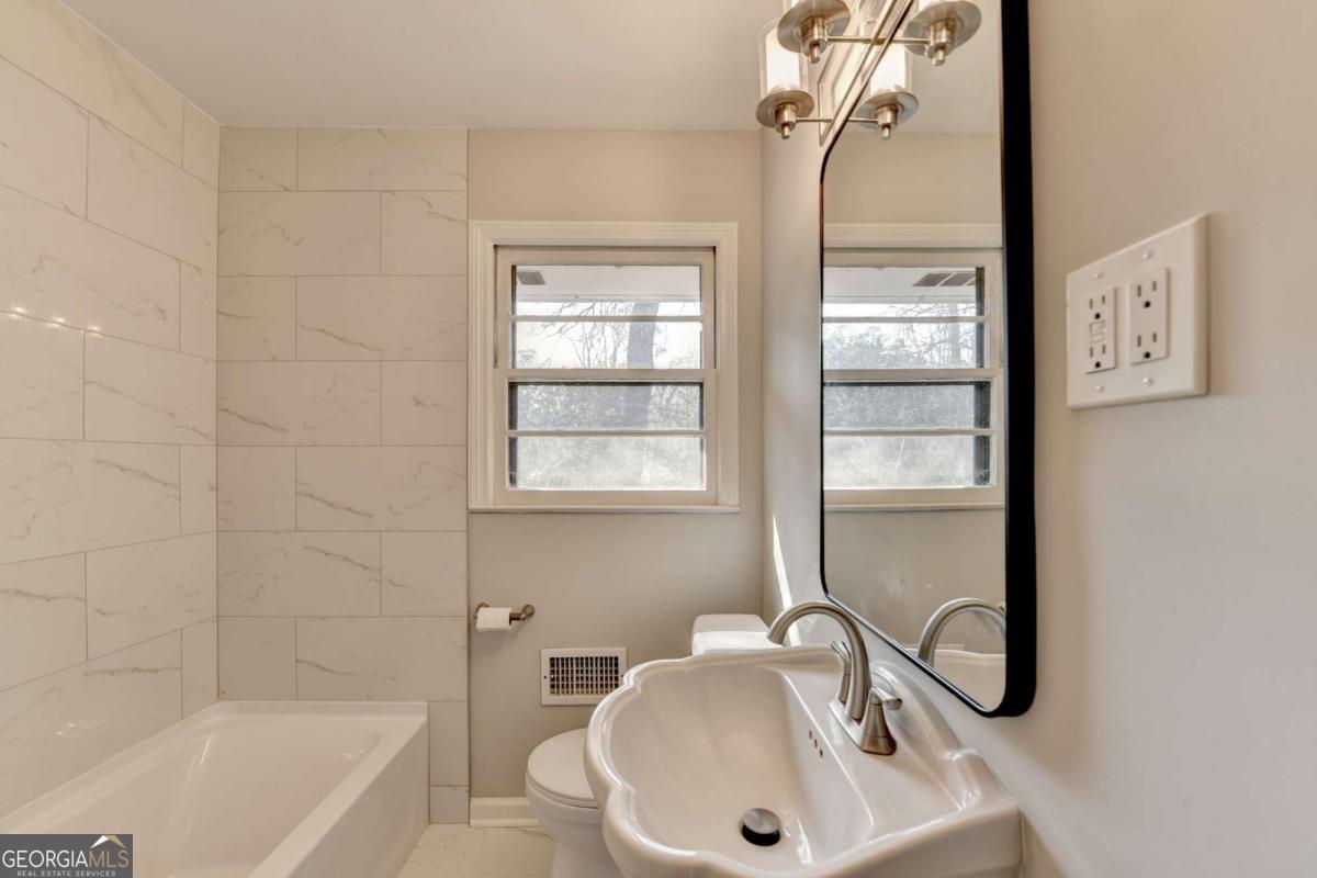 COMPLETELY REMODELED IN DECATUR!! Move-in ready 3 bedrooms with 2 FULL BATHS. Beautifully refinished, original hardwood floors throughout the house. Open family room and separate dining room. Spacious kitchen with all new cabinets, stainless steel appliances, new dishwasher and microwave, granite counters, and new plumbing fixtures. Stackable washer and dryer included. Three large bedrooms with plenty of light and new light fixtures/ceiling fans. Both full bathrooms have been completely renovated with a new tub, new tile shower, new floors, low-flow toilets, and new plumbing fixtures. Unfinished basement has electrical and plumbing and makes for a great workshop or storage. Double width driveway for plenty of parking. Well maintained with a new roof in 2021, water heater in 2022, and HVAC in 2025. Located just minutes from I-285, Emory University, the VA hospital, the CDC, and everything downtown Decatur has to offer. The nearby Lulah Hills town center will include shopping, dining, lodging, and a new Publix. A new PATH Foundation trail will link the area directly to Emory University. Close to Toco Hill shopping and dining. NO HOA!