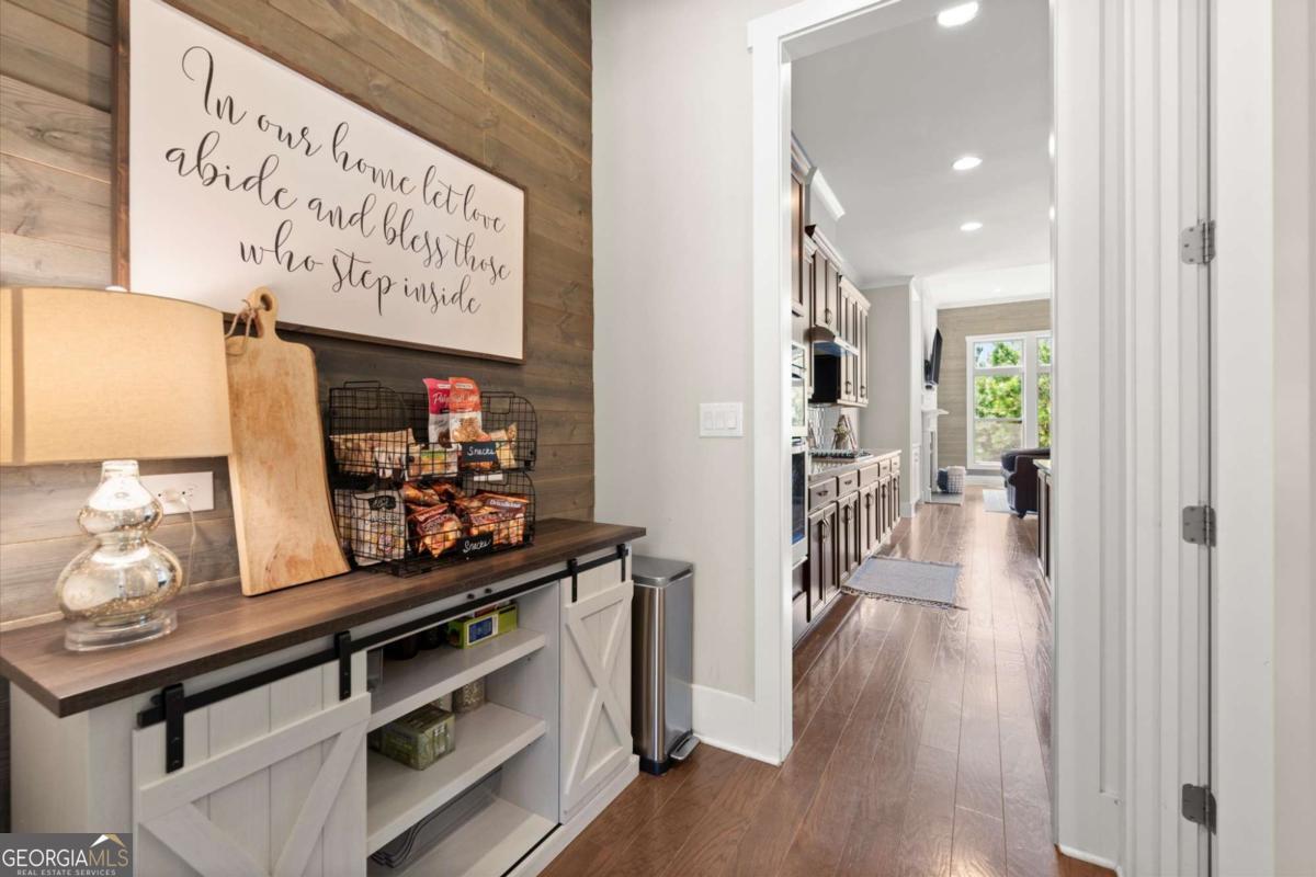 Welcome home to timeless Craftsman charm and modern functionality located in the sought-after Woodmont Golf & Country Club. A welcoming stone porch leads into easy main-level living with a spacious PRIMARY SUITE ON MAIN featuring a spa-inspired bath, oversized walk-in shower, soaking tub, and generous closet space. The gourmet kitchen-complete with stainless appliances, gas cooktop, and expansive island-opens to the fireside family room for effortless everyday living. Enjoy an elegant dining room, dedicated home office(or 4th bedroom option on main level), and a versatile butler's pantry ideal as a coffee bar, snack bar, or additional storage. Step outside to a covered porch and grilling patio overlooking a level, private backyard-perfect for outdoor living or future enhancements...pool ready! Upstairs offers two secondary bedrooms with shared bath and a large loft/flex space ideal for a media room, teen suite, fitness area, or second living space. The full, unfinished terrace level provides endless potential for expansion-home theater, guest suite, workshop, or more. Enjoy Woodmont's resort-style amenities including golf, tennis, swimming, clubhouse dining, and social events. A John Weiland-built beauty offering charm, space, and opportunity in a premier community.