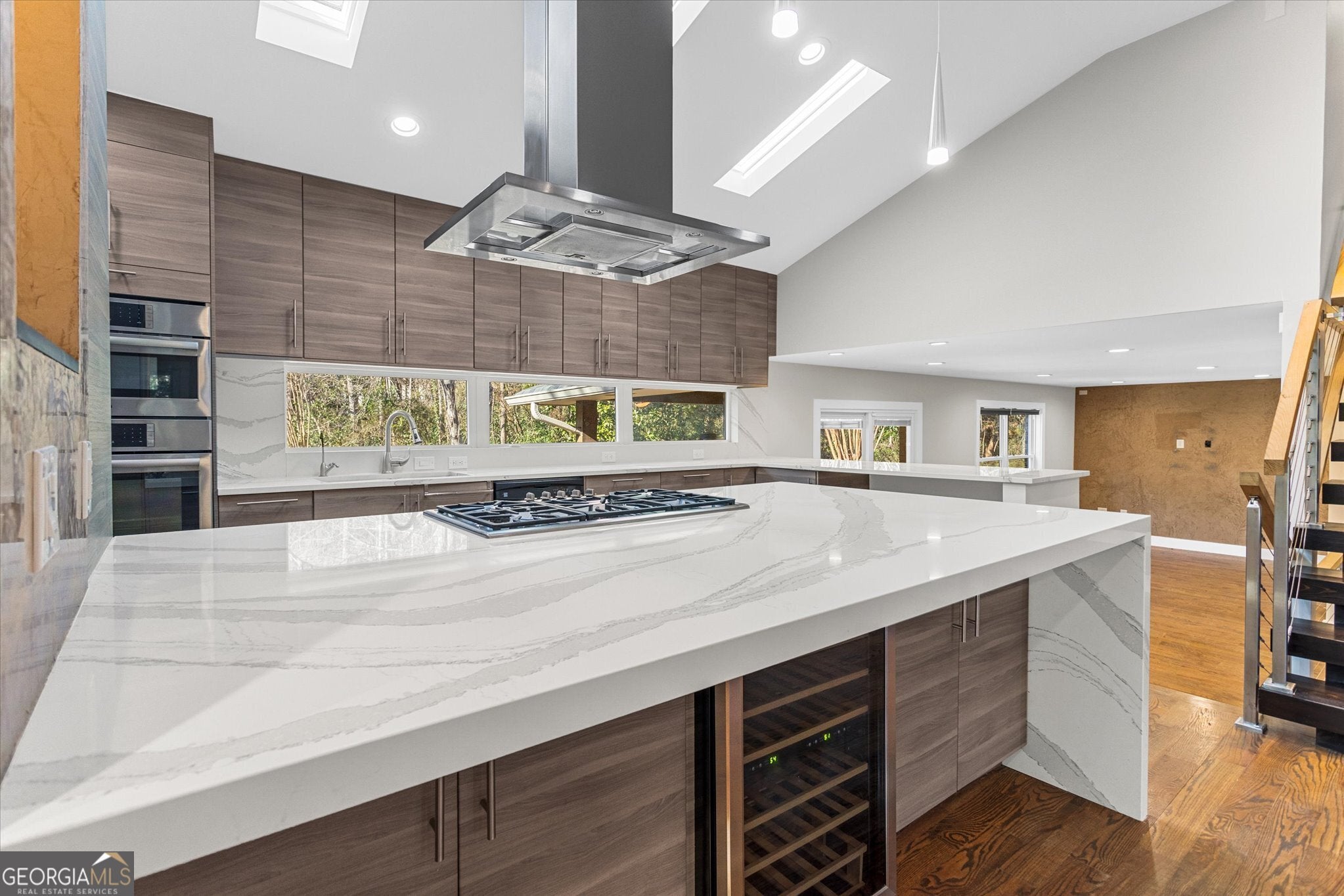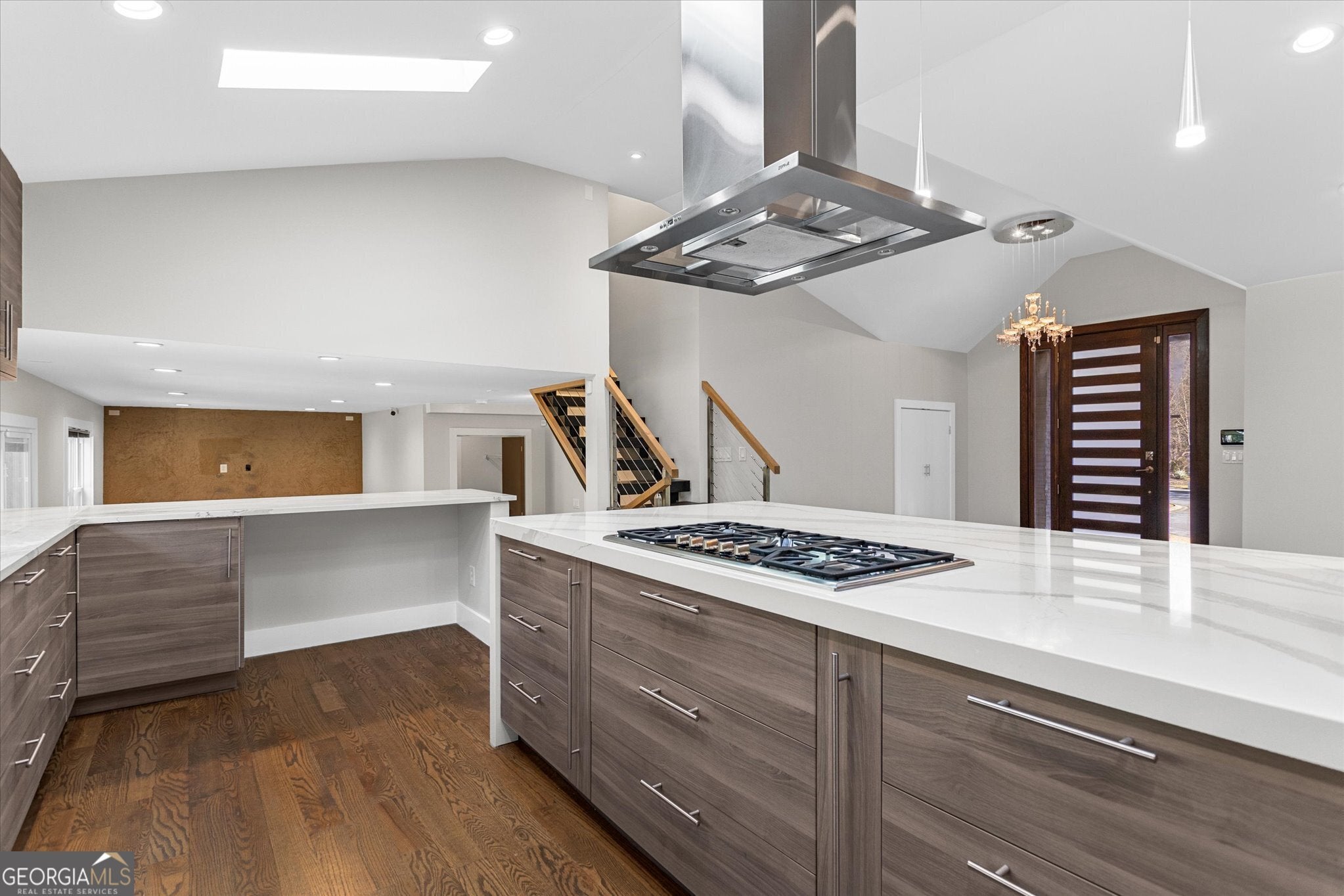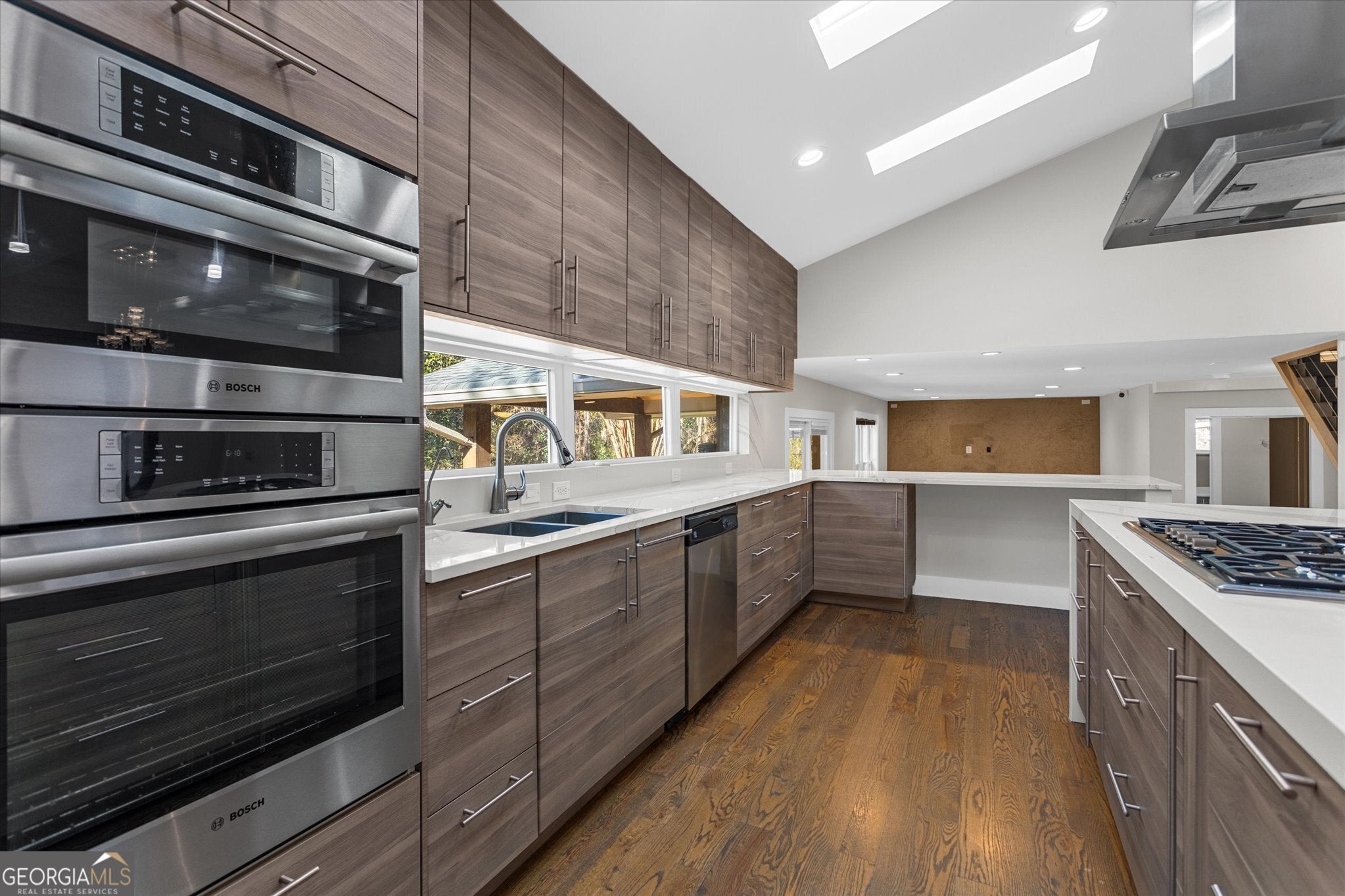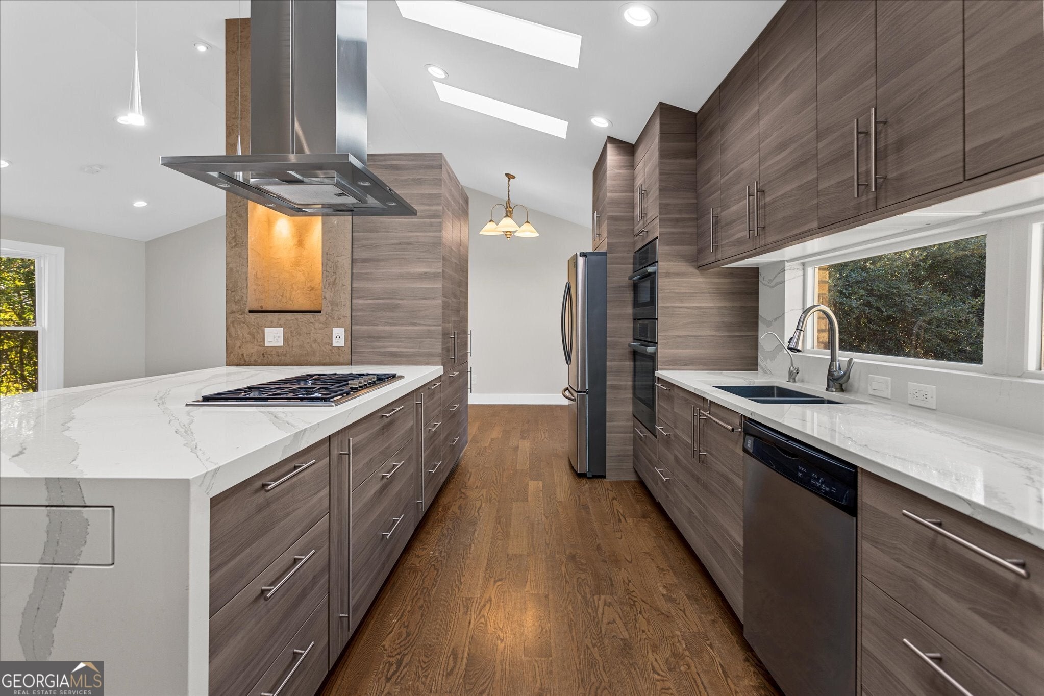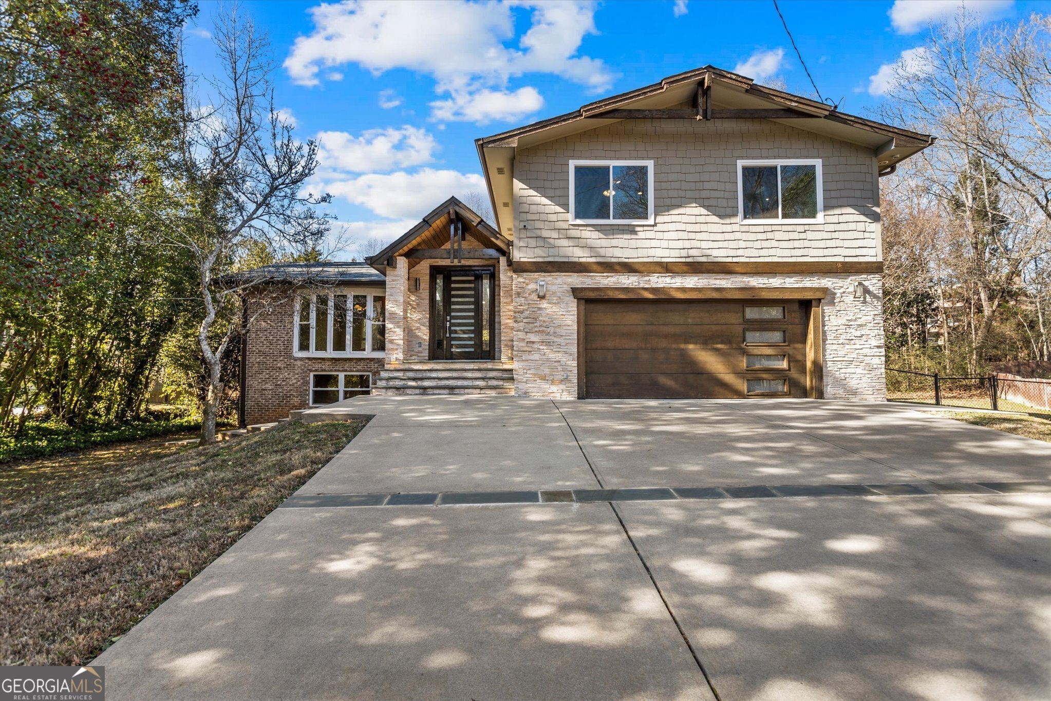 Beautifully renovated luxury home located on a quiet cul-de-sac in the heart of Dunwoody. This move-in-ready residence backs directly to Georgia State University green space and is within walking distance to Brook Run Park, offering a rare combination of privacy, natural surroundings, and a prime location. Thoughtfully designed to support modern living, the home features 5bed/4bath, providing a flexible layout ideal for multi-generational living or work-from-home needs. The open-concept floor plan flows seamlessly through the main living areas, creating an inviting environment for both everyday living and entertaining. The heart of the home is a custom chef's kitchen, filled with natural light from skylights and designed with both functionality and style in mind. It features designer cabinetry, stainless steel appliances, generous storage, and a cooktop with a statement range hood. The kitchen's oversized island includes a custom pull-out countertop extension, enhancing functionality and versatility for everyday living and entertaining. Living areas showcase vaulted ceilings, hardwood floors throughout, recessed lighting, and a striking open staircase, further enhancing the home's modern architectural appeal and sense of openness. The primary suite functions as a peaceful retreat, offering a skylight with blackout blinds and a thoughtfully designed spa-style bathroom with dual shower heads, a rain shower, and an infrared therapy jacuzzi. Additional highlights include a brand-new driveway with extra parking, an insulated two-car garage with a custom door, and ample storage throughout. Step outside to an expansive, level backyard surrounded by mature trees, providing a private and tranquil outdoor setting ideal for gatherings, relaxation, or everyday enjoyment. Conveniently located near Perimeter Mall, Dunwoody Village, I-285, GA 400, hospitals, shopping, dining, and places of worship, this home offers the perfect balance of modern design, comfort, and location. A home where design, functionality, and nature come together seamlessly-crafted for elevated living.