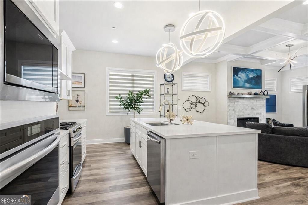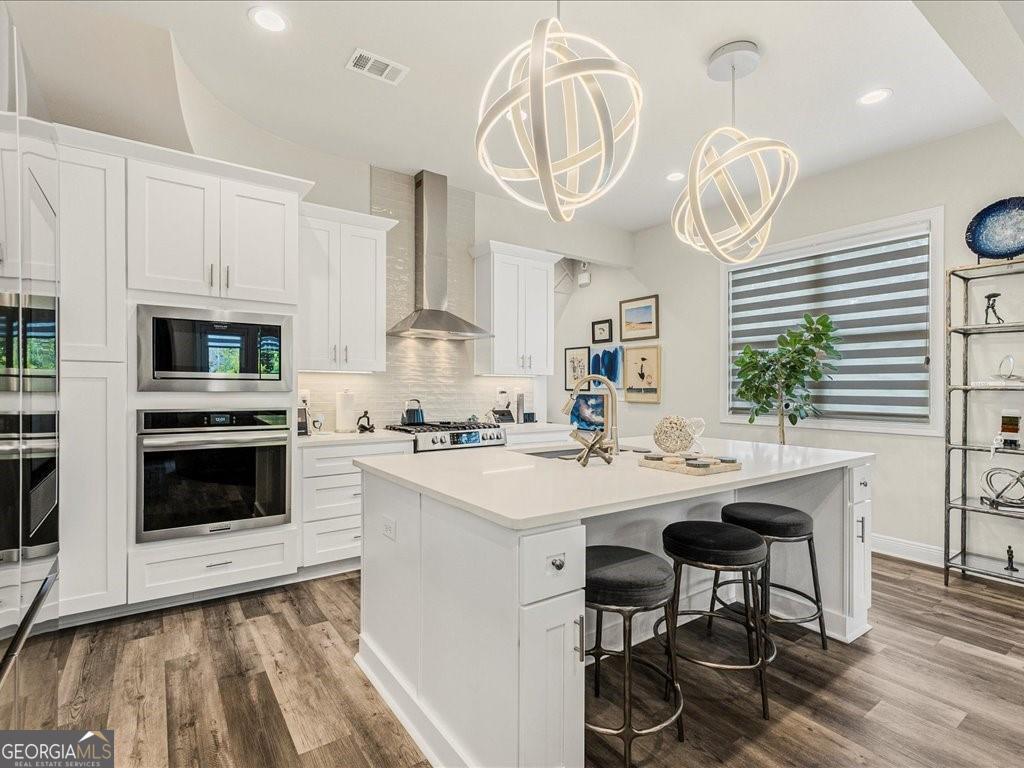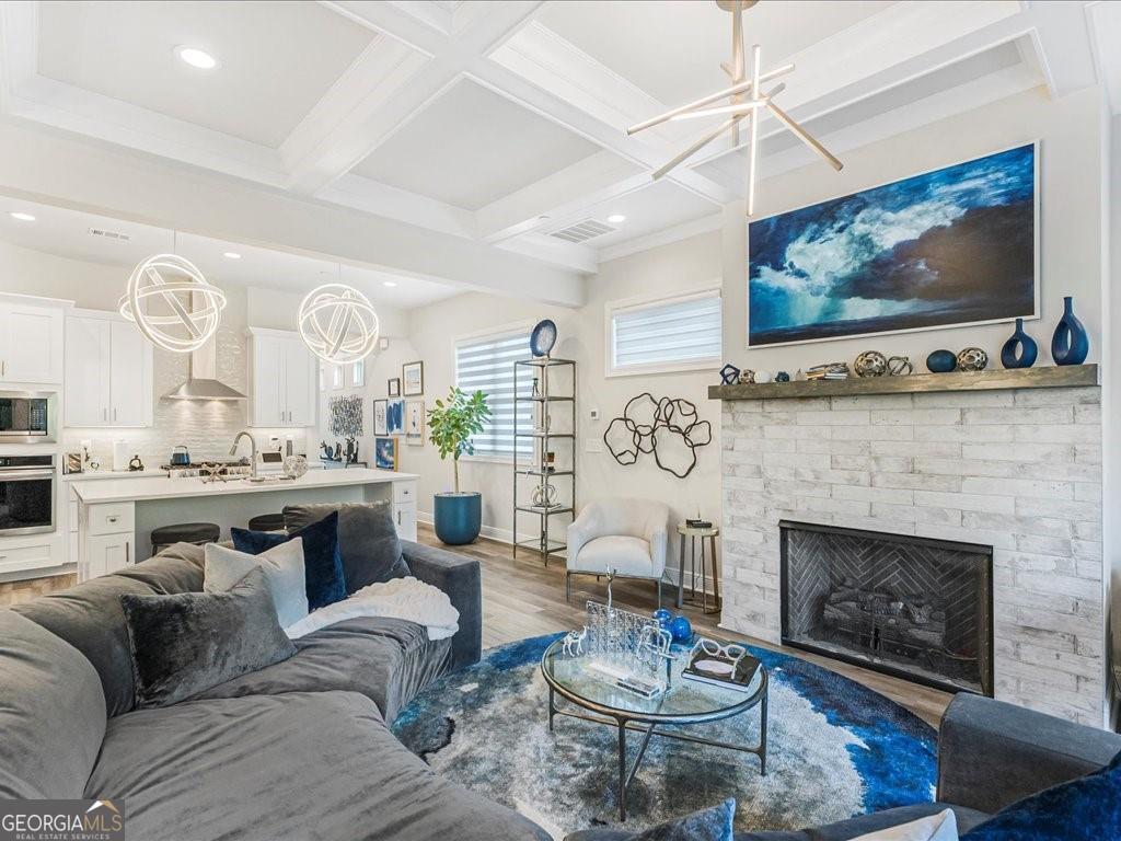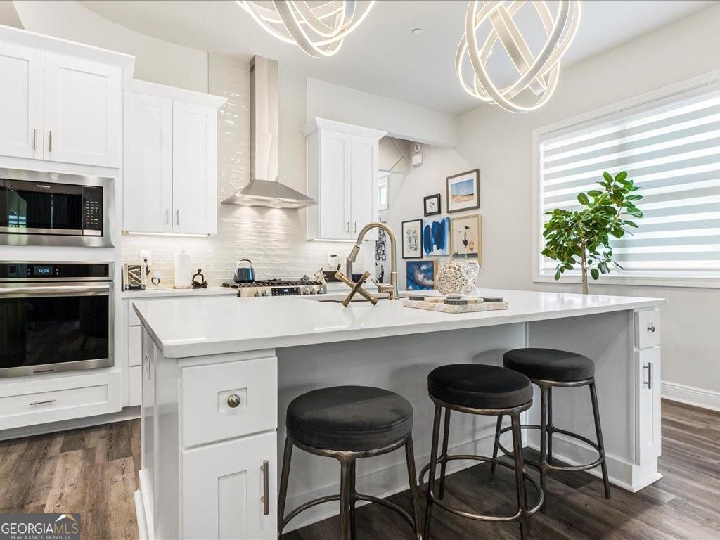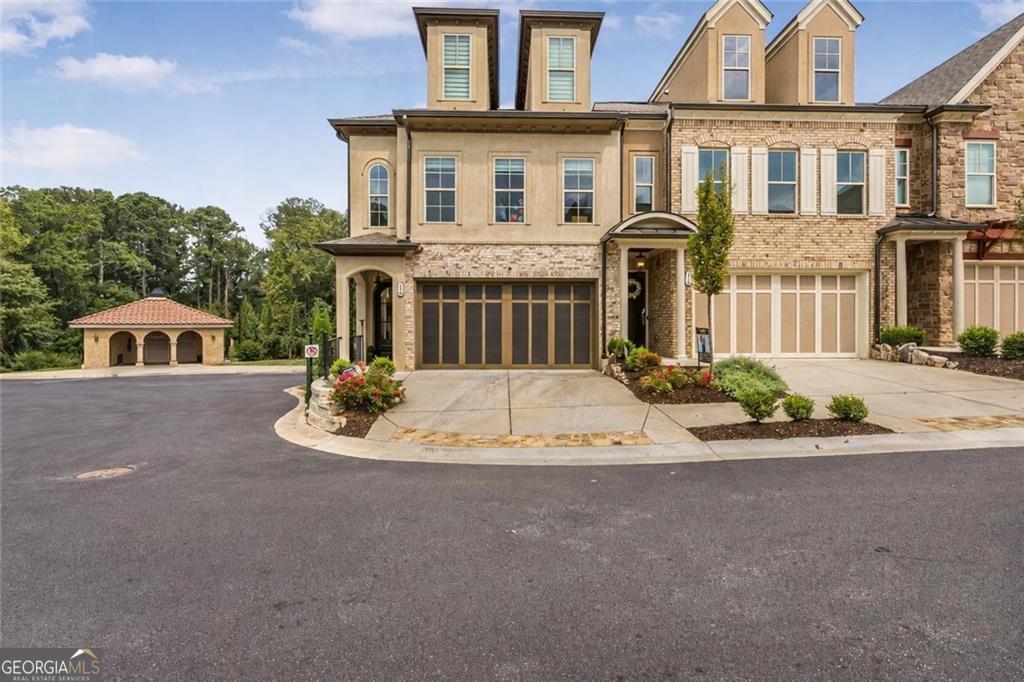 Welcome to this stunning, 2022 built end unit townhome located in the gated community of Tuscany Village, where modern design, comfort, and convenience come together seamlessly. This thoughtfully designed home features 3 spacious bedrooms, 2.5 bathrooms, and a bright, open concept layout that flows effortlessly from the oversized island kitchen into the dining and living areas. The kitchen is a true centerpiece, equipped with a gas cooktop and vent hood, a wall-mounted microwave combo, perfect for both everyday living and entertaining. Upstairs, a curved staircase leads to a cozy loft-style flex space, ideal for a home office, media room, or reading nook. The upper level also includes a large walk-in laundry room with built-in cabinetry, as well as a generous owner's suite featuring dual walk-in closets and a spa-like bath with a freestanding soaking tub, dual vanities, and a walk-in tiled shower. Additional highlights include custom accent walls and detailed millwork throughout, a renovated guest bedroom, and a secondary bedroom fitted with California Closets perfect for someone with a large wardrobe, though easily converted back depending on the buyer's needs. As an end unit, this home also offers added privacy, a fenced and turfed backyard for low maintenance outdoor enjoyment, and convenient proximity to guest parking. Residents will love the low maintenance lifestyle provided by the beautifully landscaped, HOA maintained grounds. Spend time at the dog park, play a game of bocce, relax at the community pavilion, or head out to one of the 69 eateries within a 5 mile radius. Set within the highly rated River Ridge High School district and surrounded by everyday conveniences, this home is ideal to lock and leave, reside and raise, rest and relax, or connect and commute. Tuscany Village offers the perfect balance of accessibility and tranquility, with quick access to Downtown Woodstock, The Outlet Shoppes, major grocers, and local dining favorites. Commuters will appreciate the easy routes to Hwy 575, Peach Pass lanes, and Hwy 400. This is a rare opportunity to own a highly upgraded, move in ready home in one of Woodstock's most desirable gated communities.