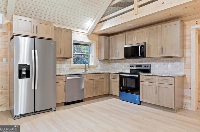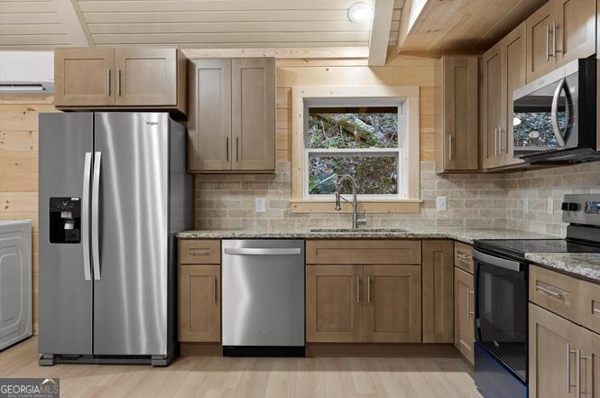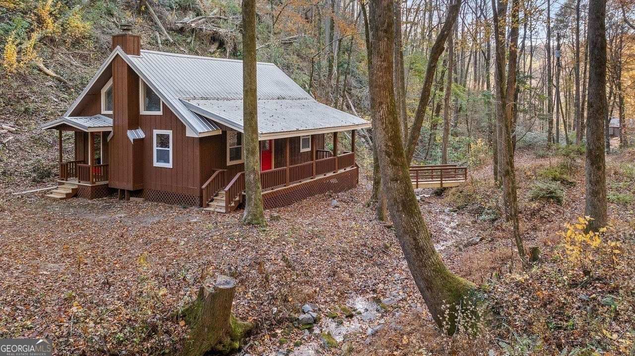 When you're ready for a true escape, take a short drive from Ellijay or Eton into the mountains and discover this secluded cabin nestled among towering ridges and beautiful mountain streams. The gated entrance--watched over by a few-full-time residents--provides peace of mind. Your first impression begins as you cross a picture-perfect stream and follow the gravel drive up to the cabin. The large covered front porch overlooks a picturesque creek and forest views. Inside, you'll find soaring ceilings and expansive windows that flood the space with natural light. The main level includes two bedrooms and a full bath, while the loft has an additional full bath and space for two more beds. Whether you're seeking a primary home, a mountain getaway, or a potential vacation rental, this property fits the bill. It's also conveniently located near thousands of acres of public hunting land and Pinhoti Trails. Major remodel in 2025 included electrical, plumbing, insulation, HVAC, paint, flooring, doors and windows. This property has two separate parcels, both are included. Too much to list! Don't miss the opportunity to own a one-of-a-kind cabin in the woods - truly a special find!