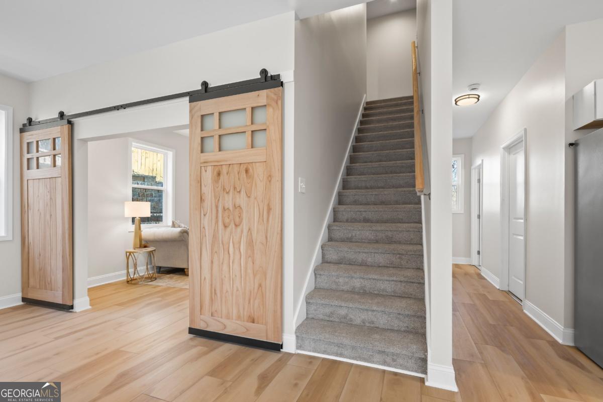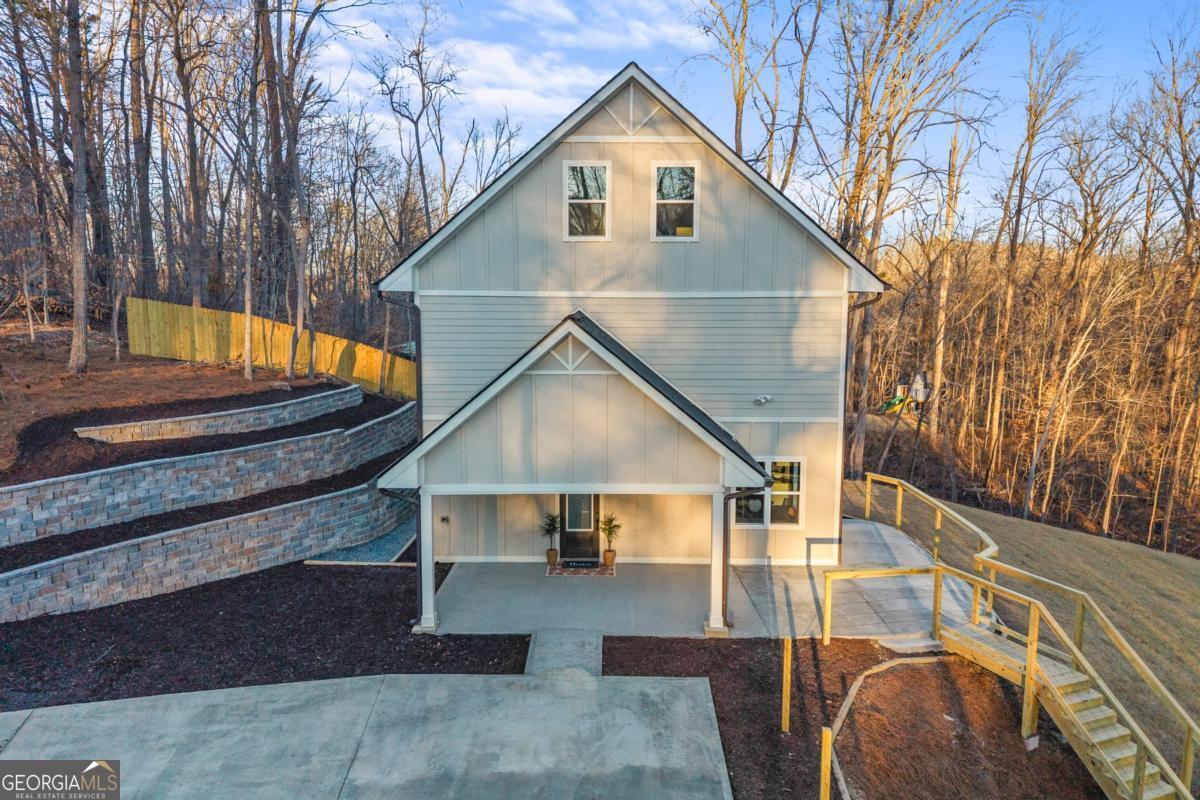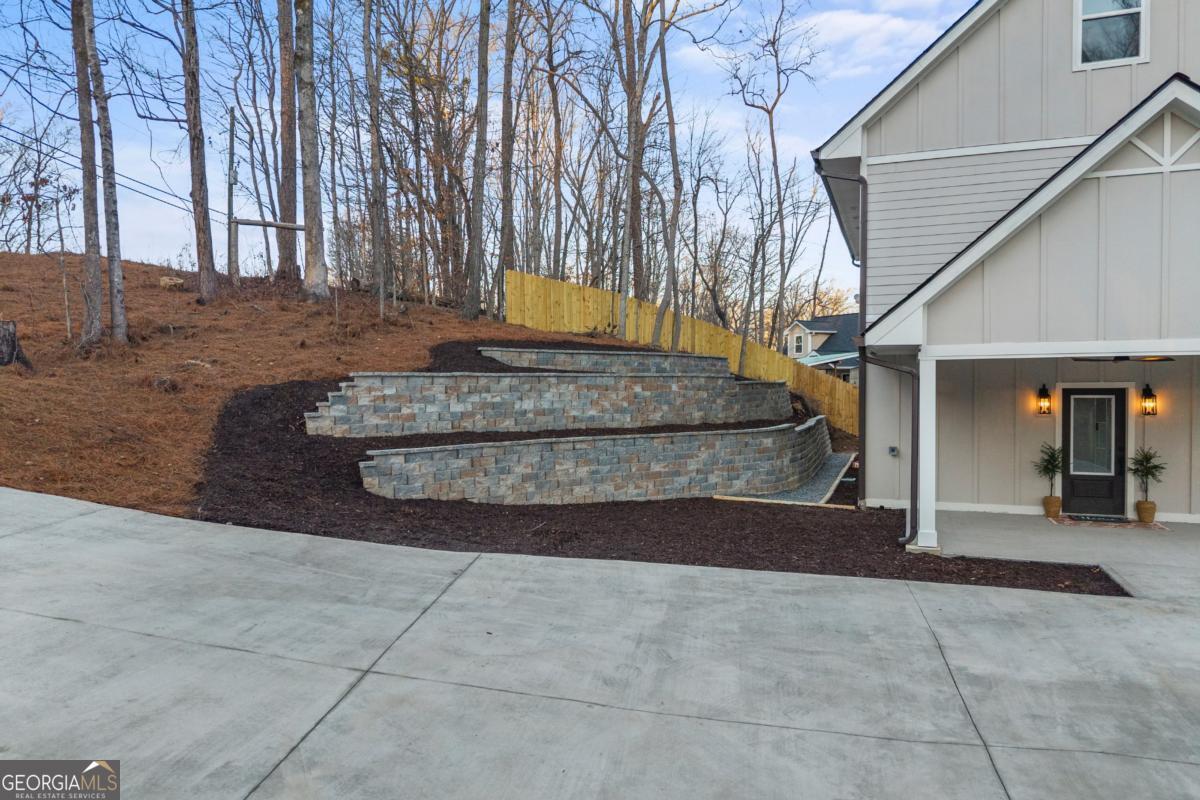 This newly built 5-bedroom, 3.5-bath energy-efficient home offers modern design, comfort, and generous living space in a peaceful rural setting on over 1.5 acres. The main level features an inviting open-concept floor plan with durable LVP flooring, granite countertops, a spacious undermount sink, under-cabinet lighting, and abundant room for both everyday living and entertaining. Upstairs, the second level includes three bedrooms, including the spacious primary suite with a walk-in closet and dual vanity, along with a flexible home office perfect for remote work or study. The third level adds two additional bedrooms-ideal for guests, a second office, or a bonus space-complete with a charming reading nook. Bedrooms feature soft carpeting for added comfort. Step outside to enjoy the covered front porch, an ideal spot to relax and take in the peaceful surroundings. The property also features a large backyard that opens to a tranquil wooded backdrop, offering privacy and scenic views throughout the year. The expansive lawn provides plenty of space for outdoor entertaining, recreation, or future outdoor enhancements. Enhancing both the functionality and curb appeal of the property is a beautifully crafted tiered stone retaining wall system, thoughtfully designed to complement the natural landscape while maximizing the usability of the sloped lot. Enjoy the serenity of country living with the convenience of nearby shopping, dining, and everyday amenities just a short drive away.