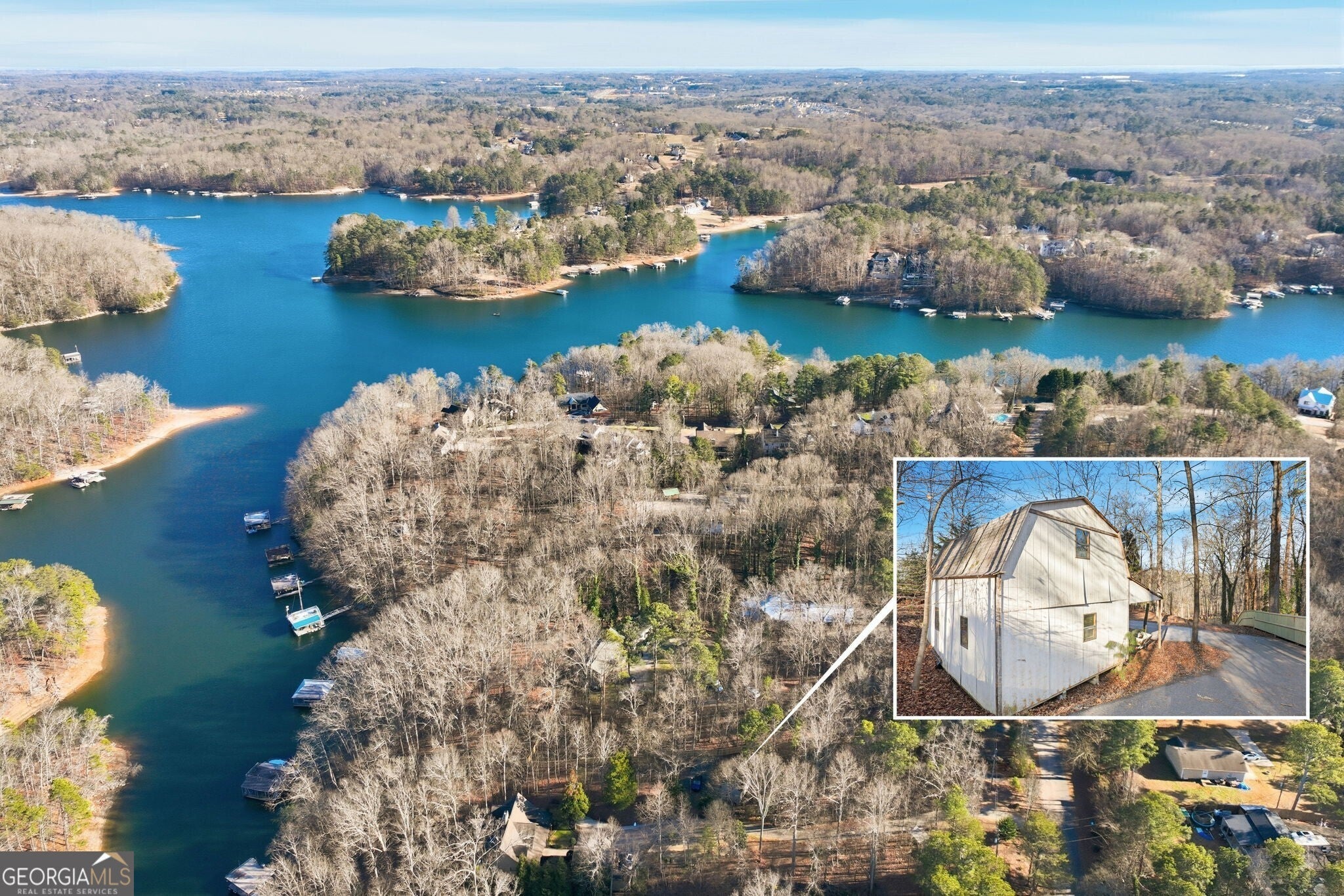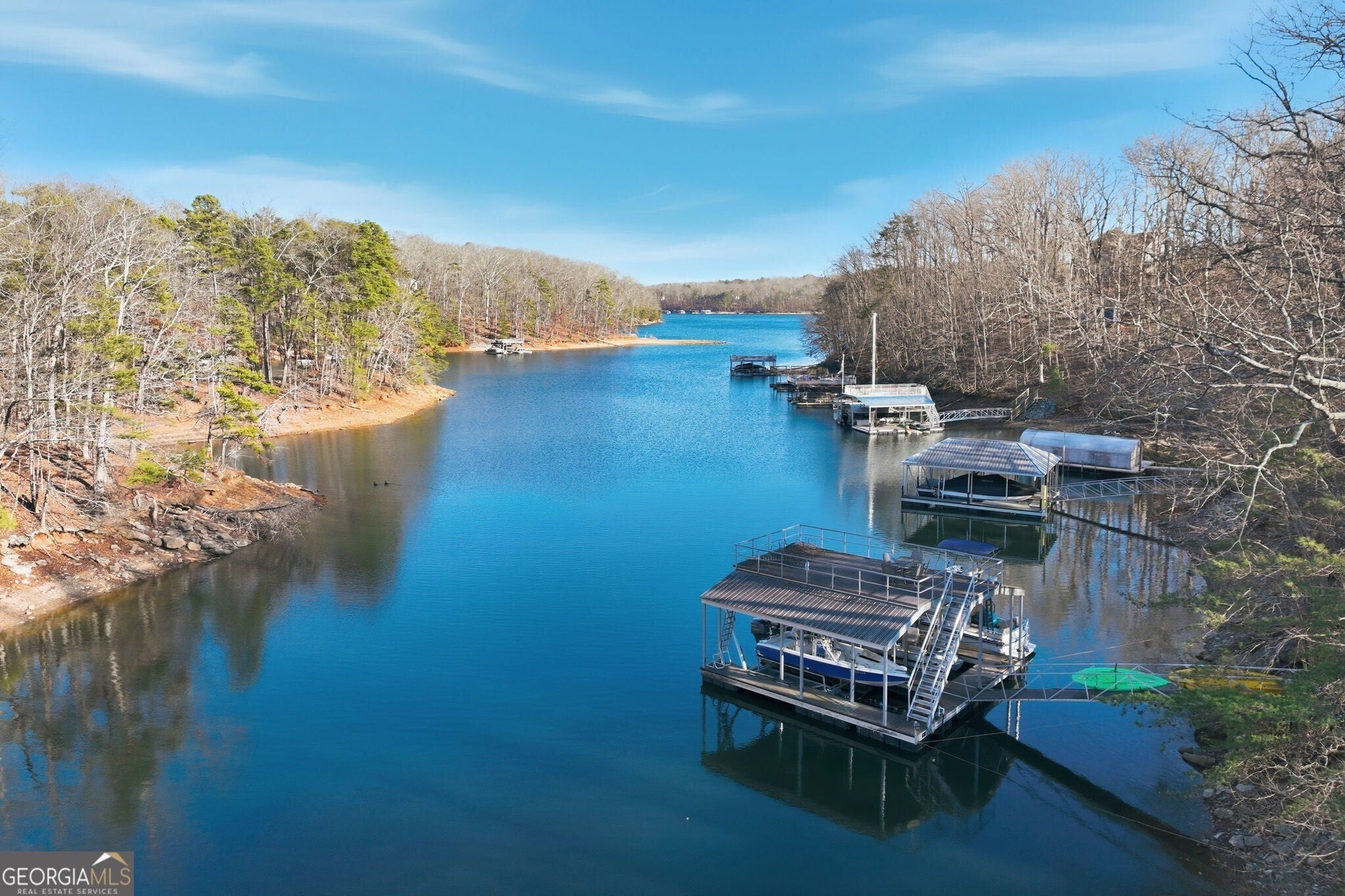 Exceptional lakefront lot offering deep water access and a 32x32 double-slip dock, complete with a spacious party deck - perfect for entertaining and enjoying panoramic lake views. The property features a long paved driveway providing easy access, along with a two-story utility shed ideal for storage, lake gear or future flexibility. With a prime deep-water dock location (30 ft at front)this lot is well-suited for year round boating and waterfront living. An outstanding opportunity to build your dream lake home or enjoy the property as-is, in a highly desirable lake setting.