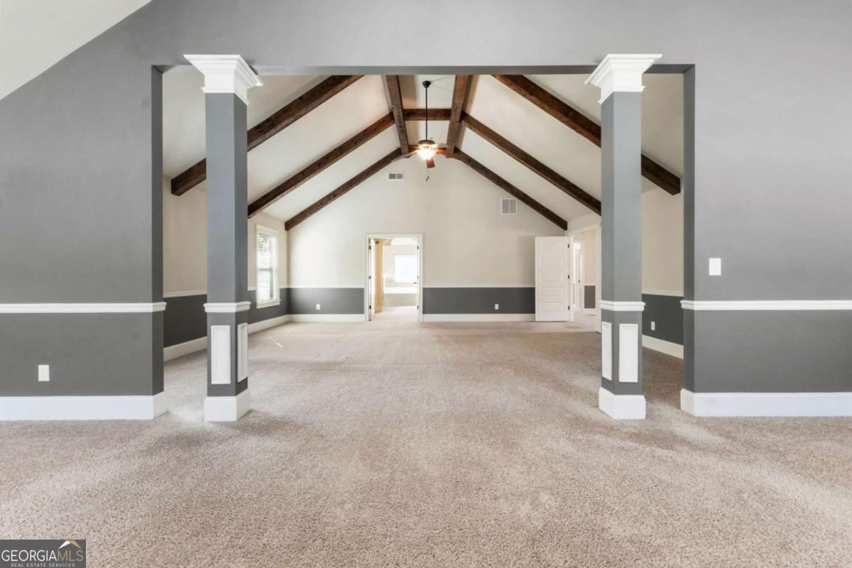 - Interior FeaturesBeamed Ceilings, Double Vanity, Pulldown Attic Stairs, Tray Ceiling(s), Vaulted Ceiling(s), Walk-In Closet(s)