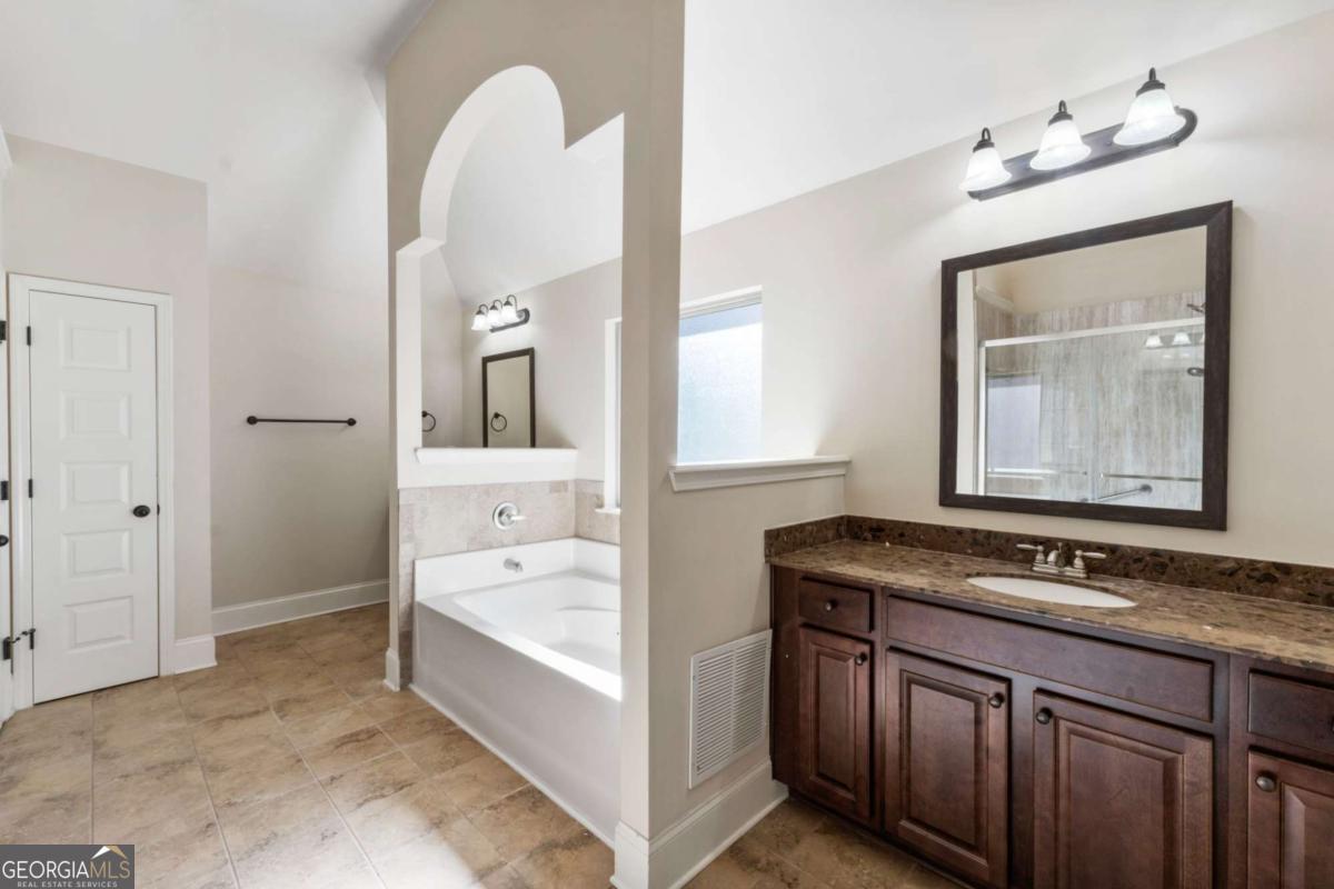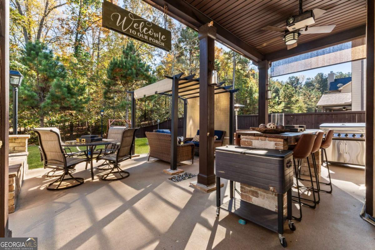 There is truly No Place Like HOME! Located in the sought after Archer HS School District in Gwinnett County, this RARE GEM is nestled within in the community and offers nothing less than Refined LIVING, Unmatched LUXURY, an Amazing LOCATION, and a LIFESTYLE awaiting YOU to Capture Great Memories for years to come! The Warm Exterior welcomes you with blended subtle details like the stately bricked front with contrasting details over the windows and doors. And the Rocking chair porch flanked with painted wood columns and bottom bricked bases to add a touch of country charm and craftsman flare! Soothing Outdoor Water Features line the front walkway of the Professionally Landscaped Yard and the Solar Installed Post and Lighting guide your family and friends at night. This meticulously maintained home is MOVE-IN READY and its beauty Ravishes INSIDE & OUT! This Expansive layout doesn't lack space, and no detail was forgotten! Greeted with the Elegance of the Hardwood Flooring, the Large Open Foyer is Breathtaking with Roaring 20-Foot Ceilings as it centers the Formal Living and Dining Rooms. 10-Foot Ceilings accented by Arched Entryways and trimmed details throughout! The Dining Room upgraded with Coffered-Ceilings and Bumped-out Bay Window Wall provides more Natural Light into the home as well as additional space for larger furnishings for ample seating for those special Holidays and gatherings! Private First Floor Guest/In-Law Suite with Full bathroom features a Custom Stone Wall Feature w/mounted TV that can easily transition into a Home Office. Enjoy the Generous amount of Space in the Family Room complimented by the Elegance of the Coffered Ceilings and Stoned Fireplace. The Gourmet Kitchen will bring out The Chef in You with its Extended Cabinetry for extra storage and Unlimited Granite Countertop Space including both a KITCHEN BAR for casual dining with your bar stools and a Large Island perfect for meal prepping! S/S Appliances include an attached microwave, double oven, dishwasher, and included refrigerator. Custom Pantry with upgraded shelving & Built-in Kitchen Desk. Enjoy your morning coffee at the Bayed Breakfast area offering the perfect spot to take in the outdoor view to your Private Oasis! Upgraded 6" Recessed Can Lighting along with the dual pendant Lighting in the Kitchen adds to the natural lighting from the rear of the home. Upstairs Loft provides versatility with a Custom Wall featuring floating shelves and TV overlooking the Foyer. Great for an Office, a Reading Nook, a Play Space, a Home Gym, or a just a Chilled Movie Spot! Bring YOUR VISION to Life! Spacious Secondary Bedrooms. 2 with shared bathroom and 1 additional with private en-suite. Walk-in closets! Laundry room upstairs. Enjoy a MASSIVE OWNER'S SUITE, that leaves nothing to be desired! Enhanced with Custom Paint throughout, Upgraded Exposed Wood Beam Vaulted Ceilings and trimmed wall/column details, you can create the lifestyle you have always wanted! Bundle up in the cozy sitting area with the Fireplace upgraded with a Custom Featured TV Wall. Or enjoy the Spa-like bath with dual vanities, Custom Tiled Shower and Soaking Tub. Seller spared no expense with the High-End Custom Closet Systems each privately tucked away behind their own Barn Door! And Last but not least, the AMAZING FENCED BACKYARD OASIS! SO BEAUTIFUL, YOU HAVE TO SEE IT FOR YOURSELF! There is nothing else like it in the area! Get away from the Hustle & Bustle of your day and Enjoy Year-Round Relaxation or Entertaining in this MULTI-LEVELED SANCTUARY offering a Covered Bar Area with Privacy Screens, Movie Projector & Screen, Multiple Custom Patio Areas for Large Gatherings, Play Space, Heating Lamps and Custom Lighting, Custom Walkways, Firepit and so much more!! This home combines Elegance with Peaceful Southern Living! It's a Lifestyle of its Own!