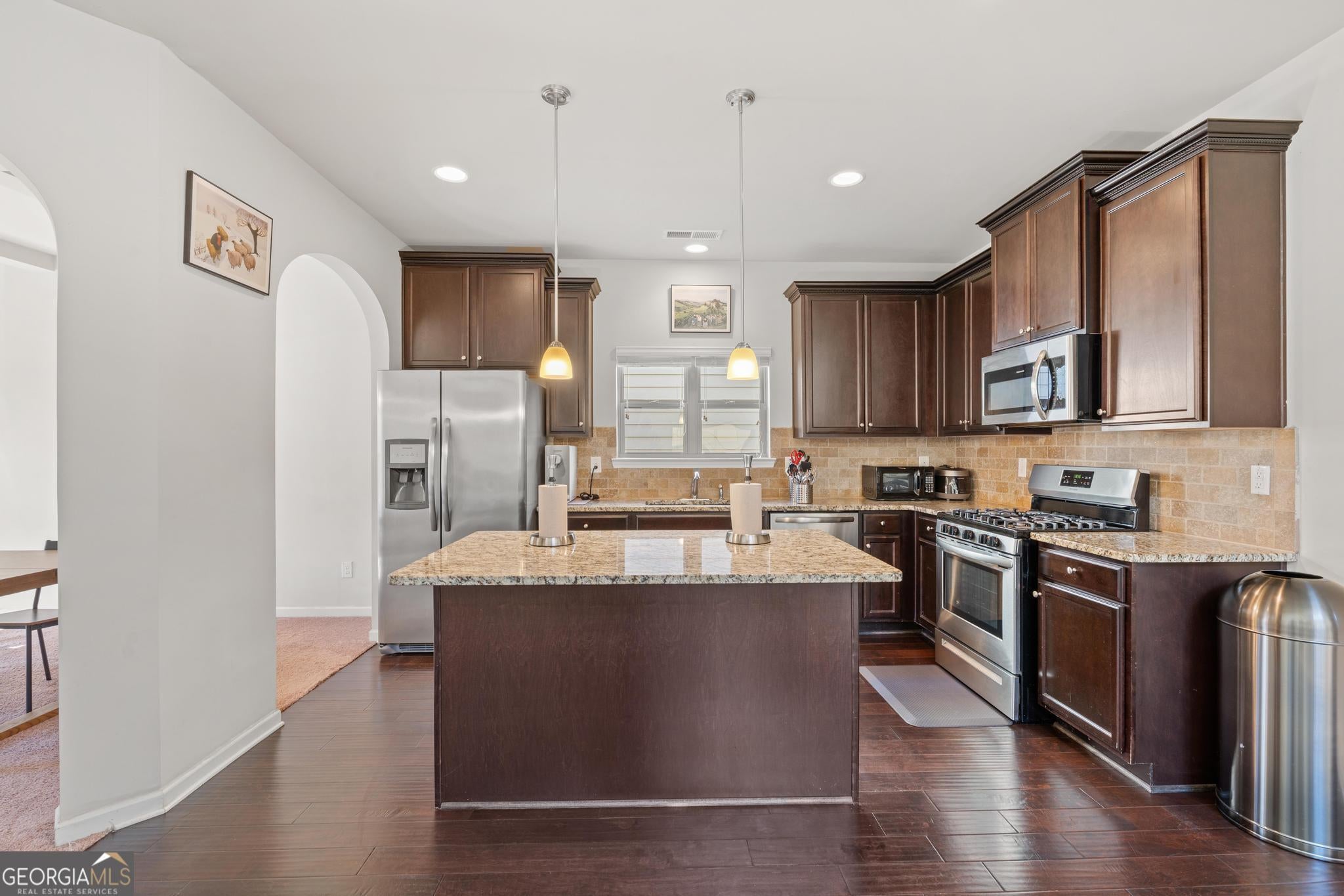 - AppliancesDishwasher, Oven/Range (Combo), Refrigerator, Stainless Steel Appliance(s)