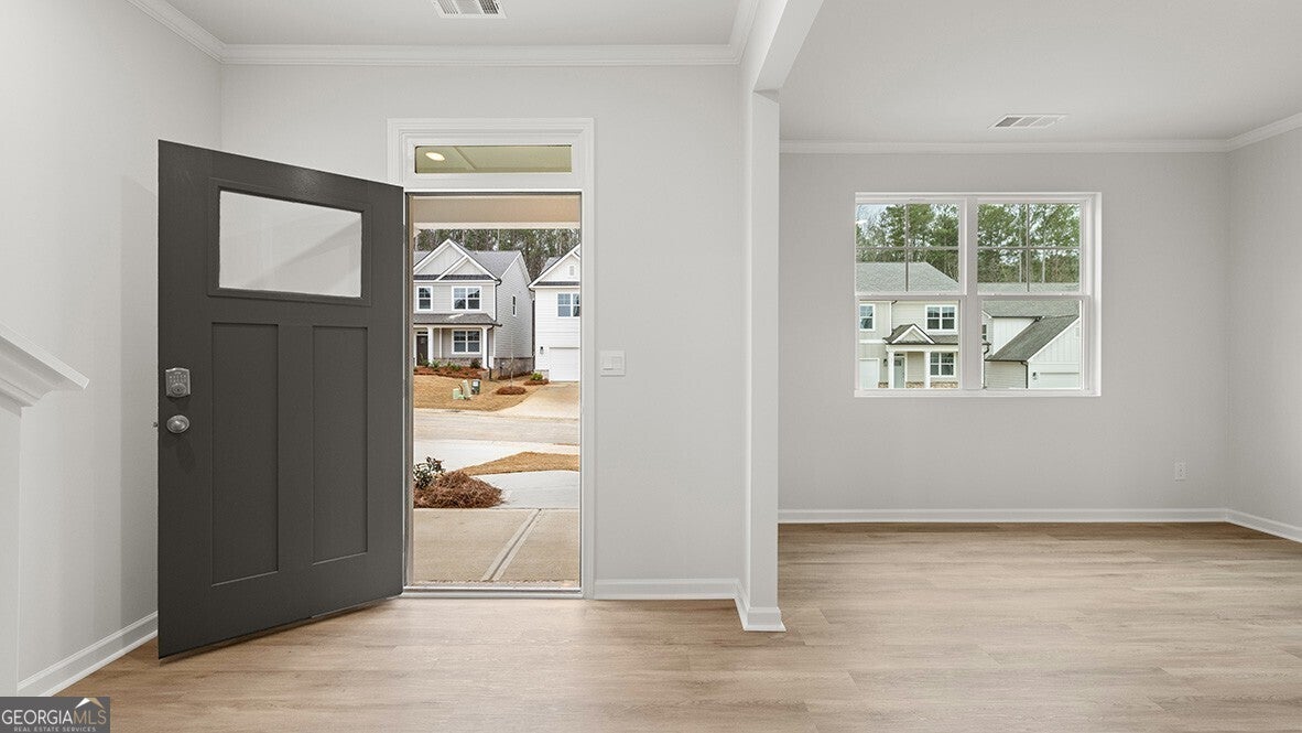 Welcome to 540 Hampton Terrace, featuring the Halton floorplan. The 3,209 sq.ft. Halton plan is one of the two-story home offerings in Hamptons at Riverwood, a community in Dallas, GA. Boasting 5 bedrooms and 3 bathrooms, including a spectacular primary suite, there's no question why this is one of our best-selling plans. A spacious foyer leads you into the home, with access to the stairs, a hallway leading into the living room, and an entry to the flex room at the front of the home. Through the flex room you'll enter a hallway with a butler's pantry. The large kitchen is large and flows into the attached dining area and living room. A stainless-steel appliance suite, oversized island, and bountiful counterspace make this kitchen a chef's dream. A bedroom and full bathroom round out the main living area. Upstairs you'll walk directly into an additional living area at the top of the stairs. To one side, you'll find three secondary bedrooms and a bathroom with double vanity and a linen closet. On the other side, the primary suite sprawls from the front of the home to the back, boasting a roomy bedroom with it's own sitting area, two largewalk-in closets, and a primary bathroom with double vanity, separate soaking tub and shower, and a water closet. An ample laundry room rounds out the second level. Does the Halton at 540 Hampton Terrace sound like the perfect fit for you? Then contact us at Hamptons at Riverwood in Dallas, GA and let us give you a tour!