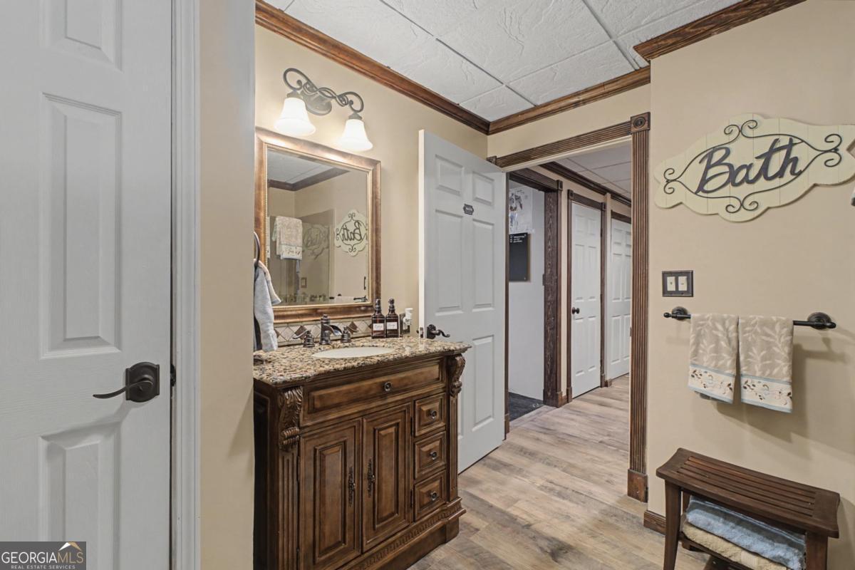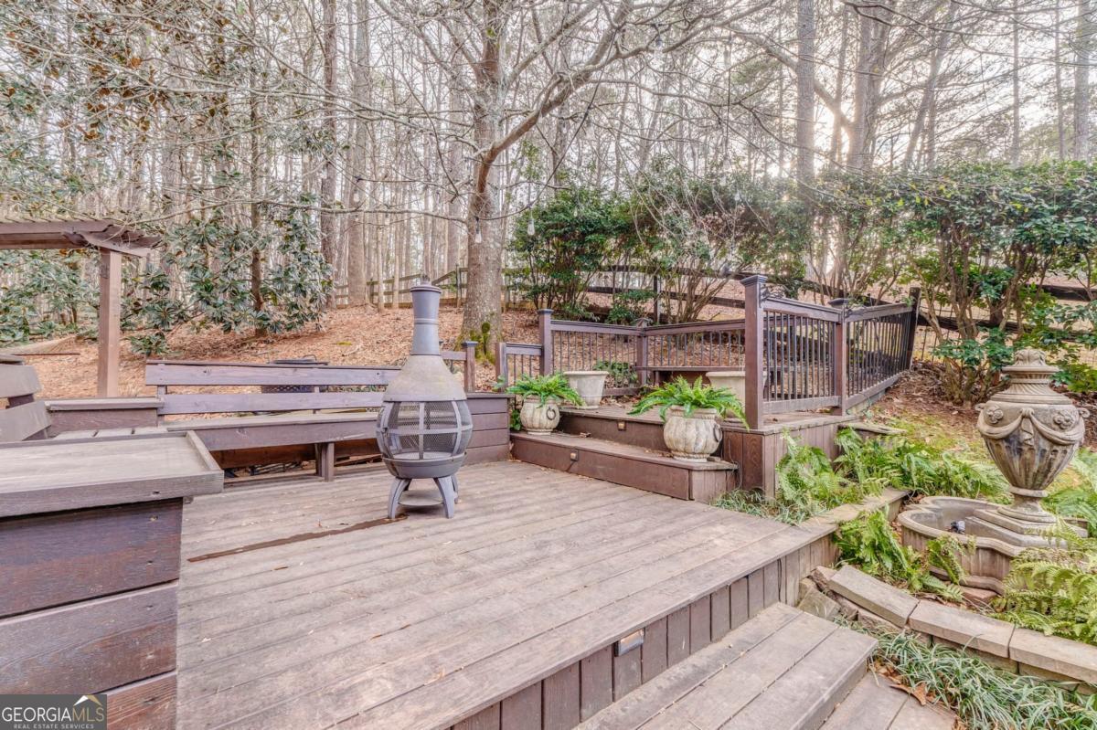 Well-maintained 4-bedroom home located in the East Paulding area within the highly sought-after North Paulding High School District. This home offers a fully finished, handicap-accessible basement featuring a full kitchen, bathroom, and a bonus room that could easily serve as a fourth bedroom-ideal for in-law living or multi-generational use. The main kitchen is rich in detail, showcasing remodeled cabinetry and a thoughtfully designed kitchen island. A spacious laundry room is conveniently located off the kitchen and includes built-in storage for added functionality. The oversized primary suite features a comfortable sitting area and a custom walk-in closet with built-in cabinetry. The primary bathroom is highlighted by beautiful wood accents throughout. Plantation shutters add elegance to the second floor. Major system updates include an upgraded electrical panel installed in 2025, a sump pump added to the basement bathroom in 2023, 6-inch gutters installed in 2022, and a roof, HVAC system, and water heater all approximately 10 years old. Step outside to a large backyard with a true spa-like retreat feel. Enjoy a covered back porch with a custom gazebo complete with lighting and a ceiling fan, multiple outdoor sitting areas, a year-round stream, stunning landscaping, a shed, and a custom dog house. A cedar carport adds both charm and functionality to the driveway.