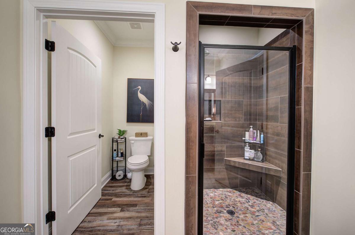 Welcome to easy living in The Encore at Etowah! This custom-built 3 bedroom, 3 bath home with a finished bonus room offers the perfect blend of comfort, style, and low-maintenance living in one of Cartersville's most desirable active adult communities. Inside, you'll find durable LVP flooring throughout, creating a seamless, modern look that's both beautiful and practical. The flexible bonus room is ideal for a home office or hobby space. The primary suite features large windows to maximize views and an amazing zero entry shower. The home offers ample storage and an oversized 2 car garage, making downsizing a breeze! Step outside and unwind on the oversized screened porch overlooking the pond - a peaceful spot for morning coffee or evening relaxation with serene water views. Location is everything, and this home delivers. Enjoy being just minutes from parks, scenic walking trails, restaurants, and shopping, plus convenient access to the Senior Aquatic Center at Sam Smith Park. If you're looking for an active lifestyle with a tranquil setting and thoughtfully designed living space, this Encore at Etowah gem checks every box.