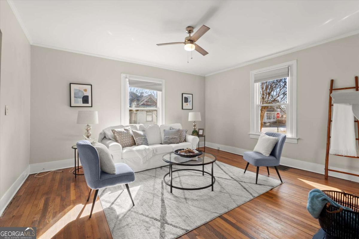 Charming 3BR Home on a Corner Lot in Historic Center Park - Intown Living at Its Best! Welcome to this inviting, recently updated 3-bedroom home located in the heart of East Point's sought-after Center Park Historic District, one of Atlanta's most charming and character-rich intown neighborhoods. Classic appeal meets modern comfort in this well-appointed residence, ideal for those who value location, privacy, and lifestyle. Centrally located, this beautiful home offers incredible curb appeal, with a walk up front porch on a corner lot. Walk in to a beautiful entry way into an open floor plan with dining room and living room, flanked by a beautiful brick fireplace. The kitchen offers stainless steel appliances, granite countertops, and easy access to the laundry/ mudroom. The Primary Bedroom is on the main level and exudes tons of natural lighting, accompanied with a large walk in bathroom complete with dual vanities. Two Guest Bedrooms each offering hardwood flooring and ample space for closet storage. Step outside to an expansive walkout patio overlooking a spacious, private backyard-a rare and highly desirable feature. The fully gated yard offers exceptional privacy and versatility, perfect for entertaining, relaxing, or everyday outdoor living. A private driveway with off-street parking adds convenience and security. Enjoy a vibrant, welcoming neighborhood with Arden Garden just a short distance away, along with nearby parks, restaurants, and local shops. Ideally situated minutes from Downtown Atlanta, Hartsfield-Jackson International Airport, MARTA, and a wide array of dining and shopping options, this home delivers outstanding connectivity while preserving the charm of a historic community. A rare opportunity to enjoy historic intown living with exceptional outdoor space, privacy, and location in one of Atlanta's most desirable neighborhoods.