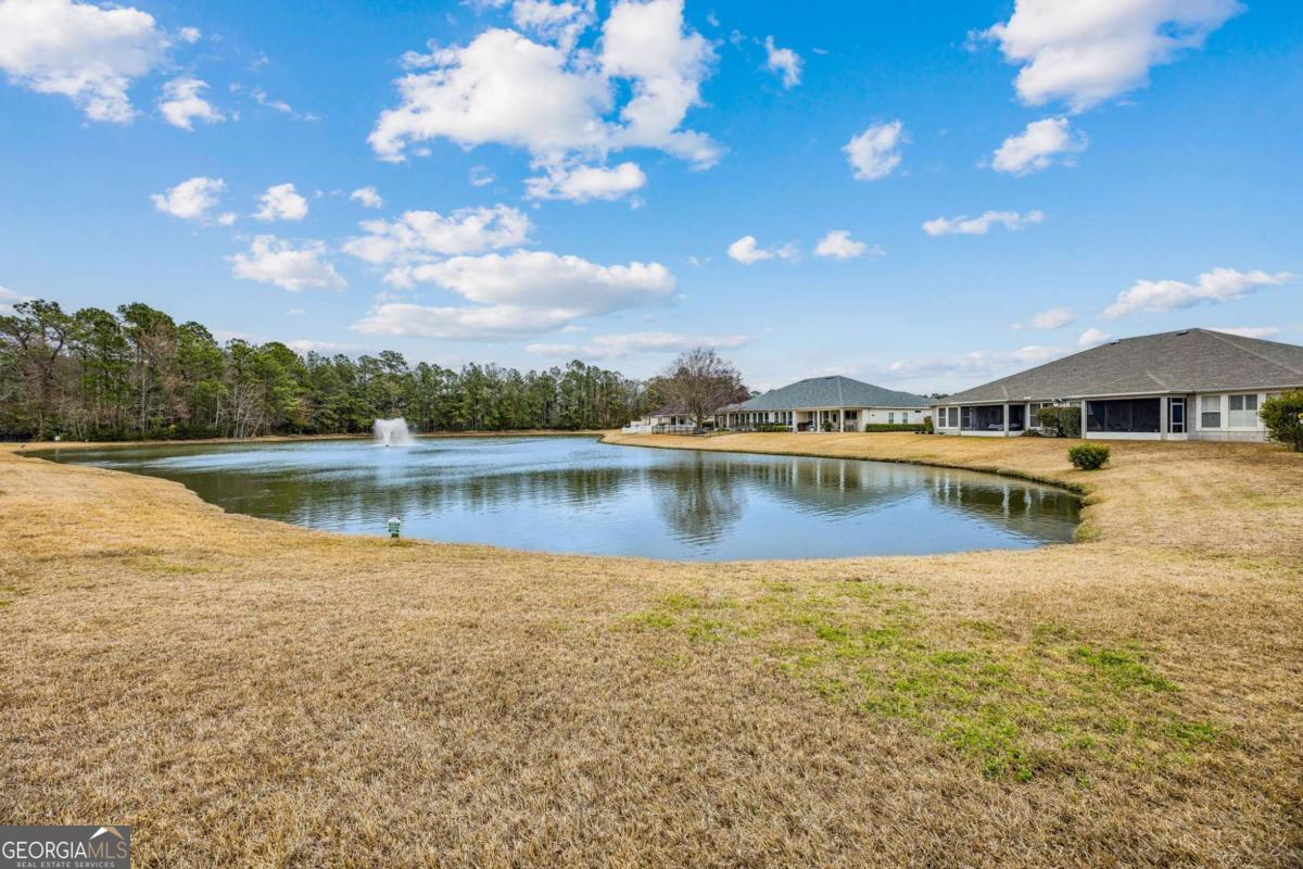 Picture perfect! This single-family-attached home has been well-maintained and modernized. Easy for you to fall in love with. Your HOA includes lawn maintenance, one less thing to worry about! You'll adore the wall paper stylings and painted cabinetry in the kitchen and guest bathroom. The primary suite opens up to a sunroom off the back of the home overlooking a beautiful pond view with tranquil sounds from the fountain, perfect for enjoying your morning coffee. This 3 bedroom, 2 bathroom home is all one level and boasts an open floor plan with large rooms. A good size dining space and the laundry room is conveniently located off the walk-in closet of the master suite. Enjoy the walk-in shower, soaking tub and double vanity.