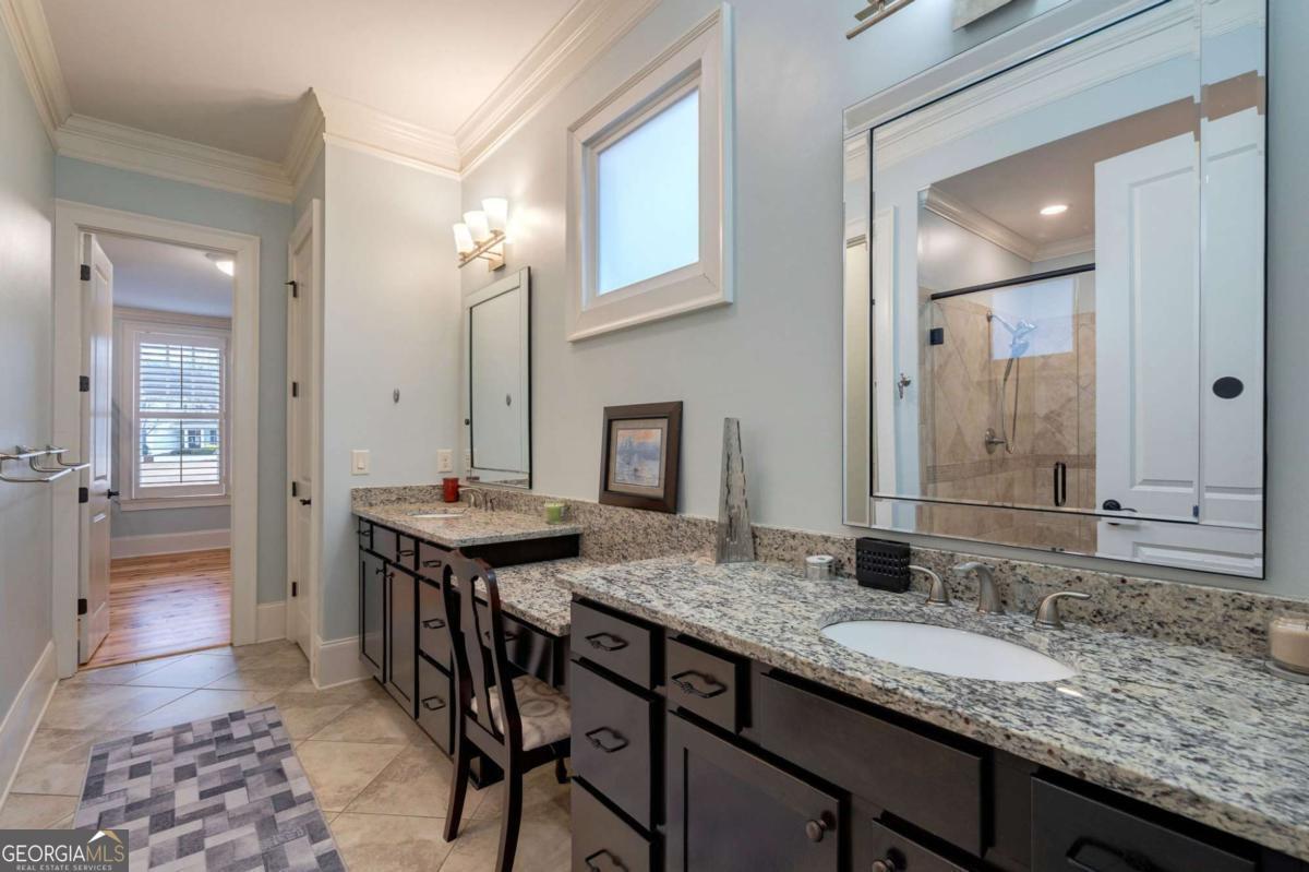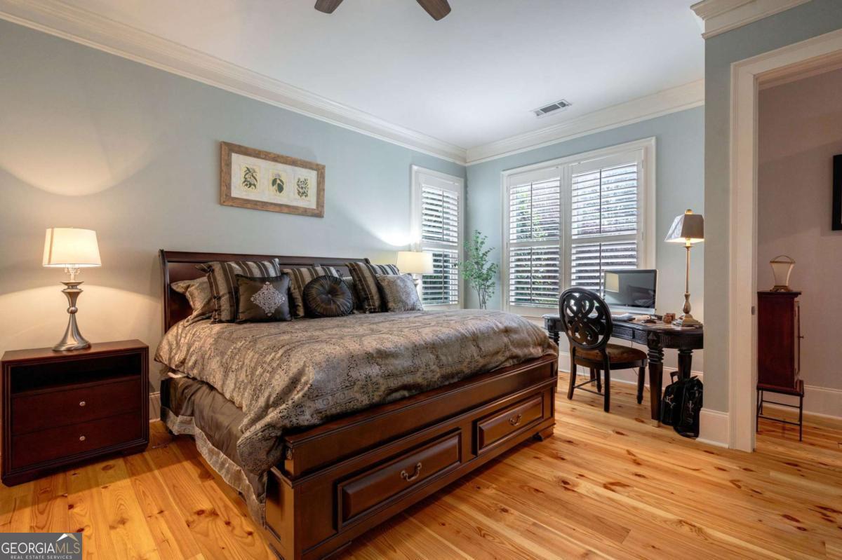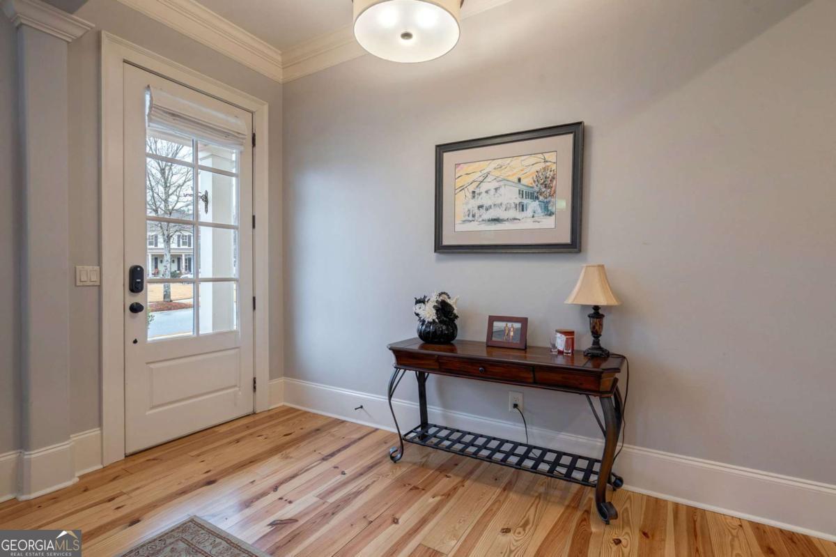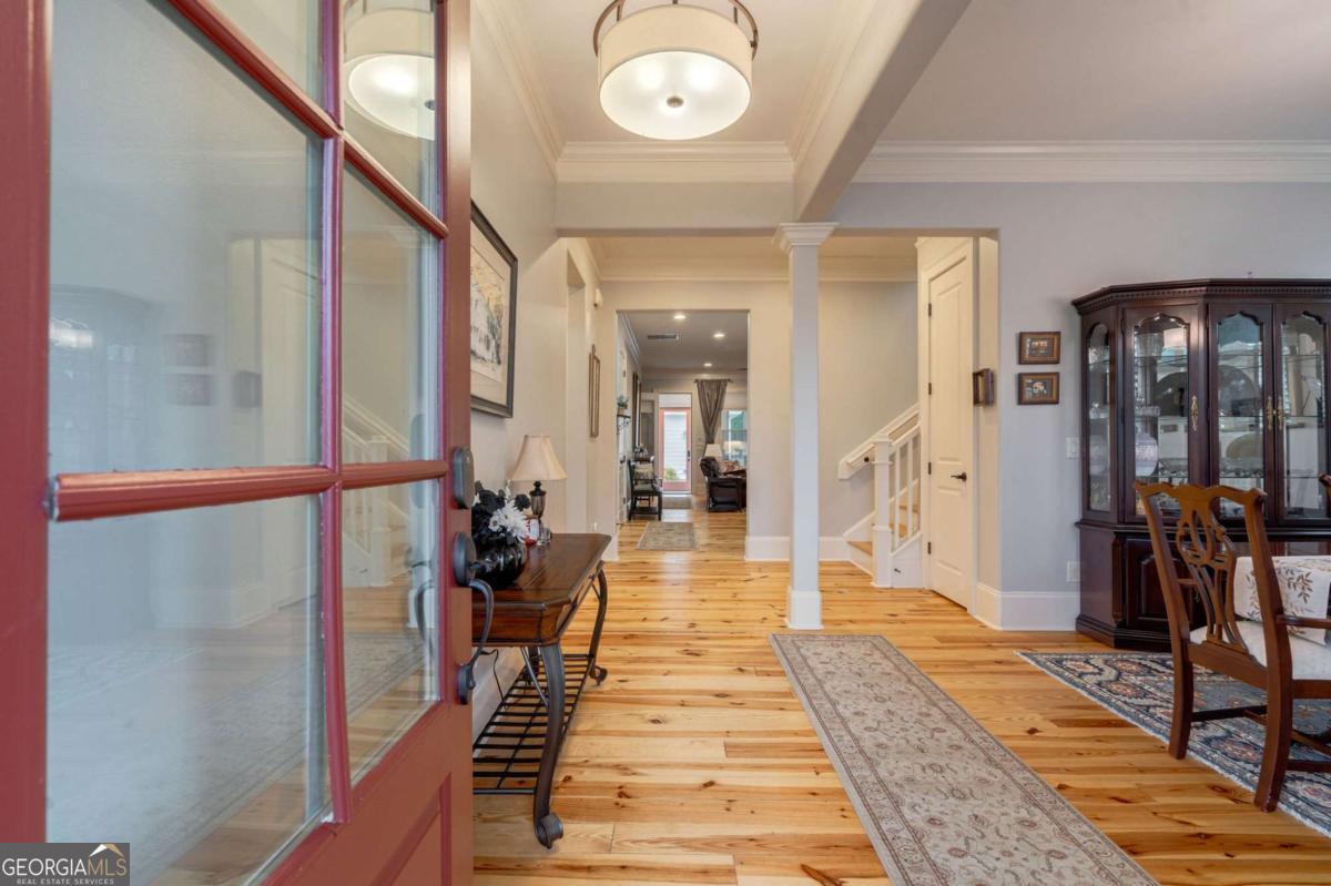 Park-front Charleston Park living at its best! Ideally located across from the main Charleston Park green space and firepit, this beautifully maintained 3BR/3.5BA home offers classic Southern charm and everyday comfort. Built in 2013, the home features hardwood floors throughout, including recently added hardwoods in the upstairs loft and bedrooms. A welcoming foyer and formal dining room lead to a gourmet kitchen with updated quartz countertops, large center island, and double pantry, open to a cozy living room with gas fireplace. A heated and cooled all-season Florida room provides flexible living or office space. The main-level primary suite includes an ensuite bath, spacious walk-in closet, and direct access to the laundry room. Upstairs offers two additional bedrooms, two full baths, and a versatile loft. Enjoy a fenced backyard with patio, plus a 2.5-car garage. A rare opportunity to enjoy park-front living in The Georgia Club's beloved Charleston Park.
