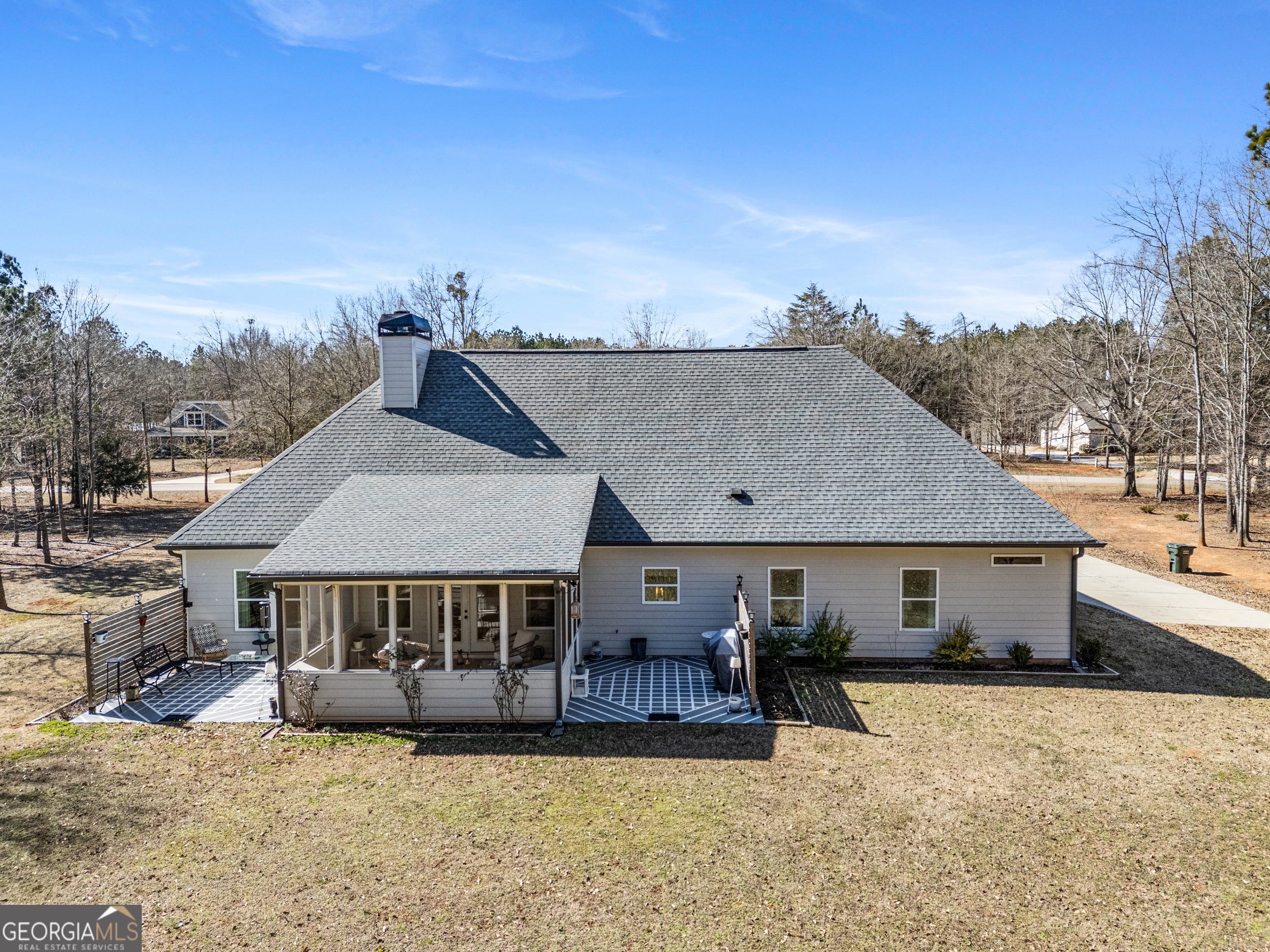 Welcome to your dream retreat in serene Good Hope, GA - a beautifully maintained, nearly new home (built just 3.5 years ago) nestled on a peaceful 3 acre property with all one level living and thoughtful design throughout. This home offers the perfect balance of comfortable everyday living and relaxed entertaining, with a bright open concept floor plan and soaring vaulted ceilings that welcome you in. As you step into the living room, you'll be greeted by a warm brick fireplace with gas logs flanked by custom built in bookshelves - a cozy focal point for gatherings or quiet evenings at home. The heart of the home is the kitchen with stainless steel appliances, a gas range, farmhouse sink, and a stunning detailed backsplash that blends style with function. A large laundry room with a utility sink and additional cabinetry adds everyday convenience. The split floor plan provides privacy and ease. The spacious primary suite features elegant trey ceilings, a generous ensuite with double sinks, a makeup vanity, a walk in shower, and a huge walk in closet. Down the hall, two additional bedrooms share a well appointed full bathroom. Step outside to your screened in patio making it the perfect place for morning coffee or year round relaxation. Practical extras include an oversized garage, a shed and chicken coop that stay with the property, and plenty of room to roam in your expansive yard. Minutes away from Oconee County and just a short drive to Monroe where there is shopping and dining galore! Come see all the great things this home has to offer!