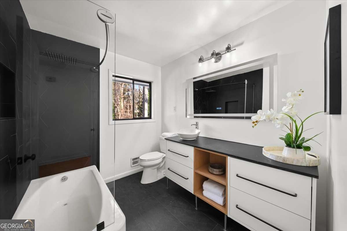 You will love the charm of Shenendoah Hills! And this newly renovated mid-century modern ranch, set in a quiet cul-de-sac, strikes the perfect balance between classic character and thoughtfully modern. Step inside and be impressed by it's detail and meticulousness; an easy, open flow, oversized sun-filled windows, and stylish details that make the space feel warm, yet cool! The main level features freshly refinished hardwoods, a seamless living and den area, generous dining space, and a chef's kitchen featuring brand-new cabinets, quartz countertops, stainless steel appliances, recessed lighting, new fixtures, and a stylish breakfast bar. The generous dining space/great room is great for entertaining and everyday living. Both baths have been fully renovated top to bottom and the main level laundry room with storage makes for true one-level living! Downstairs, the fully finished walk-out basement expands your options to create anything you'd like including a fourth bedroom and flex space perfect for a media room, home office, gym, or man cave. While outside, you'll discover a serene wooded retreat complete with a large deck. Convenient to I-85 and I-285, Emory, the CDC, Mary Scott Nature Park, Children's Healthcare of Atlanta, shopping and dining. Stylish, comfortable, and ideally located!