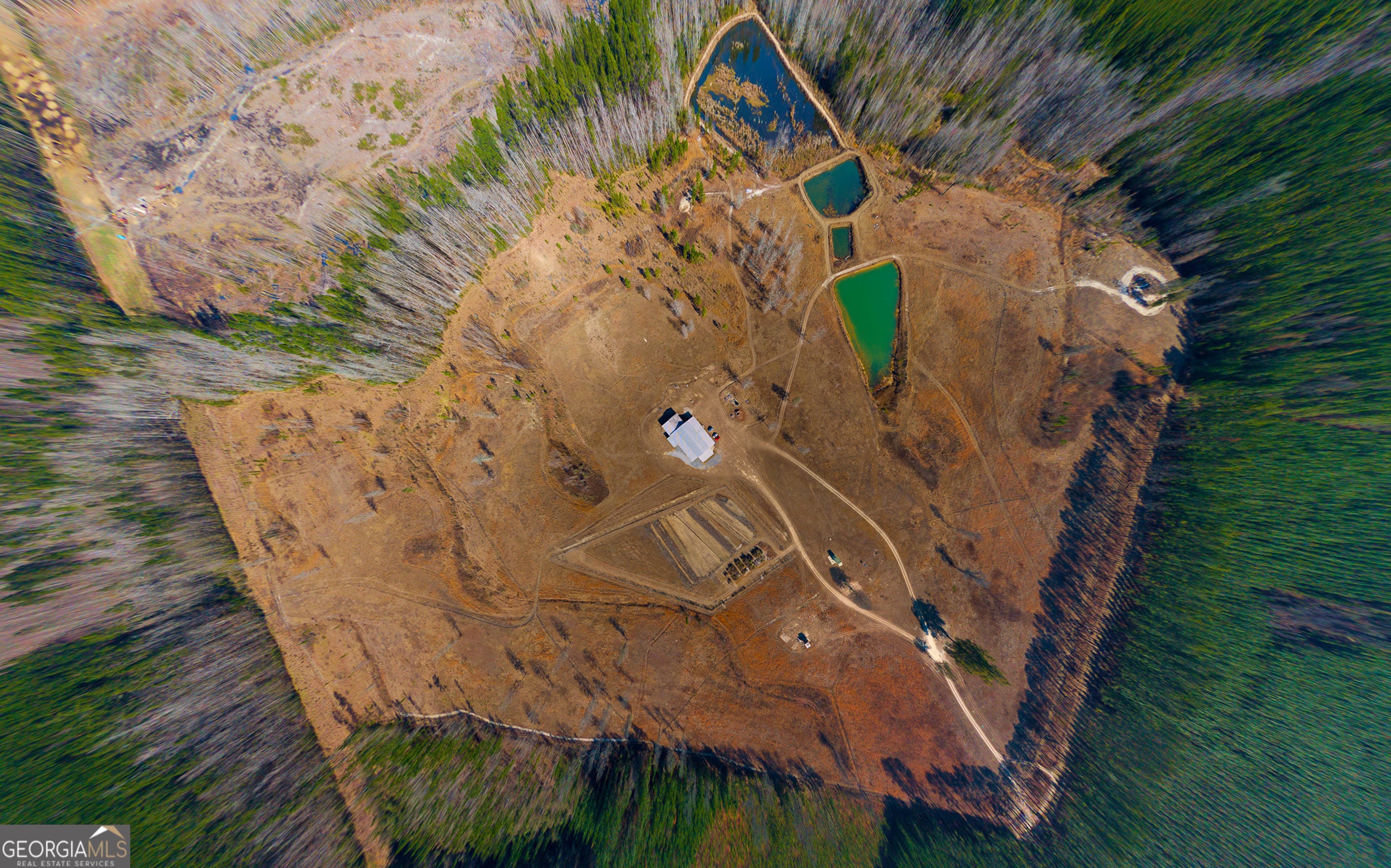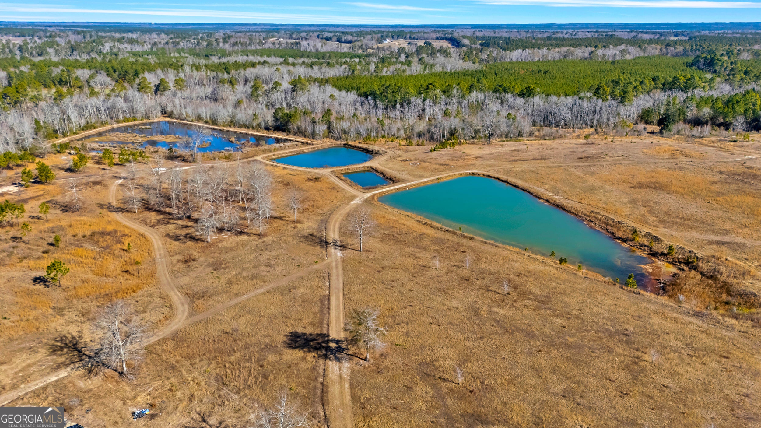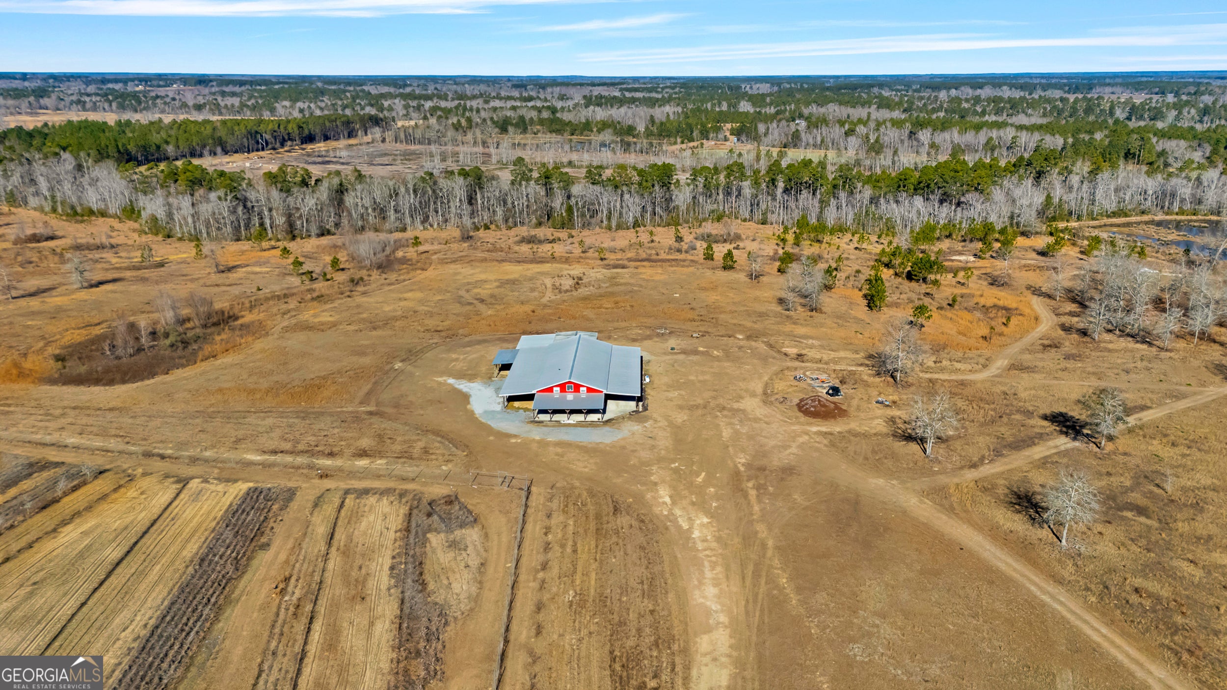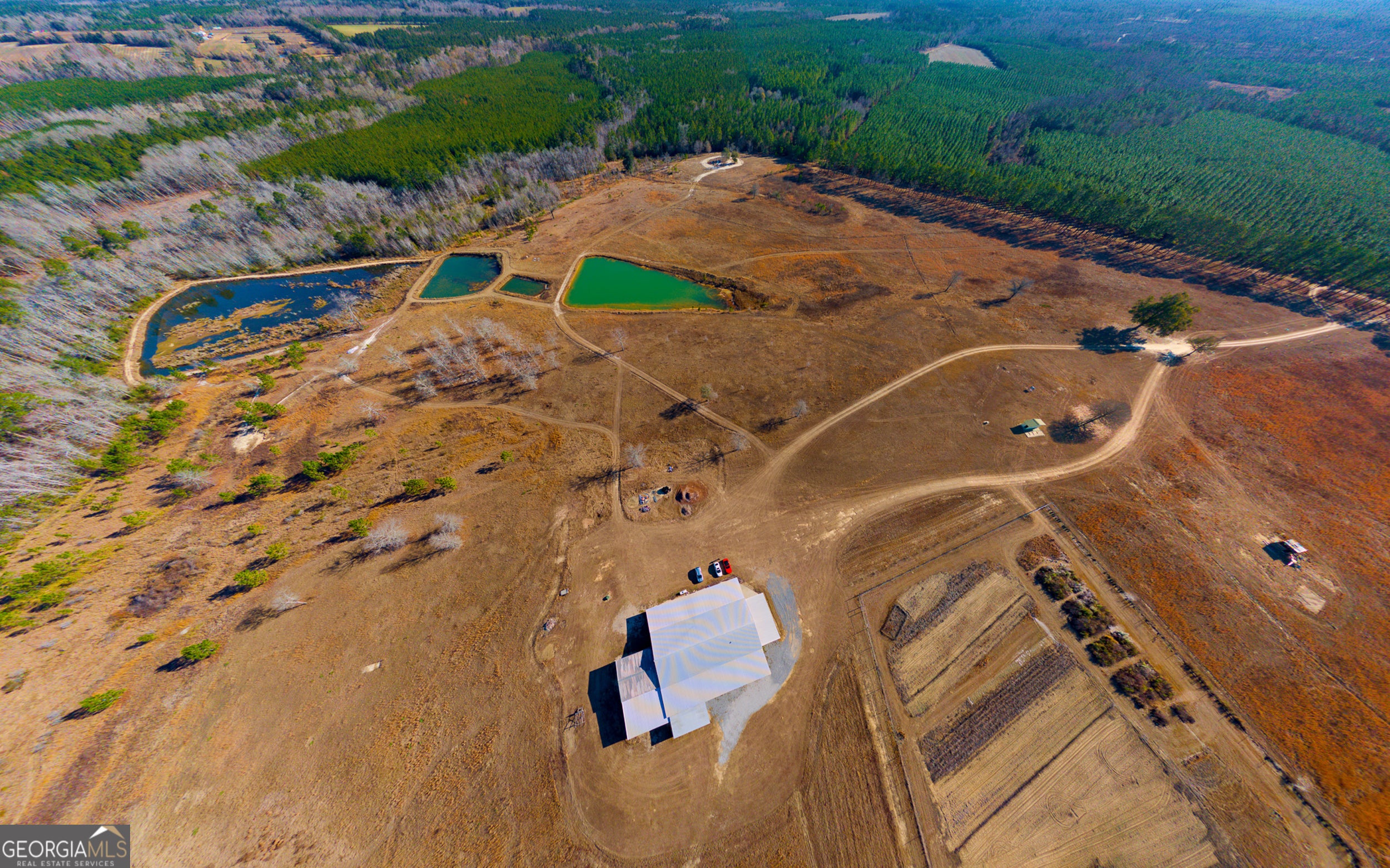 This beautiful oasis is located on 124 private acres. Take in the beautiful meadows as you drive down the long country driveway. Home has covered porches to take in the views and wildlife. There are four chains of ponds stocked with fish. This property is surrounded by planted pines and wooded wetlands. It has multiple usable wells and septic tanks on property. There is 3,840 heated square feet along with 2 workshops. There is sufficient covered storage area for RVs, boats, or equipment. One shop has 3 bay doors and an unfinished loft - electrical is prewired; the other shop has 2 bay doors. In the back of the structure, you will find a "man-cave" that is perfect for entertaining! Upstairs, in the main living area, are 2 bedrooms, laundry room, and a full bathroom. Downstairs is the master bed and bath, kitchen and family room that leads into the first shop.