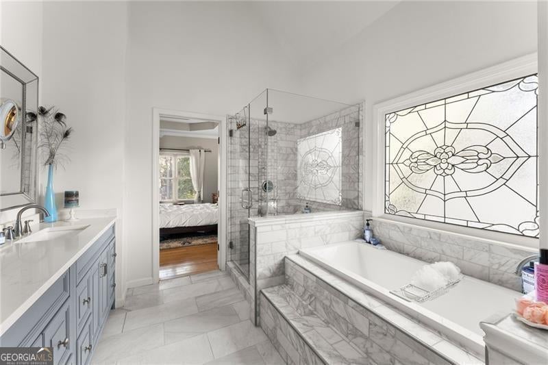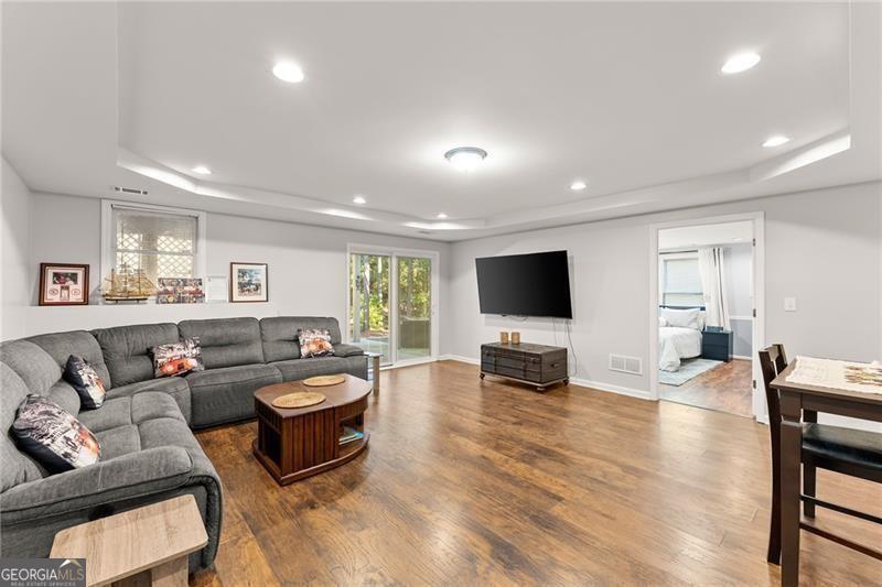 Welcome to this beautifully renovated 6-bedroom, 3.5-bath home, situated in the highly desirable Bentwater golf community in Acworth. This residence boasts a spacious master bedroom on the main level with a fully renovated bathroom and an impressive addition, a fully enclosed back porch equipped with A/C, ideal for savoring morning coffee or enjoying relaxing evenings. Significant recent upgrades provide both luxury and peace of mind. All bathrooms, the patio flooring, furnace, and air conditioning system are under 18 months old. The carpets on the stairs and in the sunroom have also been recently replaced. Throughout the home, you'll find premium Acacia hardwood flooring, a high-end selection known for its durability and rich, elegant finish. Upstairs, you'll find three generously sized bedrooms and a well-appointed bath, providing plenty of space for family and guests. The beautifully finished basement serves as a perfect in-law suite, featuring a newly renovated modern seated shower that is ideal for seniors or accessibility needs. A separate private entrance makes it equally suited as a comfortable guest space or an income-producing rental. Situated on one of the best lots in the community, this home features a large backyard perfect for children and pets to play. Enjoy the fantastic amenities Bentwater has to offer, including multiple pools, tennis courts, parks, playgrounds, and scenic trails, creating endless opportunities for recreation and relaxation. Don't miss out on this incredible opportunity to make this home your own!