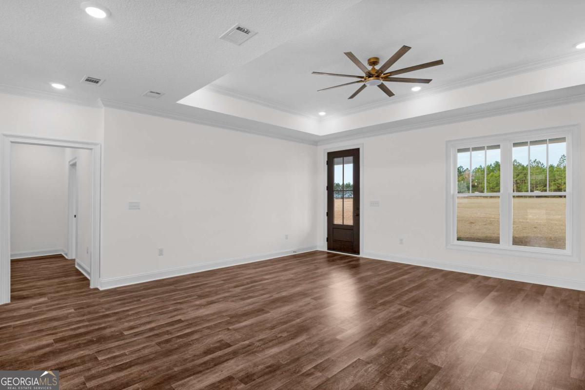 Beautiful, move in ready new construction on 7.6 acres of unrestricted land featuring 5 bedrooms and 2.5 bathrooms with high-quality finishes throughout. The home offers an open concept layout, split bedrooms, custom cabinetry, quartz countertops, luxury vinyl plank, beautiful checkered tile flooring, and an upgraded trim package with gold lighting and plumbing fixtures. The primary suite includes a freestanding soaking tub, walk-in shower, and a large custom closet that connects directly to a spacious laundry room. Upstairs, the fifth bedroom/bonus room features a customized walk-in closet and overlooks the expansive backyard. Conveniently located just 4 miles from Pierce County High School and zoned for Patterson Elementary School. No HOA or restrictions. Builder offering $10k towards closing costs! Builder offers a one year builder warranty plus a 10 year structural warranty through America's Preferred Structural Warranty Program.