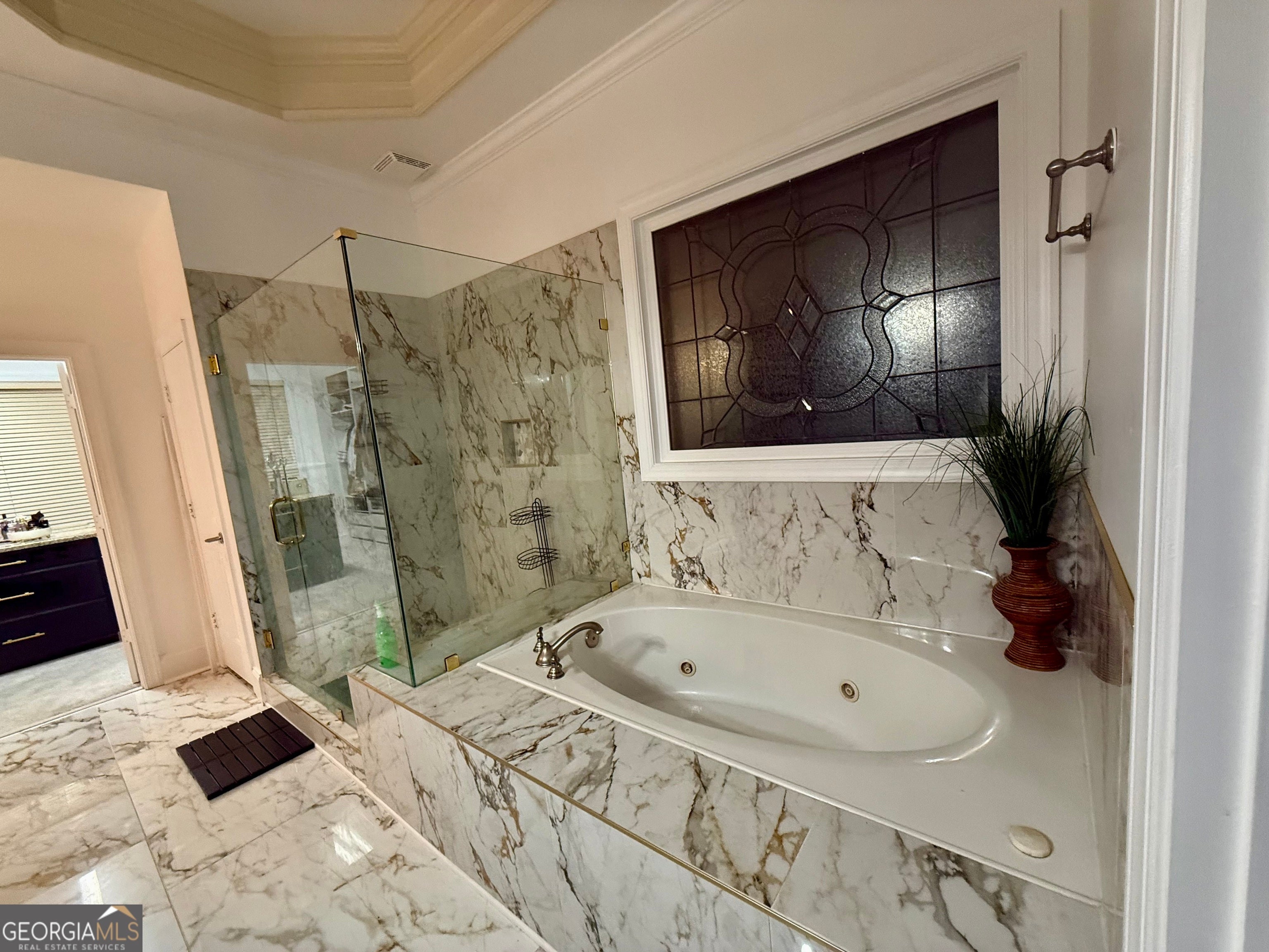 - Interior FeaturesBookcases, Double Vanity, High Ceilings, Master On Main Level, Pulldown Attic Stairs, Separate Shower, Soaking Tub, Split Foyer, Tile Bath, Tray Ceiling(s), Two Story Foyer, Walk-In Closet(s), Whirlpool Bath