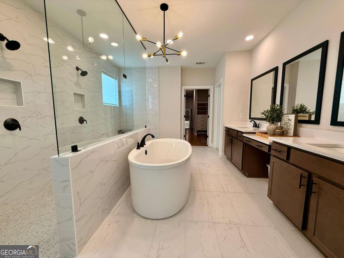 Nearly NEW LUXURY, CUSTOM-BUILT Toll Brothers home in pristine, model-like condition in THE Lassiter School District offers 5 spacious bedrooms and 4.5 bathrooms with DESIGNER UPGRADES throughout. Welcome to your dream home in one of East Cobb's most sought-after school districts. # High-end finishes meet refined elegance, and the character of this home sets it apart from others in the neighborhood. The HOME is situated in a scenic community nestled in the mountains and ideally located near everyday conveniences. It is set on a beautifully landscaped lot with THREE SIDES OF BRICK for timeless curb appeal. Relax on your rocking chair front porch and soak in the serene surroundings of this upscale community. # As you enter the house, be prepared to be amazed by an impressive TWO-STORY foyer leading to light-filled interiors. The TWO-STORY family room dazzles with large DRAMATIC LINEAR windows that fill the home with natural light and frame tranquil wooded views. Walls of glass bring the outdoors in, creating a bright, retreat-like atmosphere throughout the main living spaces. Wide-plank wood floors throughout the entire home enhance the cohesive, high-end feel and open flow. # At the heart of the home, the TRUE CHEF'S kitchen is outfitted with premium Jenn AIR appliances and is beautifully appointed with QUARTZ countertops, a striking WATERFALL ISLAND, and floor-to-ceiling CABINETRY with GLASS DISPLAY cabinets above. An ALL-GLASS BUTLER'S pantry blends luxury with everyday functionality. The kitchen opens to a bright breakfast area, which seamlessly flows to the indoor-outdoor living area through multi stacking glass sliding door, creating an elegant setting for entertaining or serene evenings at home. The private, wooded backdrop enhances the resort-style feel and offers a tranquil extension of the living space. The main level features a private GUEST suite complete with an oversized bath and walk-in closet. # Upstairs, the expansive primary suite offers a private sitting area, and the EXPANSIVE primary bathroom boasts SPA-LIKE accommodations, including a massive shower with dual shower heads and frameless glass with double-sided walk-in access, a spa-inspired luxury bath featuring a freestanding soaking TUB, and an oversized CUSTOM walk-in closet that is fully built out with elegant finishes and provides a high-end boutique feel. Additional bedrooms and baths are generously sized and thoughtfully designed. The laundry room is conveniently located on the second floor. # This elegant residence features a 3-car side-entry garage with an EV charger installed, combining convenience with forward-thinking design. Move-in ready and maintained in model-like condition, this home offers a rare opportunity! Minutes from shopping, dining, and major commuter routes, this home offers a rare combination of scenic surroundings, modern luxury, and prime location. Experience THE Luxury, location, and Lifestyle - all in one spectacular home. A rare opportunity to own a model-like home in a limited-inventory area.