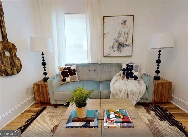 Charming Charleston-style two story historic duplex in Cabbagetown with off-street parking! Each unit is 2 bedrooms/1.5 bathrooms. This fee simple home has no rent restrictions and no HOA and is set on a quiet street right in the heart of historic Cabbagetown. The home blends original early 19th century character with thoughtful updates throughout. The main level features an open kitchen that flows easily into the dining and living areas. Hardwood floors and tall ceilings make the space feel bright and welcoming. Double porches at the front bring in natural light, while a spacious shady back deck creates the perfect spot for relaxing or entertaining. Inside, you'll find generous storage throughout, a renovated half bathroom on the main level, and a renovated full bathroom + two sunny bedrooms upstairs - including one bedroom with its own walk-out balcony with city views. A side yard adds even more possibilities for gardening or pets. Amazing price for this location where you're an easy stroll to shops and restaurants on Carroll Street, the Beltline, Grant Park, and Krog Street Market. Perfect for an owner occupant or, for someone looking to invest, short term rentals consistently bring in $3,000-$4,000 per month per side. Home can be sold furnished.