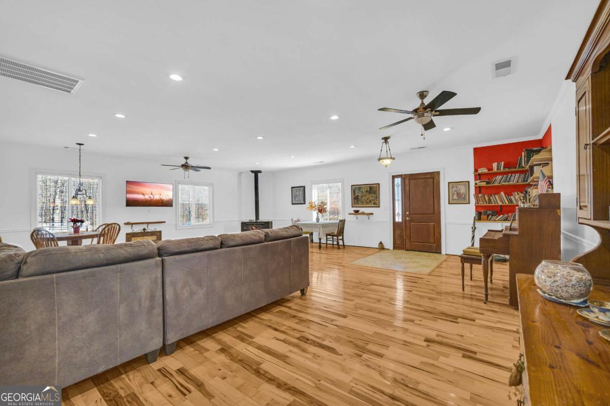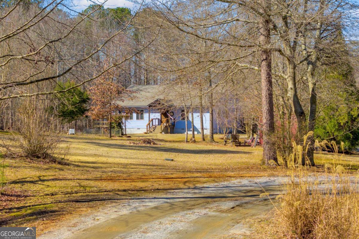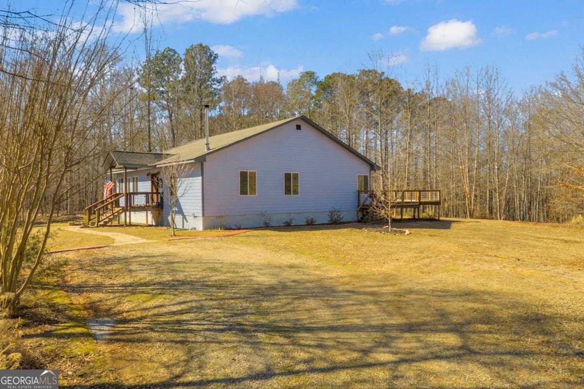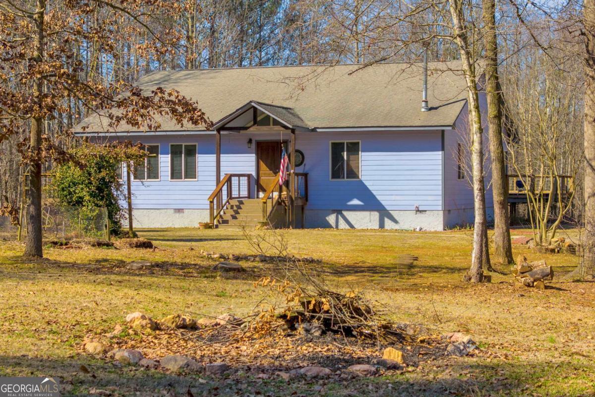 Peaceful and serene living on 3.92 acres in Franklin County, just minutes from I85 yet a world away from the noise. This inviting 3 bedroom, 2.5 bath ranch offers 2,112 square feet of living space with a layout that feels comfortable and easy to live in. A long driveway leads up to the house and tucks it back from the road, providing privacy from neighbors and enhancing the peaceful country feel. Welcoming steps lead up to the front door and into a large great room, where a woodburning stove creates a cozy focal point for everyday living and gathering. The kitchen and dining area connect easily to the main living space, and a dedicated laundry room adds practical convenience on the main level. The primary bedroom features its own private deck for enjoying quiet mornings or unwinding in the evening, and a second deck offers additional outdoor space to relax or entertain. Outside, there is a storage building and a garden area that blooms beautifully during the growing season, set against a backdrop of trees and open land. Not only has the home been lovingly cared for by just one owner, but the property also feels secluded, while still being close to the highway and just a short drive to the Tanger Outlets and area amenities.