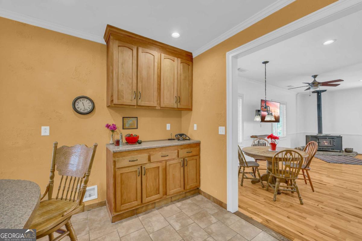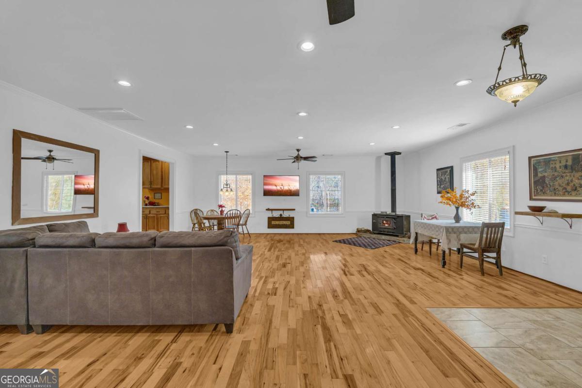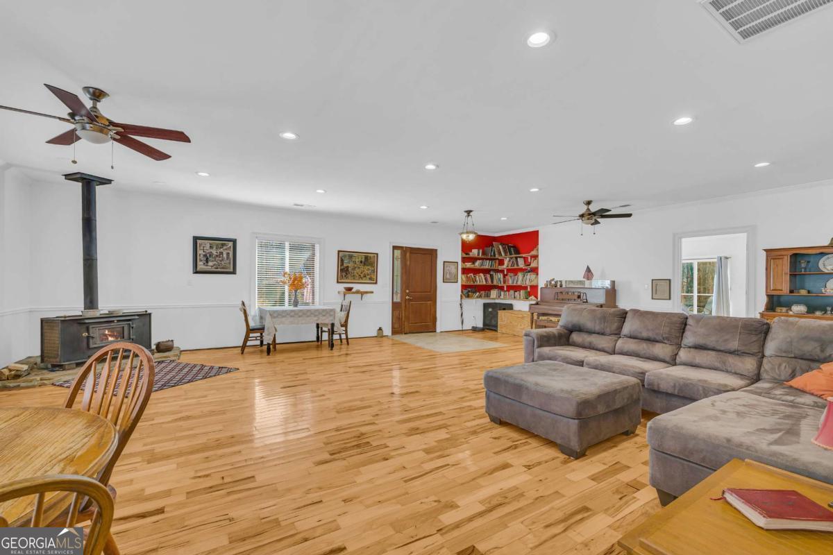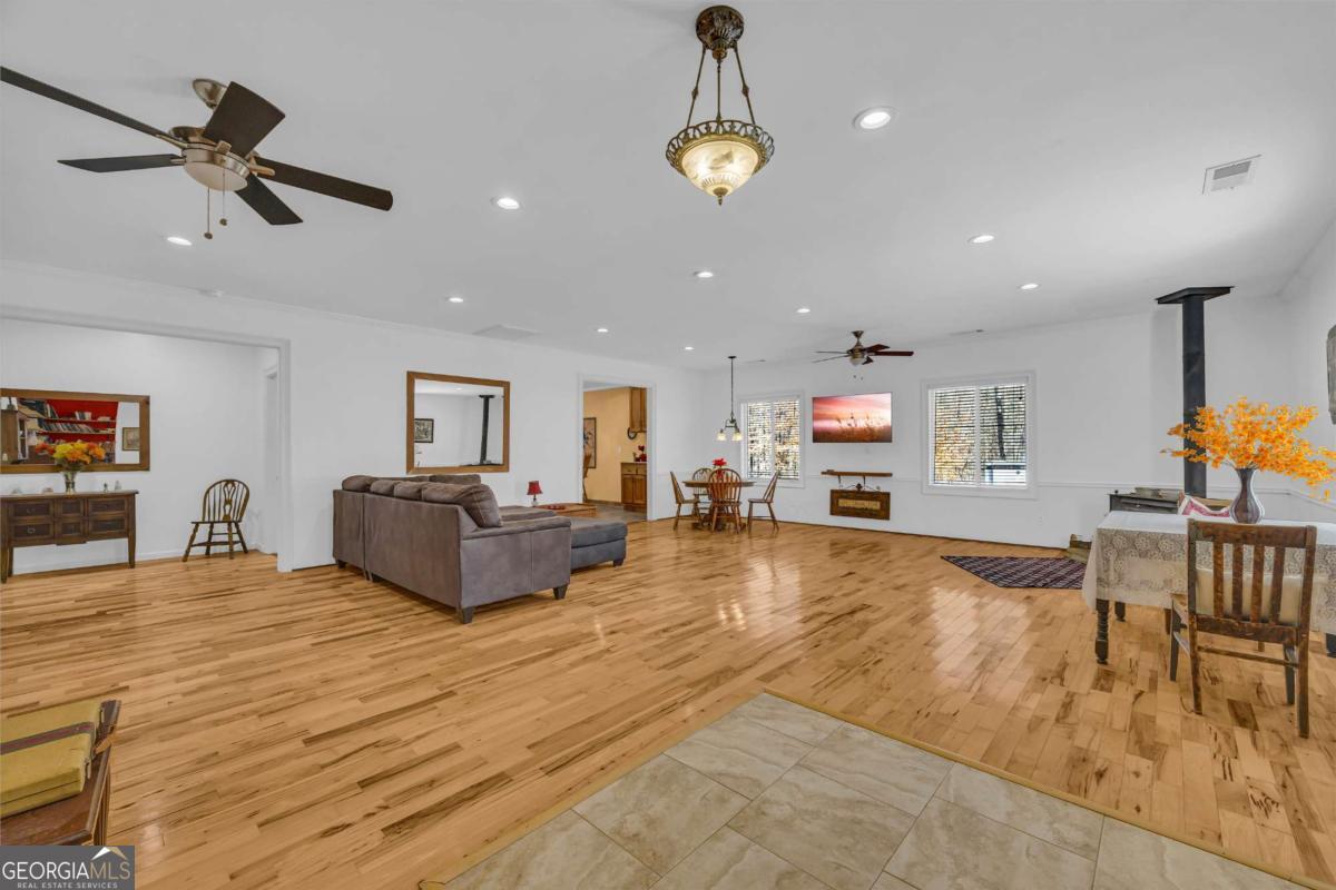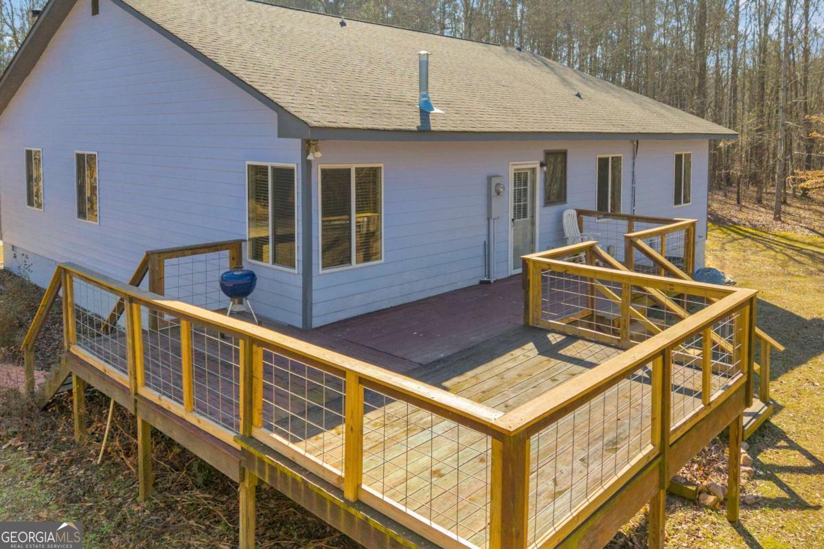 Peaceful and serene living on 3.92 acres in Franklin County, just minutes from I85 yet a world away from the noise. This inviting 3 bedroom, 2.5 bath ranch offers 2,112 square feet of living space with a layout that feels comfortable and easy to live in. A long driveway leads up to the house and tucks it back from the road, providing privacy from neighbors and enhancing the peaceful country feel. Welcoming steps lead up to the front door and into a large great room, where a woodburning stove creates a cozy focal point for everyday living and gathering. The kitchen and dining area connect easily to the main living space, and a dedicated laundry room adds practical convenience on the main level. The primary bedroom features its own private deck for enjoying quiet mornings or unwinding in the evening, and a second deck offers additional outdoor space to relax or entertain. Outside, there is a storage building and a garden area that blooms beautifully during the growing season, set against a backdrop of trees and open land. Not only has the home been lovingly cared for by just one owner, but the property also feels secluded, while still being close to the highway and just a short drive to the Tanger Outlets and area amenities.