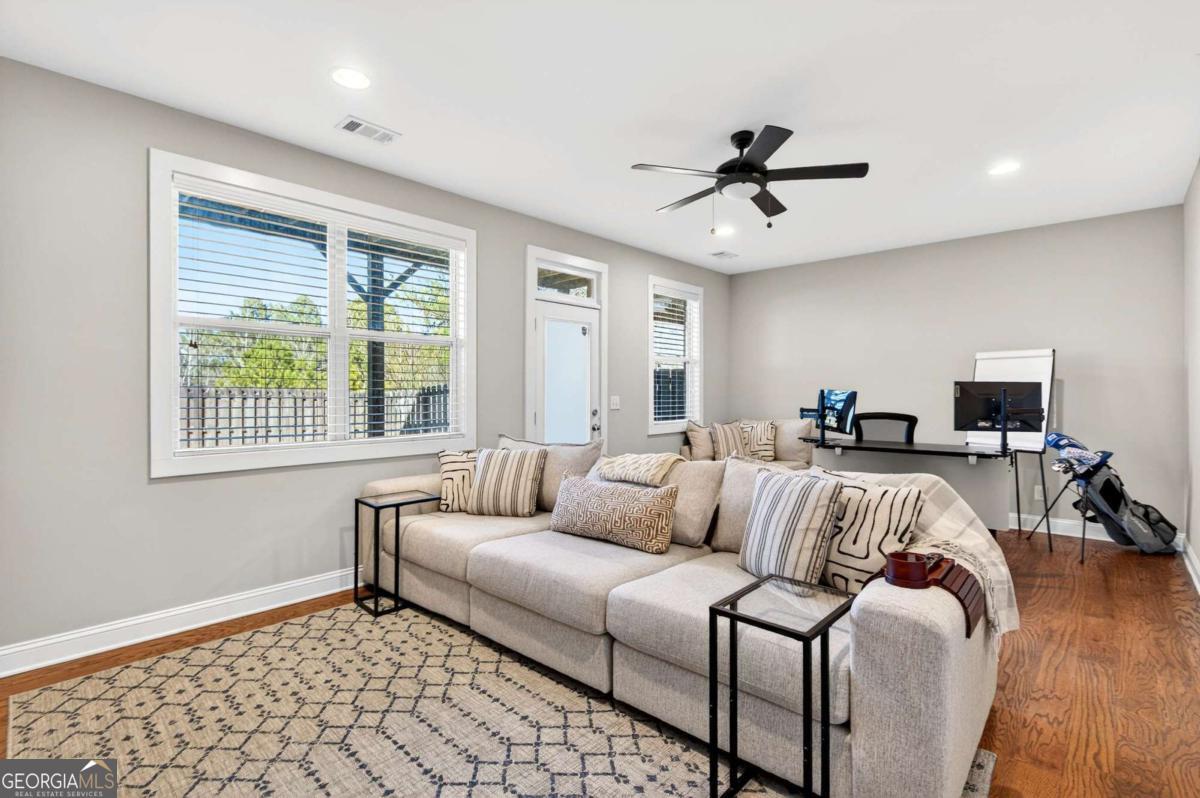 So much to love about this meticulously maintained townhome, featuring abundant natural light, a functional open layout, and elegant finishes throughout. It offers the perfect blend of style, space, storage, and outdoor living. Built in 2016 with a new roof in 2025, this home rivals new construction townhomes-and even many single-family homes. The main level showcases 10-foot ceilings, upgraded lighting, built-in cabinetry, and a thoughtfully-designed kitchen with a walk-in pantry and dedicated coffee/bar area. Enjoy a private, fully fenced backyard backing to green space-perfect for relaxing, entertaining, or pets. Upstairs includes three bedrooms, highlighted by a spacious primary suite with a large walk-in closet. The terrace-level bonus room with full bath offers flexible space for a fourth bedroom, home office, or media room. A two-car garage plus driveway parking accommodates two additional vehicles. Located in the desirable Vinings on the Chattahoochee swim/tennis community in the Upper Westside, convenient to I-285, I-75, Midtown, Downtown, Buckhead, Cobb Galleria, and Vinings, Just 25 minutes from the airport. Zoned for top-rated public schools: Bolton ES, Sutton MS, and North Atlanta HS. Exceptional space, privacy, parking, and location at a compelling price. Don't let this one get away.