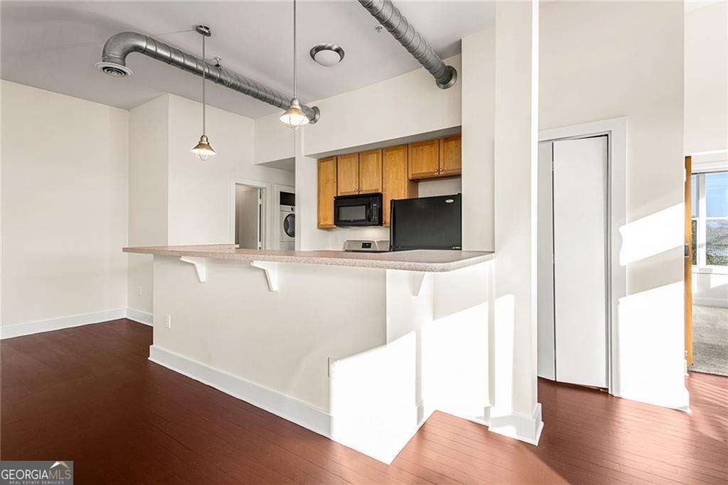 This is a great opportunity to own in the city. This 2-bedroom, 2-bath condo is located in a gated Atlanta community with easy access to major interstates and some of the city's most popular destinations. Midtown, Mercedes-Benz Stadium, Georgia State University, and a variety of shopping, dining, and entertainment options are all just minutes away. Inside, the home features hardwood floors, fresh paint, and a comfortable, functional layout. Large windows provide natural light and offer peaceful city views. A stackable washer and dryer are included for added convenience. The community offers a well-maintained courtyard and a pool, perfect for relaxing without the hassle of exterior upkeep. The pet-friendly property has also seen recent updates, including fresh exterior paint and new carpeting in the common areas. Whether you're looking for a primary residence or a low-maintenance city home close to everything Atlanta has to offer, this condo checks all the boxes.