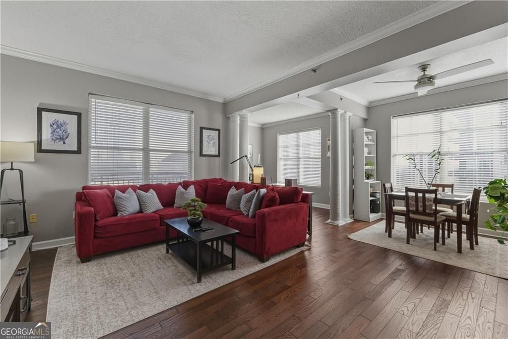 Discover stylish Midtown living in this beautifully updated 1-bedroom condo at Park Central, one of Atlanta's most sought-after full-service condominium communities. Unit 532 offers 1,105 square feet of thoughtfully designed living space, featuring a renovated kitchen and bath, hardwood floors, granite countertops, a custom vanity, a solid stone shower, a newer water heater, a new 2022 HVAC system, and all major appliances included. The oversized primary bedroom enjoys tranquil views, while a flexible den area-ideal for a home office-opens directly to a private north-facing balcony. This impeccably maintained fifth-floor residence includes an assigned parking space conveniently located on the same level as the unit, plus a deeded storage unit. Park Central residents enjoy premier amenities including indoor and outdoor pools, a state-of-the-art fitness center with sauna, an expansive 11th-floor terrace with skyline views, and full-time concierge service. Perfectly positioned near Piedmont Park, the Atlanta BeltLine, Colony Square, Whole Foods Market, dining, shopping, MARTA, Georgia Institute of Technology, the Fox Theatre, and the High Museum of Art, this FHA-approved condo delivers luxury, convenience, and an unbeatable Midtown Atlanta location-ideal for homeowners and professionals seeking a vibrant, active urban lifestyle.