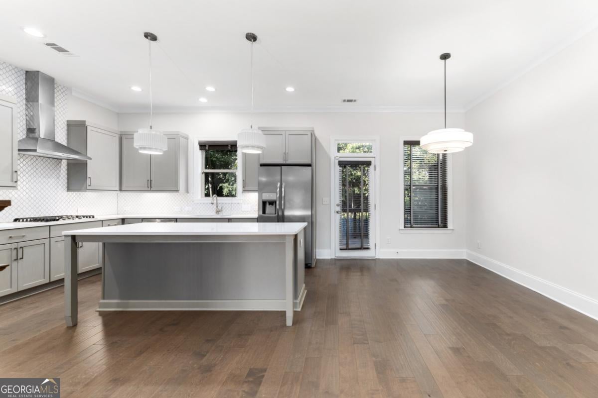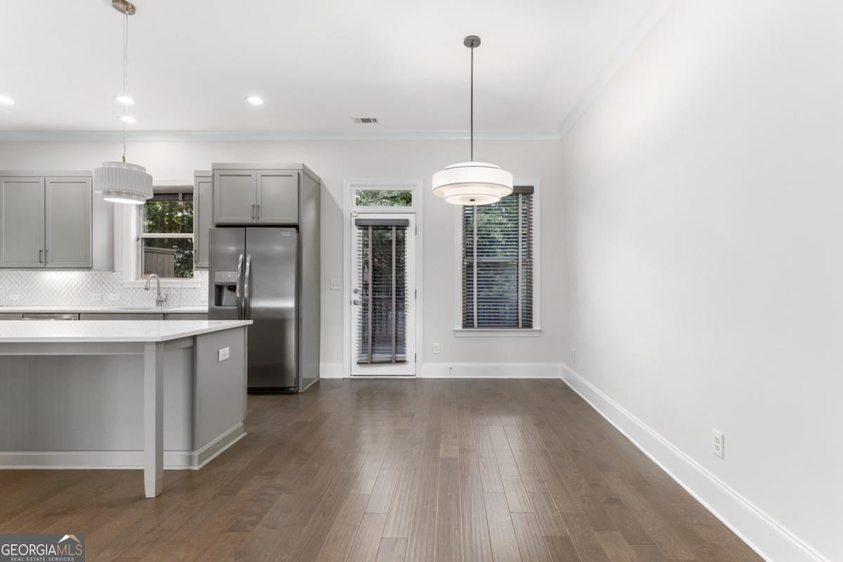 Available for move in March 1st. Welcome to 1394 Doublegate, an exceptional townhome embodying the essence of Brookhaven living. Large double-paned windows bathe this expansive home in sunlight, accentuating the gleaming hardwood floors and spacious interiors. With upscale architectural features, including 10' ceilings, an open-concept layout, designer lighting, and custom molding, this residence provides a sophisticated living space. Nestled in a gated, friendly neighborhood, this home offers a serene escape, boasting a pool, cabana, and park while conveniently located. Generously sized rooms with ample walk-in closets ensure storage needs are met, while the main level, bathed in natural light, seamlessly connects living spaces. The living room with a gas fireplace and built-ins and an adjacent dining area with elegant shaker cabinets create an ideal atmosphere for relaxation and entertainment. The gourmet kitchen, with quartz countertops, stainless steel appliances, and a large island, leads to an expansive private deck, perfect for outdoor dining and grilling. Ascending to the upper level, 9' ceilings enhance the airy ambiance. The primary bedroom, bathed in natural light, features a tray ceiling and an adjoining retreat area suitable for a home office or cozy sitting space. The en suite spa-inspired bathroom exhibits luxurious touches, including marble tile, a double shower, double sink, and spacious walk-in closets. Another bedroom with an en suite bath, a tray ceiling, and a laundry area complete this level. The terrace level offers flexible space for various needs, including a full bath, a large walk-in closet, and a private patio. An extra-large two-car garage with additional storage complements this thoughtfully designed home. Situated minutes away from Briarwood Park, Shops on Dresden, and other attractions, this centrally located home offers easy access to dining, shopping, and recreational options, along with convenient proximity to I-85 and the Marta Station for seamless commuting and exploration.