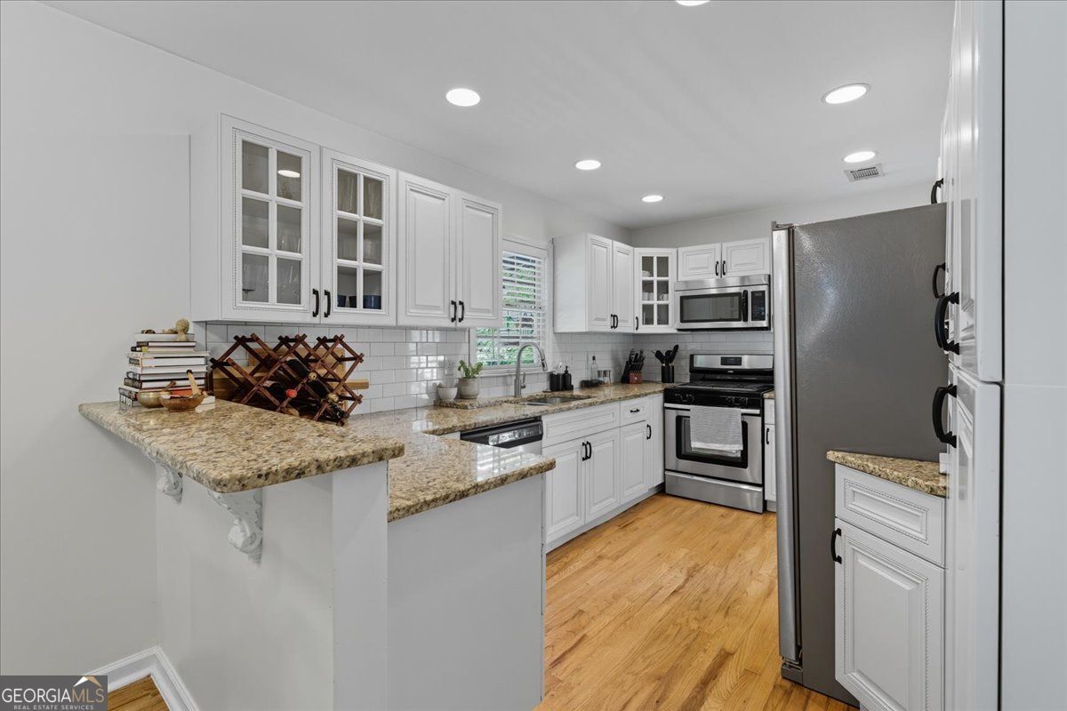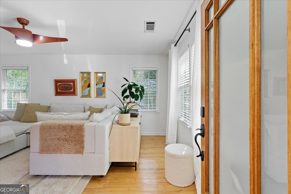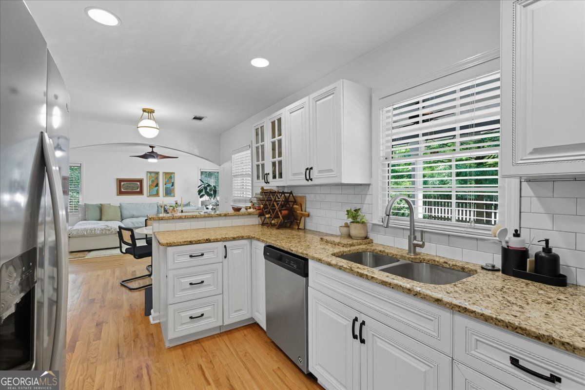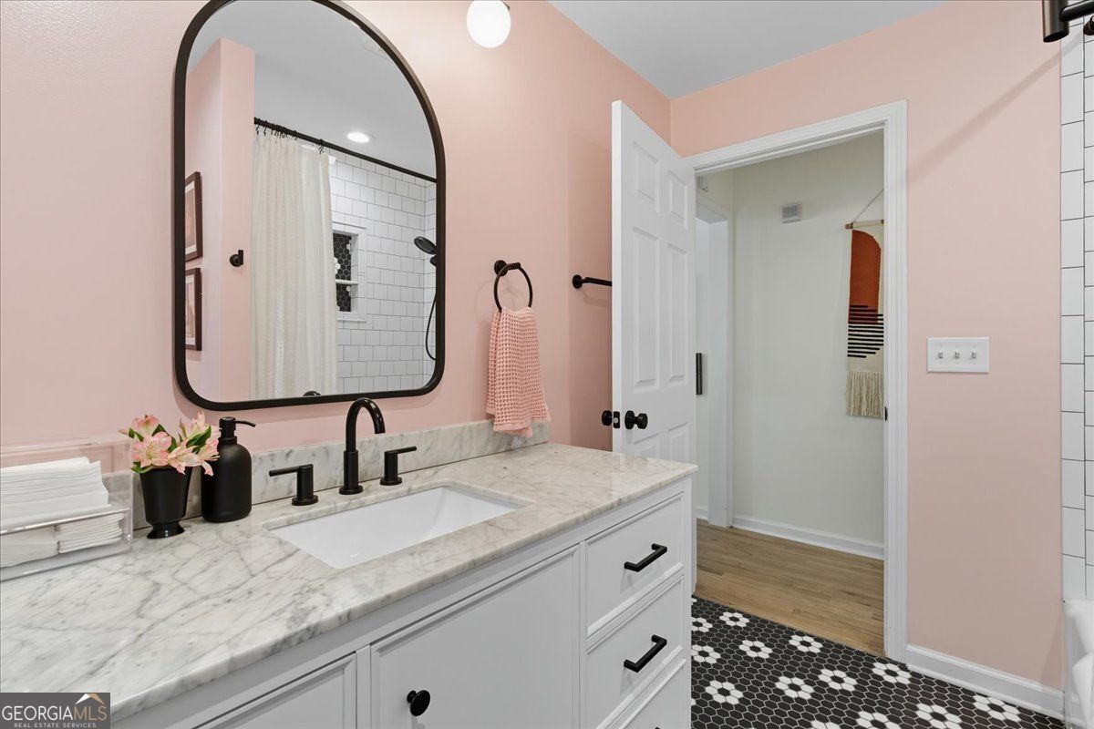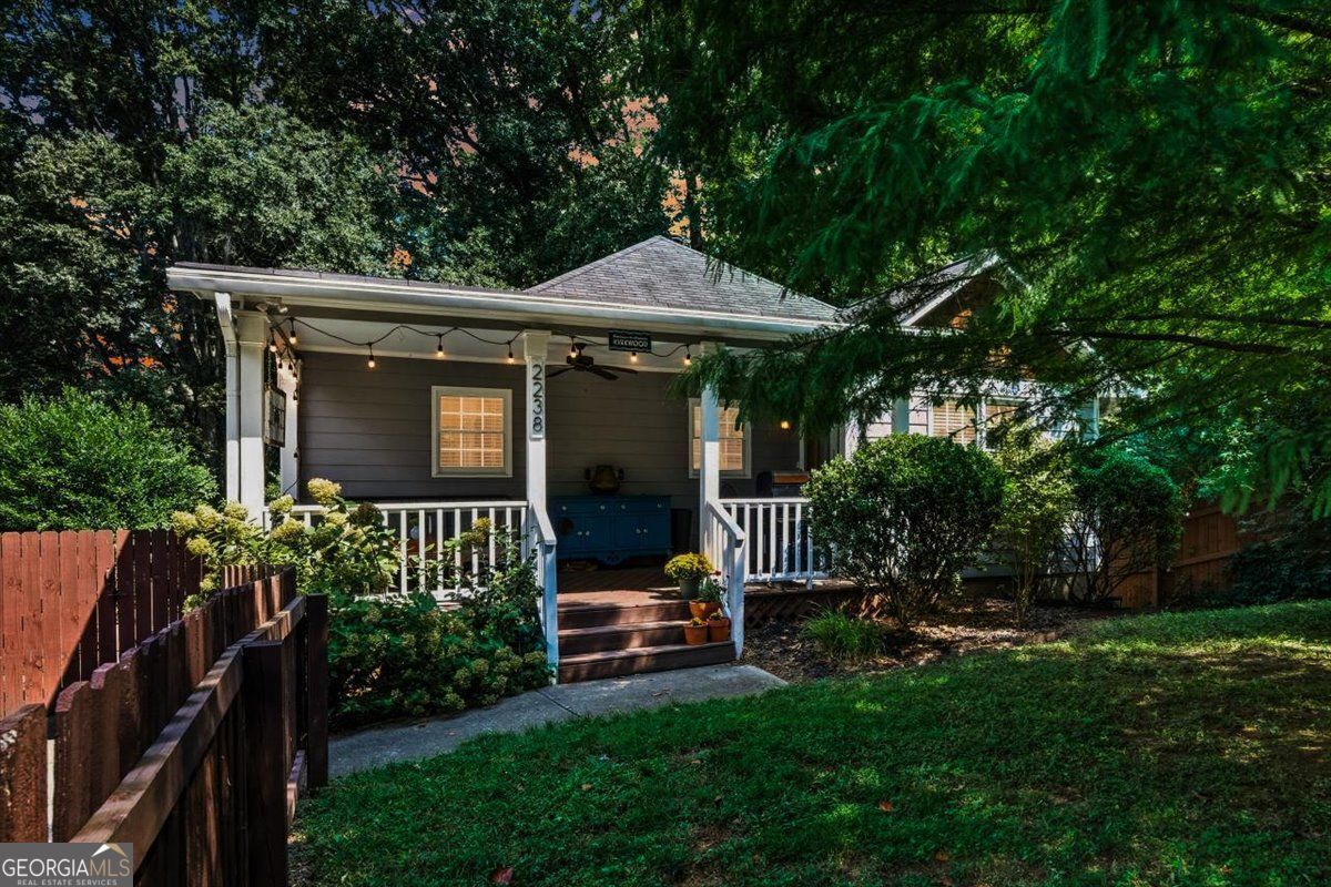 Welcome home to this feel good Kirkwood classic, where a fenced front yard and covered porch invite slow mornings, neighborly hellos, and evening wind downs. Inside, the layout feels open and effortless, with the living room flowing naturally into the dining area and updated kitchen, making everyday living and entertaining feel seamless. Hardwood floors throughout add warmth, continuity, and timeless character. The kitchen is bright and functional with granite countertops, crisp white cabinetry, and a breakfast bar that naturally draws people together for morning coffee, casual meals, or conversation. Three generously sized bedrooms offer flexibility for guests, work from home space, or a growing household, all sharing a stylishly updated bath with a modern vanity, updated fixtures, playful pink walls, and standout tile that adds personality. Out back, the fully fenced yard is thoughtfully hardscaped for easy upkeep and effortless enjoyment. A spacious patio and dedicated fire pit area create a true outdoor living zone, perfect for cozy evenings, relaxed gatherings, or unwinding at the end of the day and the unfinished crawlspace provides great added storage. Set in the heart of Kirkwood, you are just moments from local favorites like El Myriachi, Perc, and Evergreen Butcher + Baker, making it easy to step out for coffee, dinner, or a last minute treat. This home blends classic charm, thoughtful updates, and a low maintenance lifestyle designed for how you actually live.