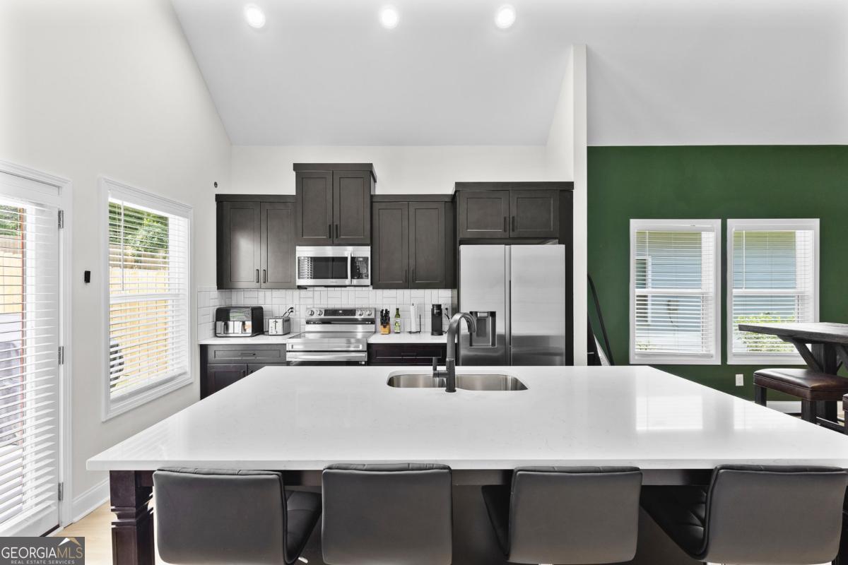 HOME IS FULLY FURNISHED. Experience the best of intown living in this beautifully furnished Atlanta home, ready for immediate move-in! Step onto the inviting covered front porch and into an open-concept layout designed for both comfort and style. The spacious living and dining areas feature recessed lighting and vaulted ceilings, creating a bright and airy atmosphere. The modern kitchen is a chef's dream with solid surface countertops, a large island with seating for four, and all appliances included. With 3 bedrooms and 2 full bathrooms, there's plenty of space for rest, work, or play. The primary suite offers a luxurious bathroom and a generous walk-in closet for all your storage needs. Unwind on the private rear patio and enjoy the peaceful backyard setting. Located just minutes from I-20 and I-285, this home offers quick access to the airport, downtown Atlanta, and the thriving Westside-Center Hill community. You'll be close to Mercedes-Benz Stadium, State Farm Arena, and an incredible selection of restaurants and entertainment options. Fully furnished, all appliances included, and available now-don't miss this opportunity for effortless city living!